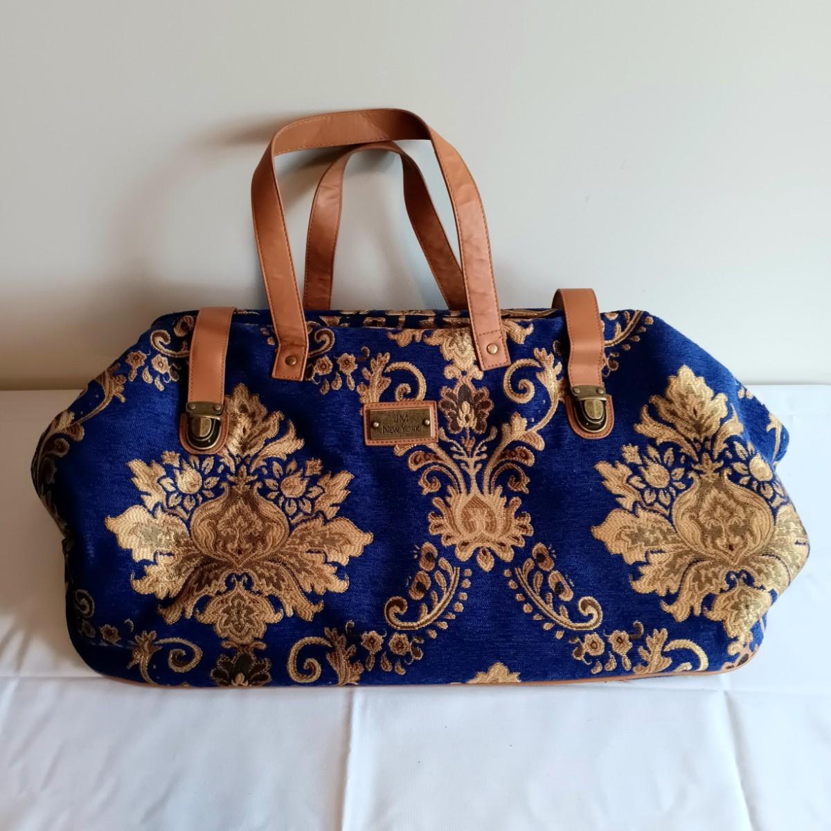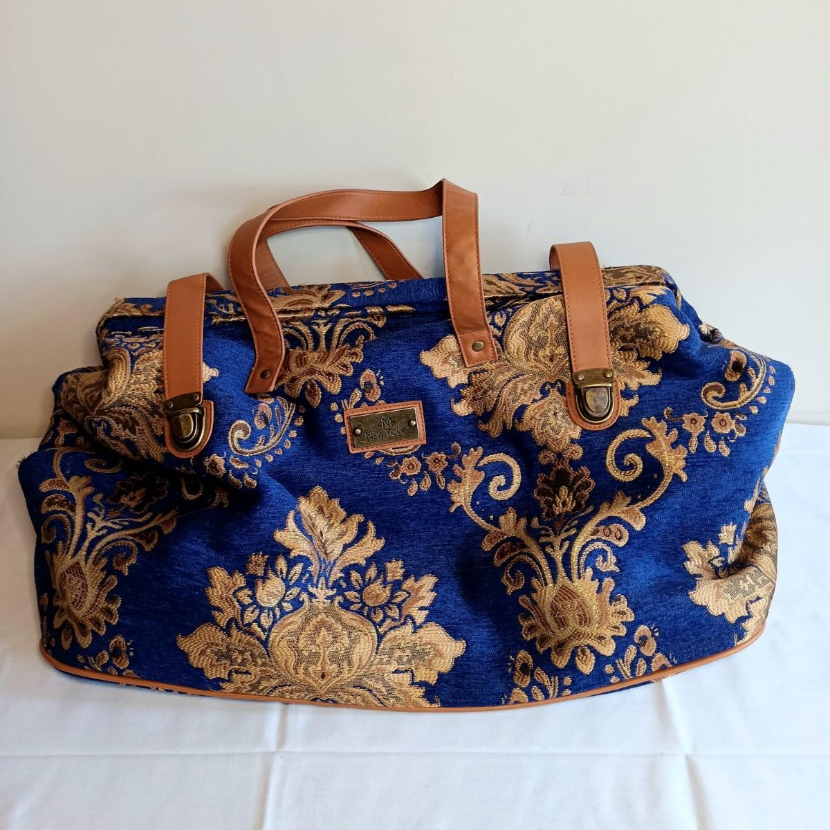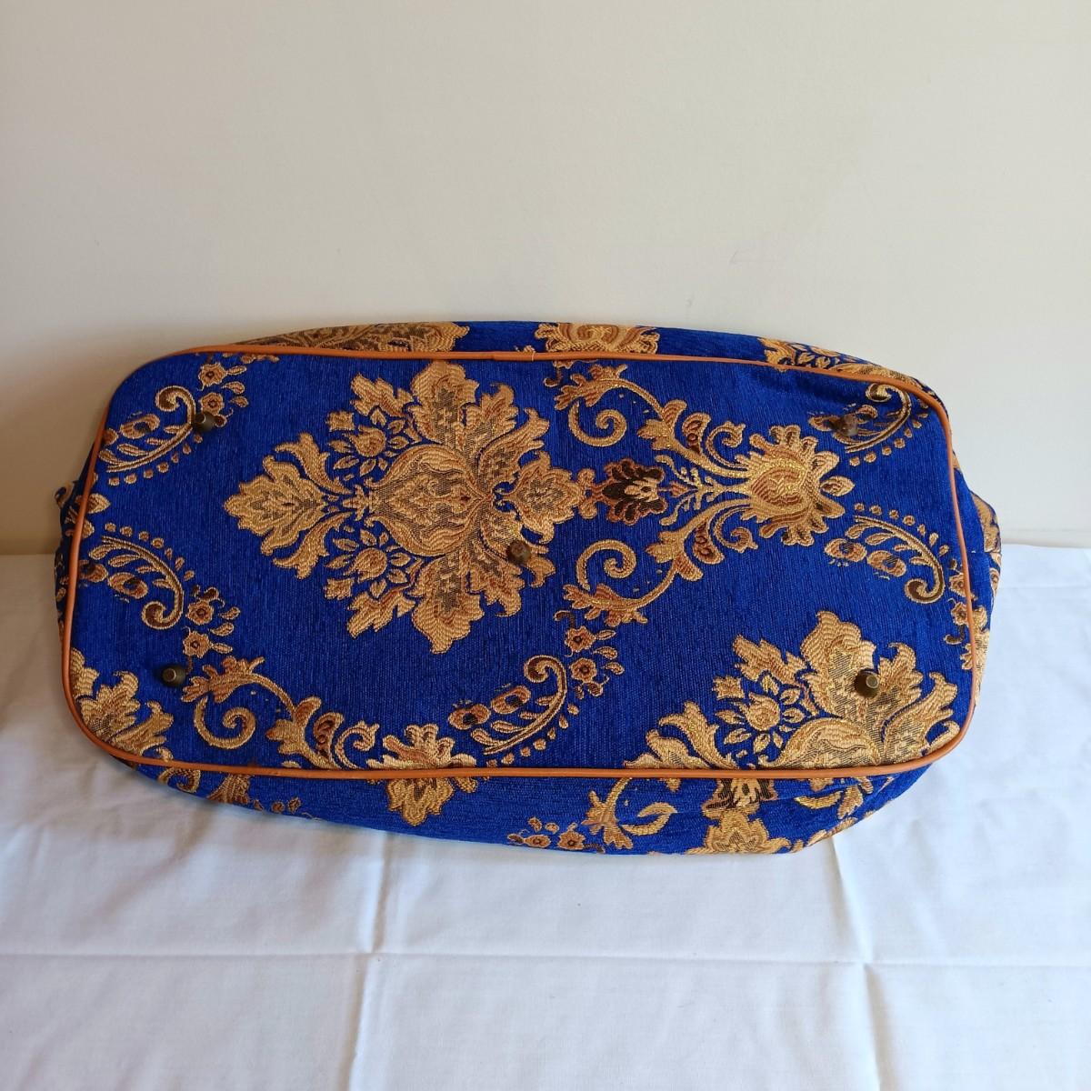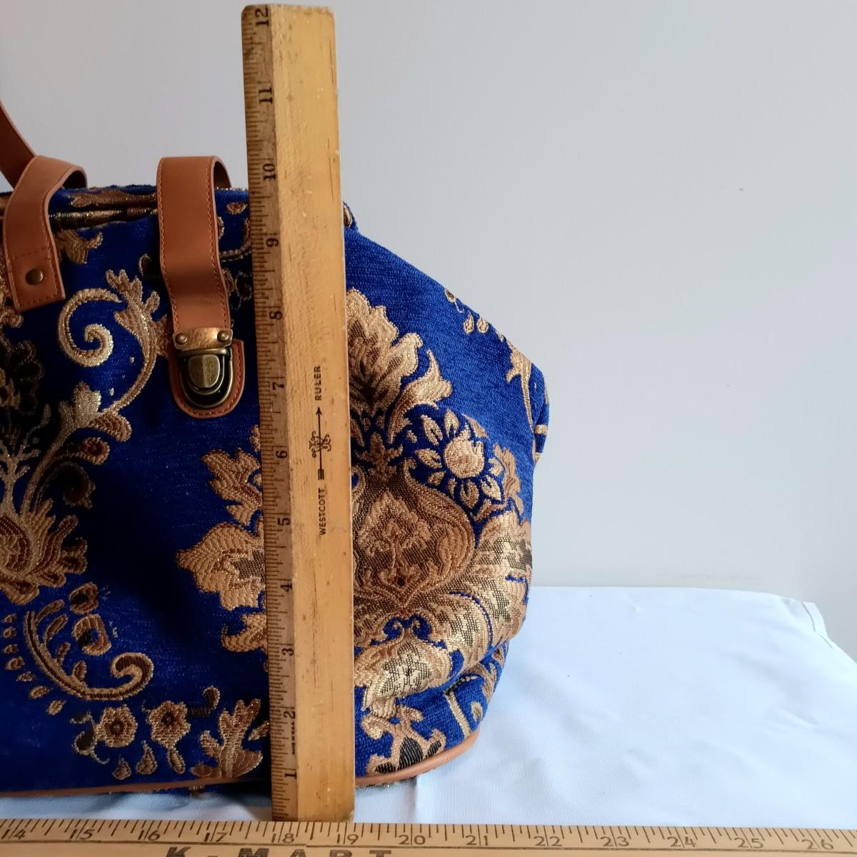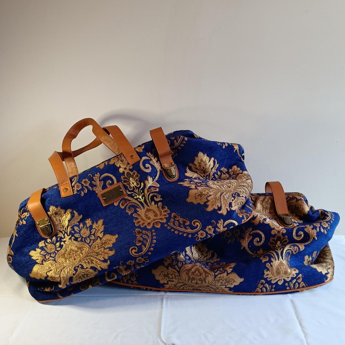 LOT 198K: Joy Mangano Set of 2 Blue & Gold Regal Carpet Bags