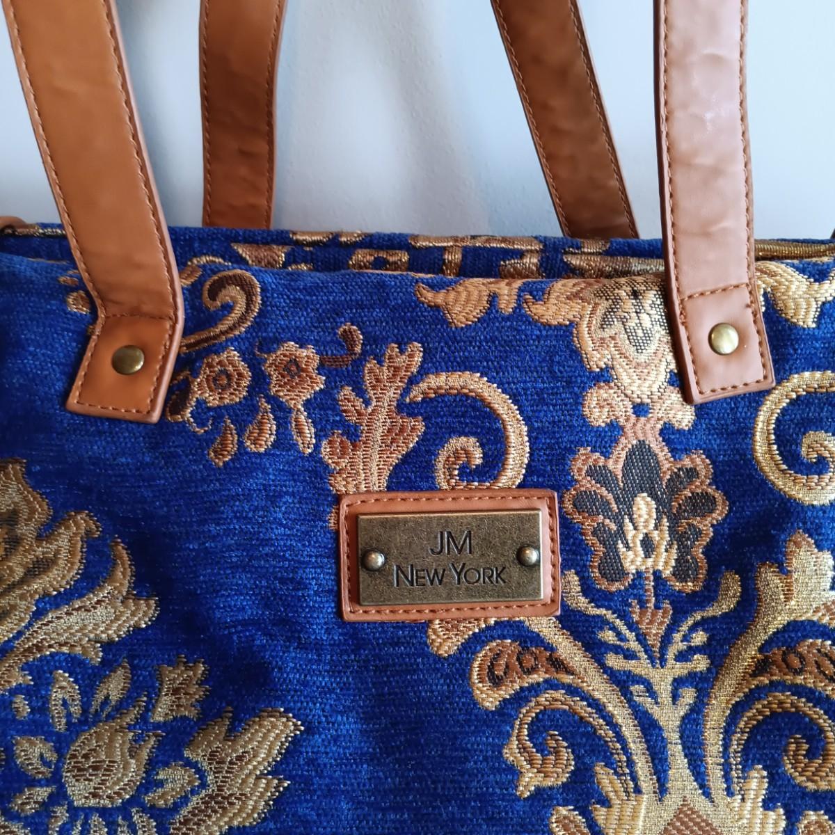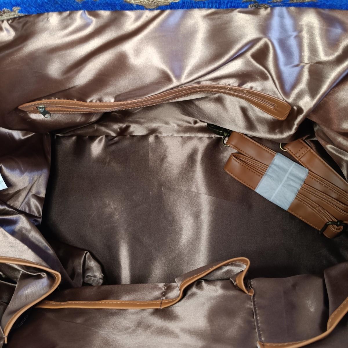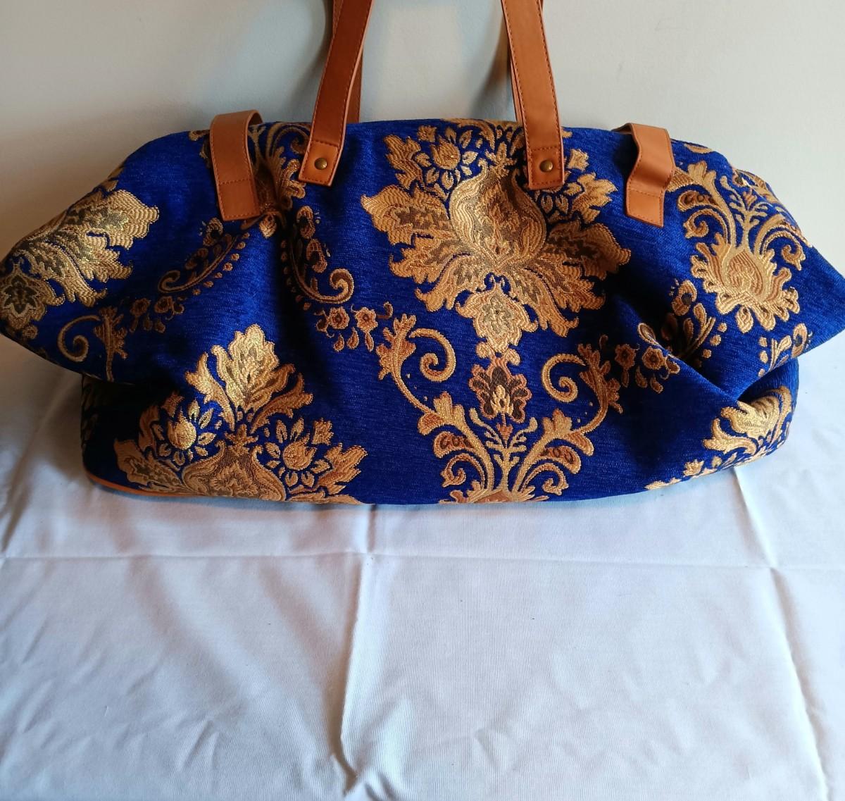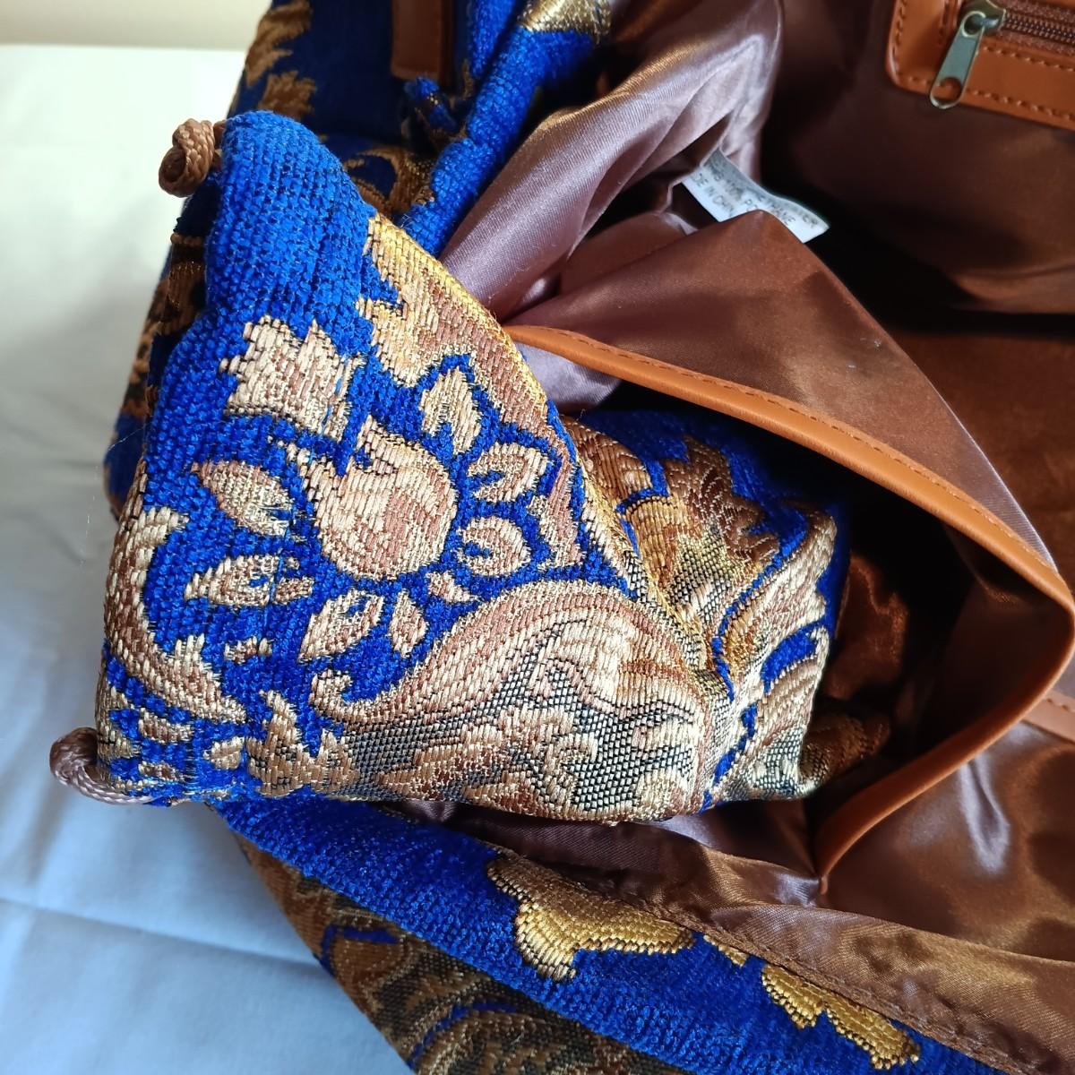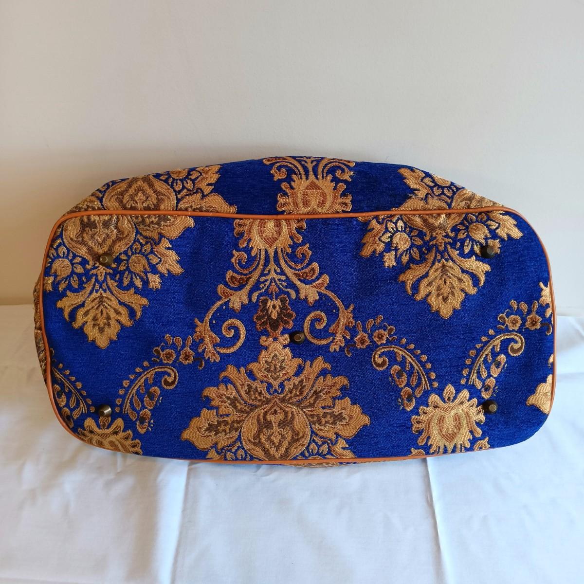 LOT 198K: Joy Mangano Set of 2 Blue & Gold Regal Carpet Bags