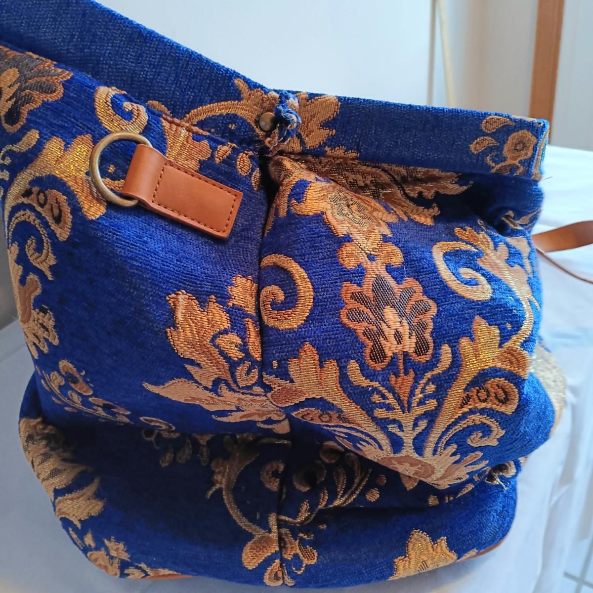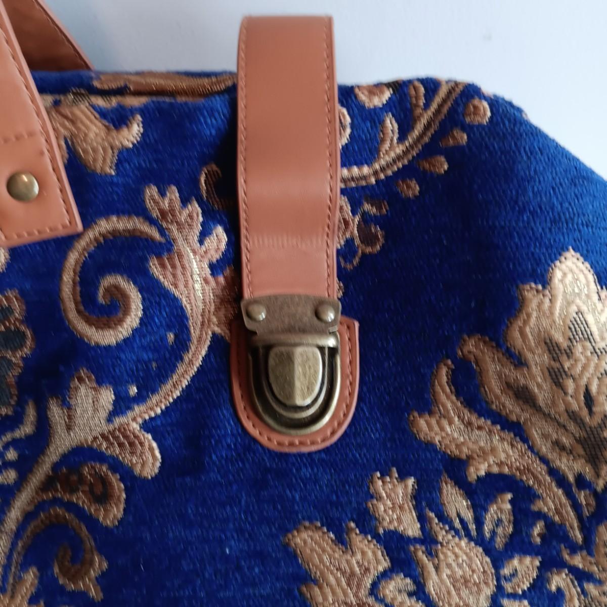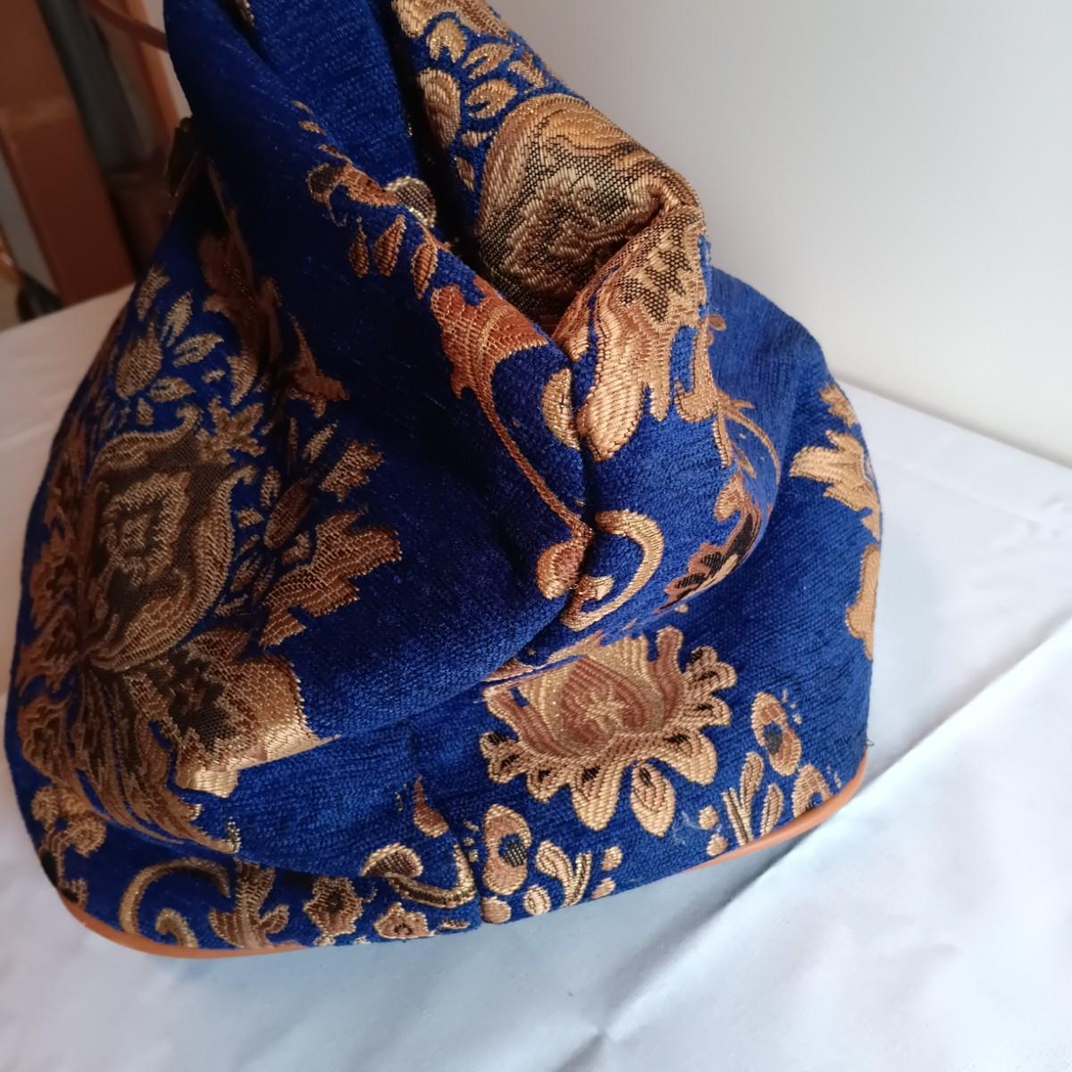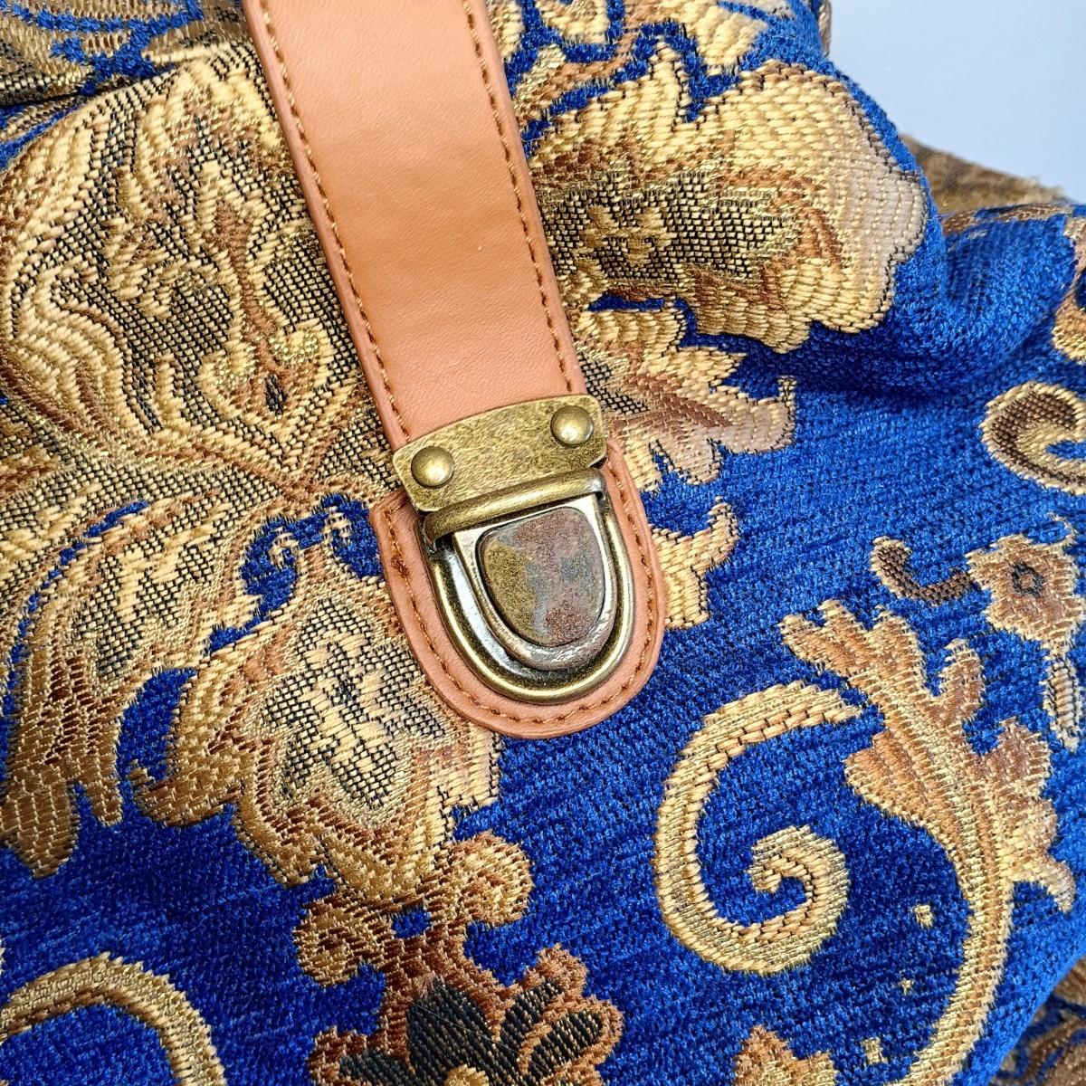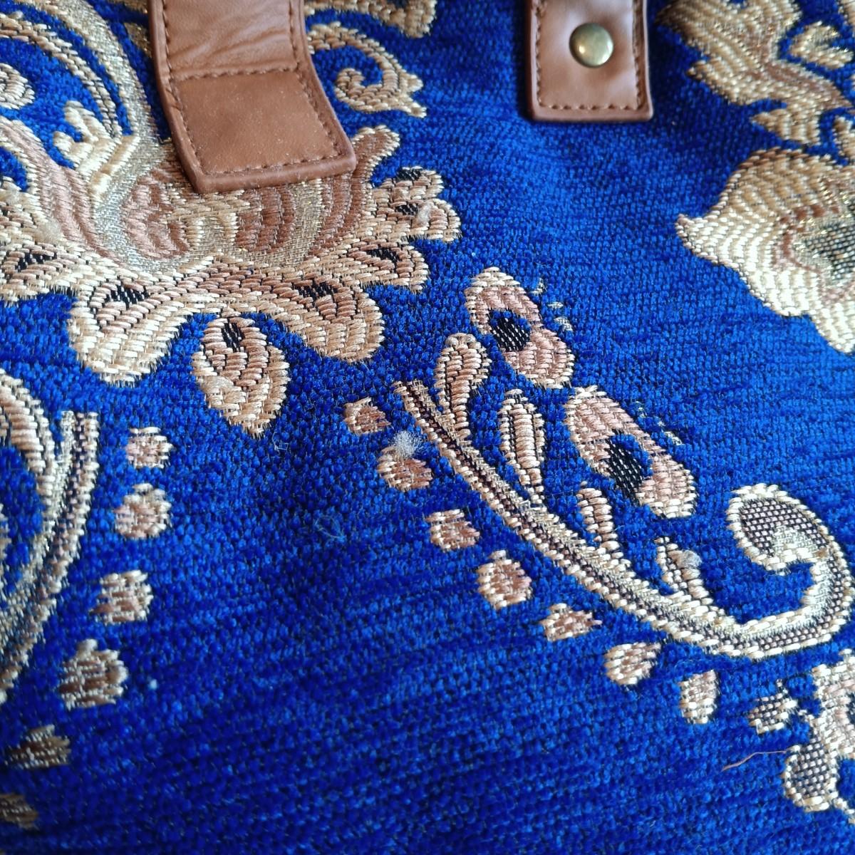 LOT 198K: Joy Mangano Set of 2 Blue & Gold Regal Carpet Bags