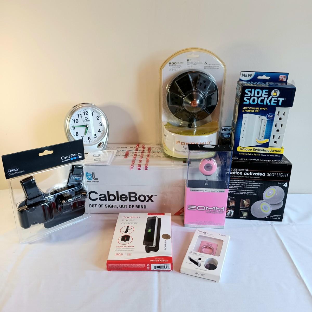 LOT 201K: BlueLounge CableBox, GoPro Chest Harness, Zoom Bluetooth Wireless Leash for Mobile Phones & More