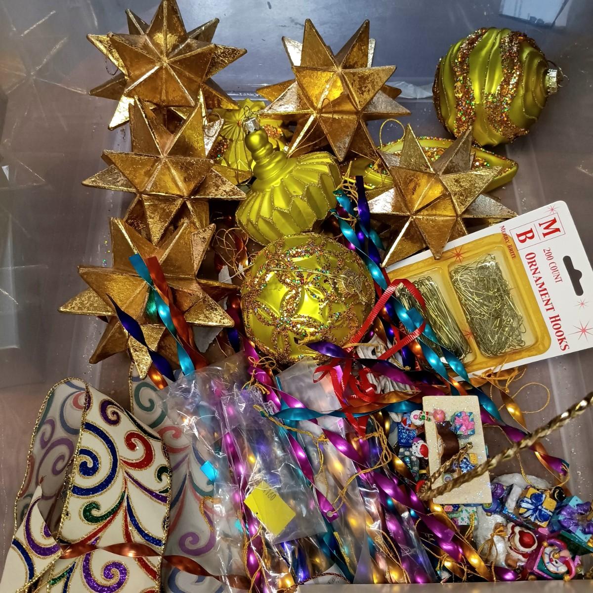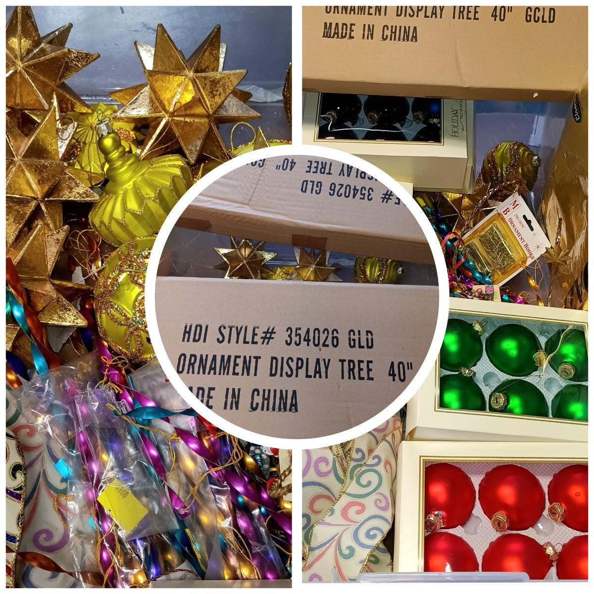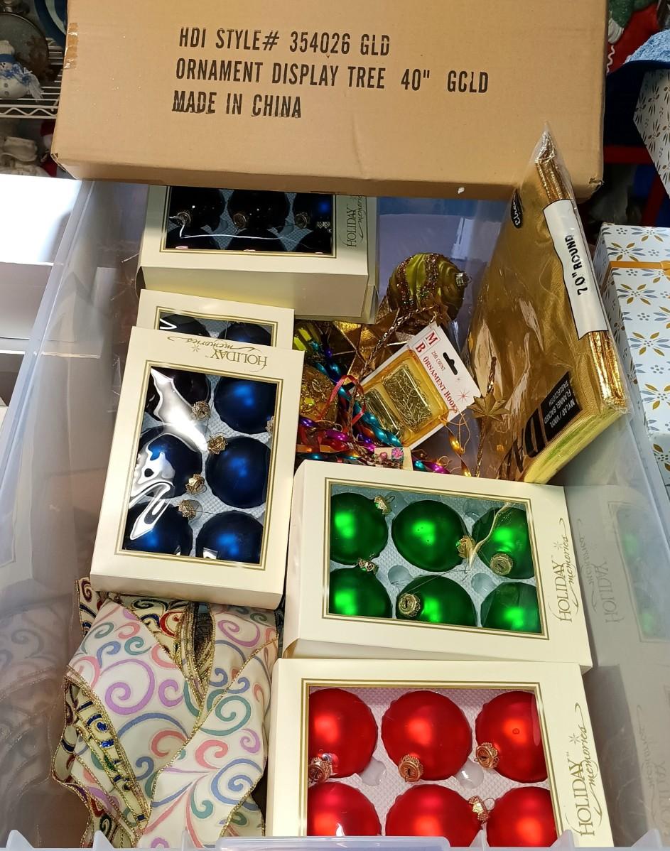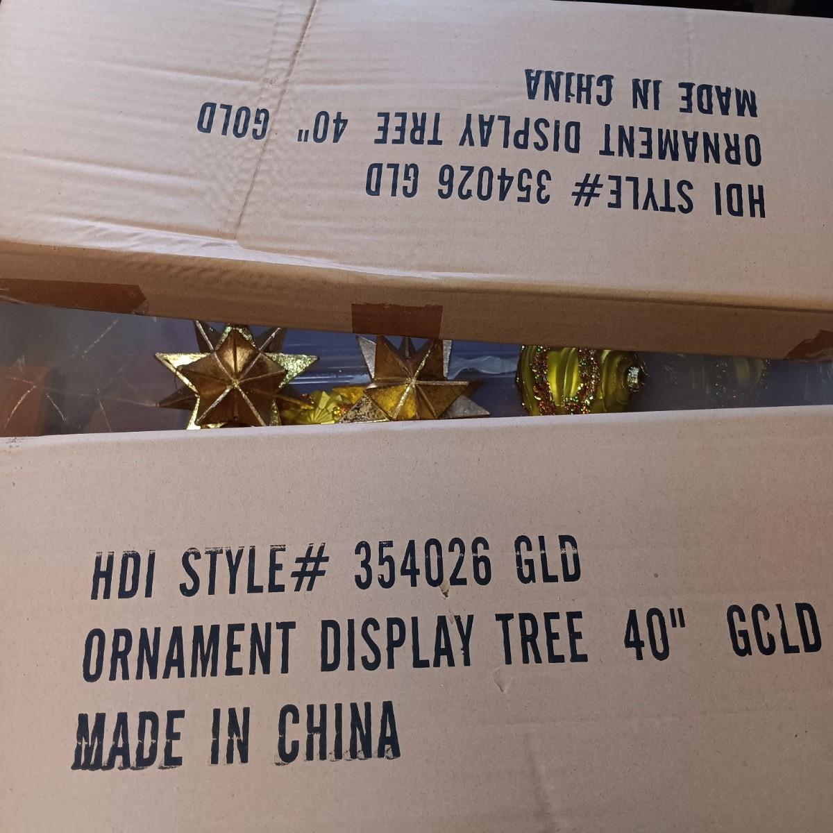 LOT 209K: Christmas Collection- Set of Two Unopened 40" Ornament Display Trees, Ornaments, Ribbon & More