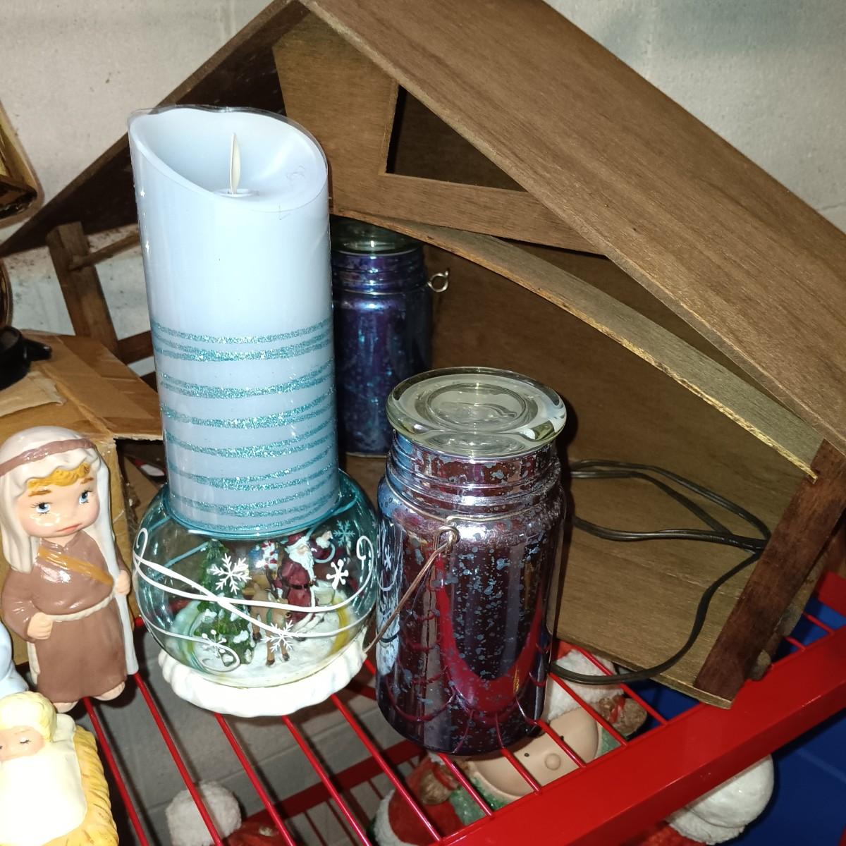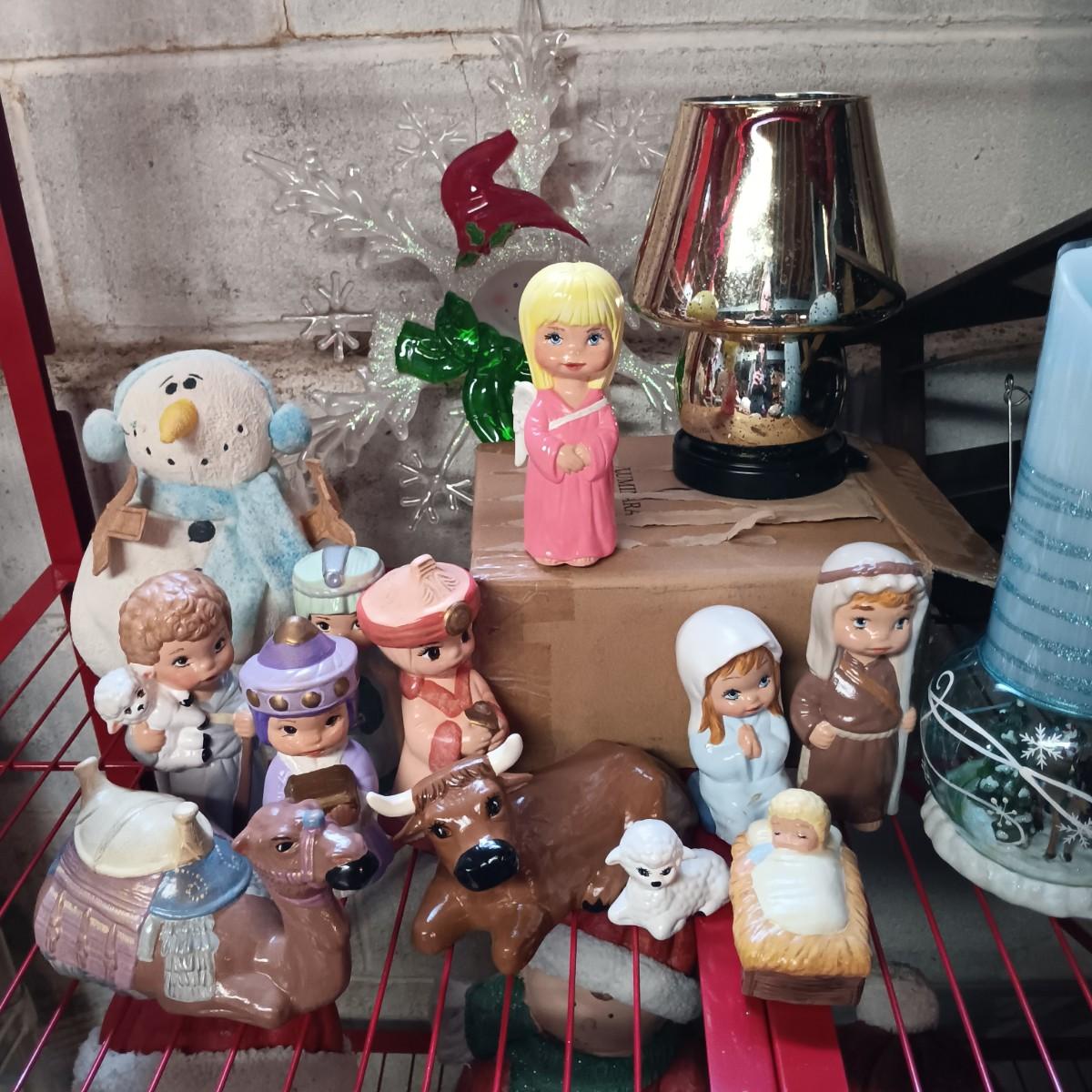 LOT 211K: Christmas Collection- Valerie Parr Decorative Snow Buddy Figurines,  Ceramic Nativity Set, Candles & More