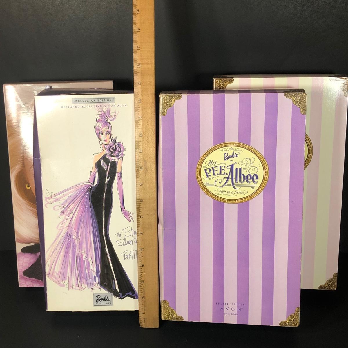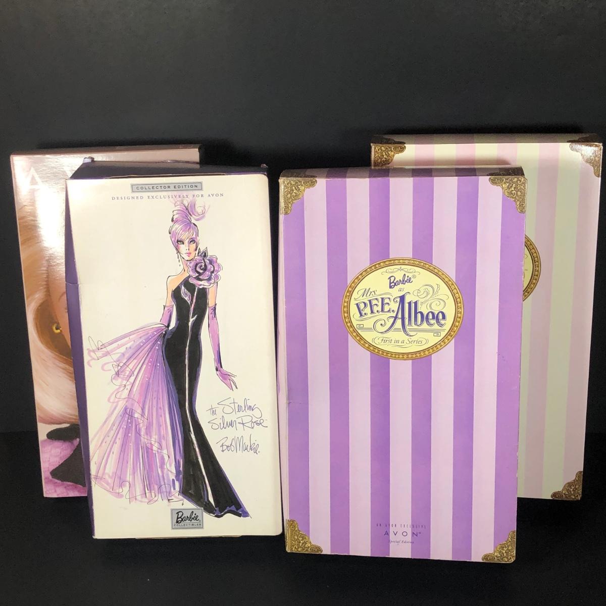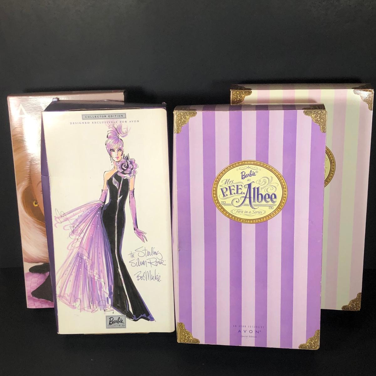 LOT 9L: Avon Exclusive Barbies in Boxes - Bob Mackie Sterling Silver Rose, Avon Representative & Mrs. P.F.E. Albee Dolls (First & Second Editions)