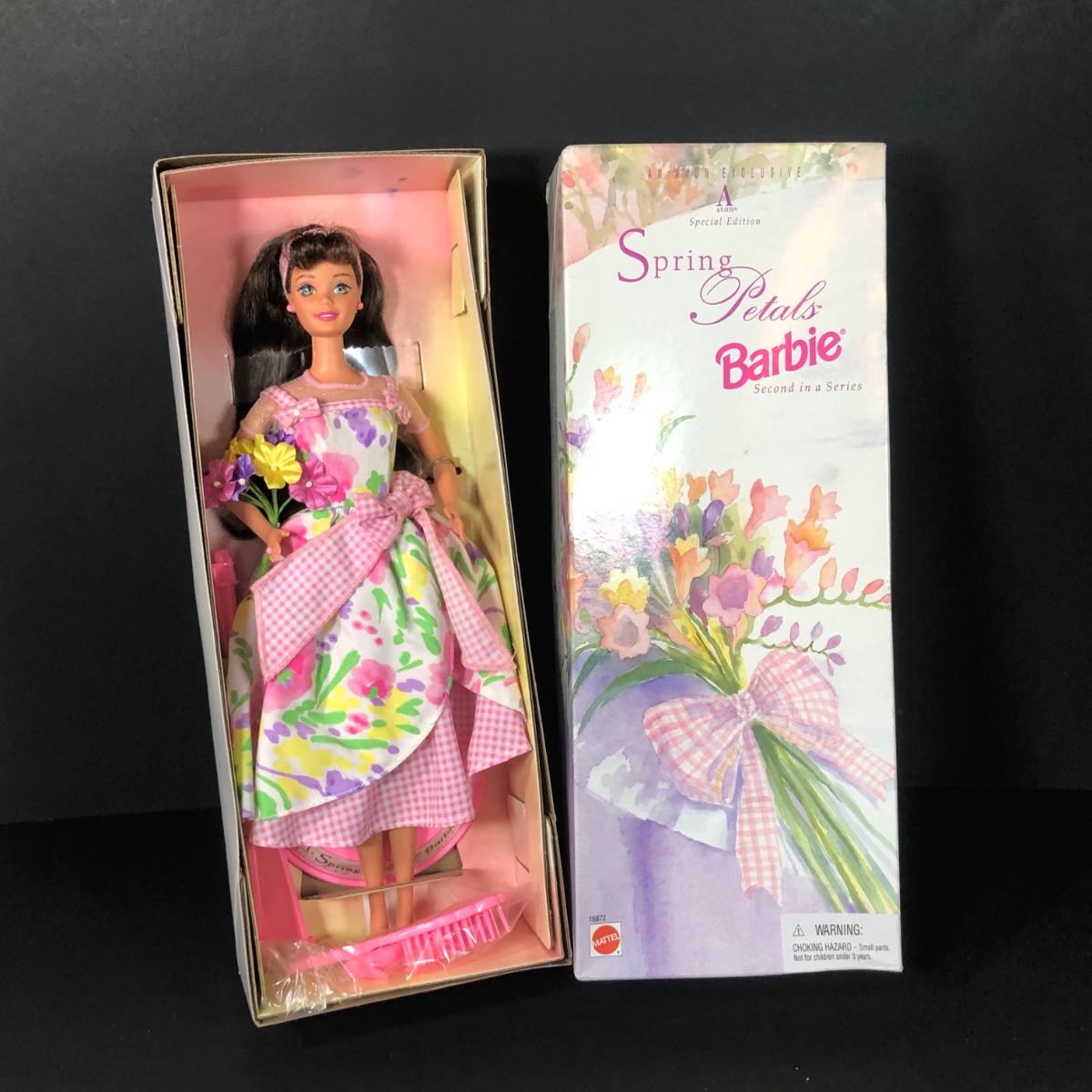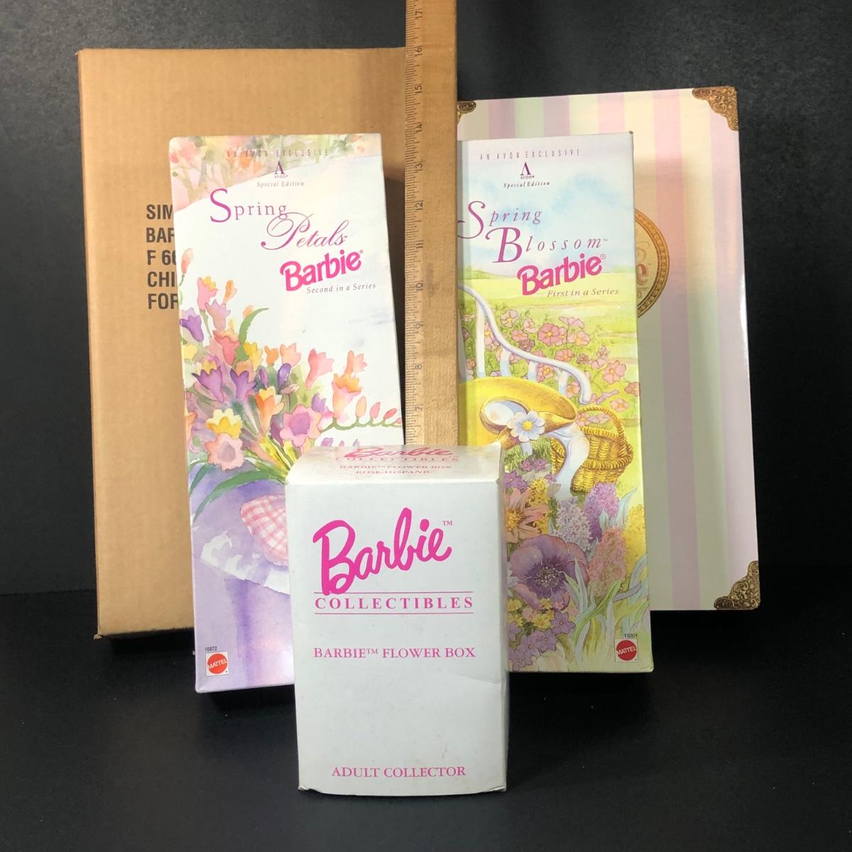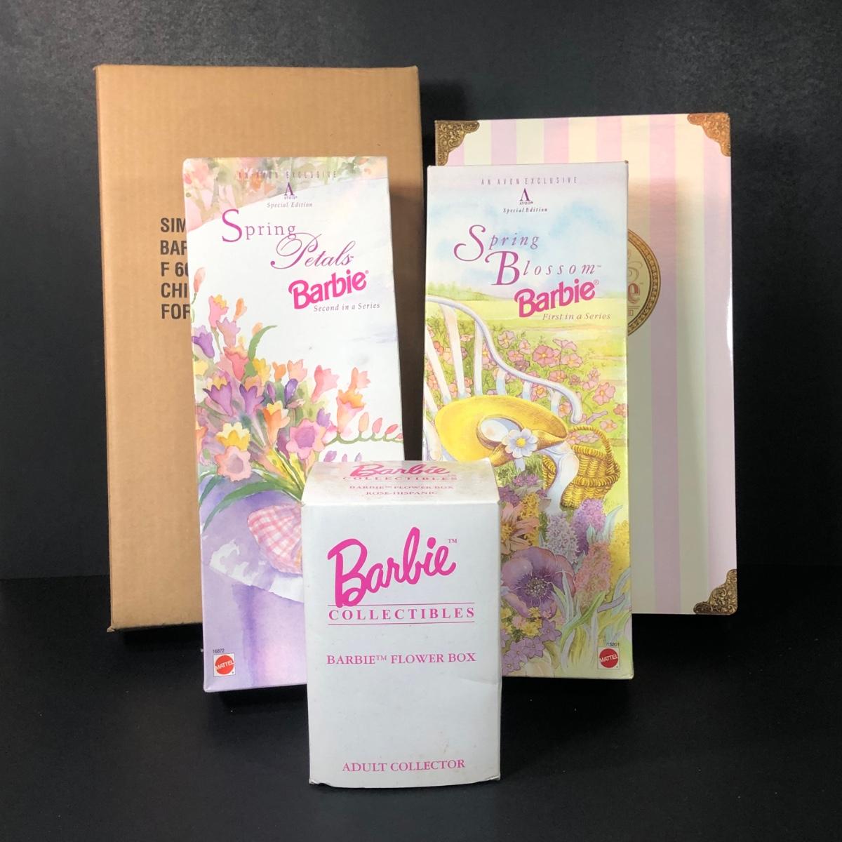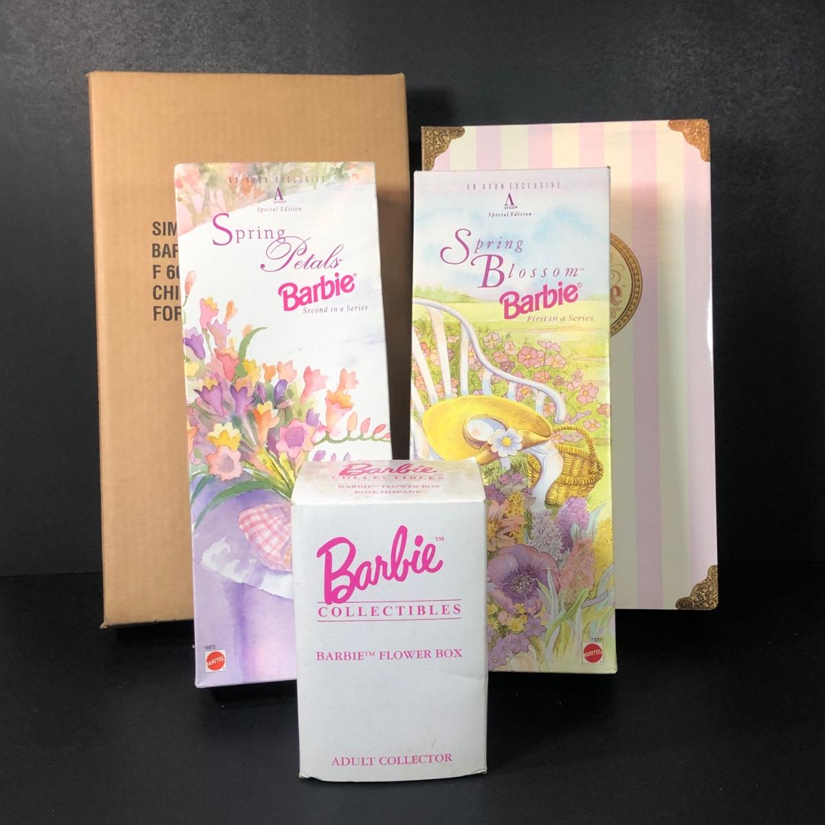 LOT 12L: Avon Barbie Collection - Spring Petals Doll, Spring Blossom Doll, Collectible Jewelry Box, Simply Charming Doll & Mrs. PFE Albee Doll (2nd Edition)