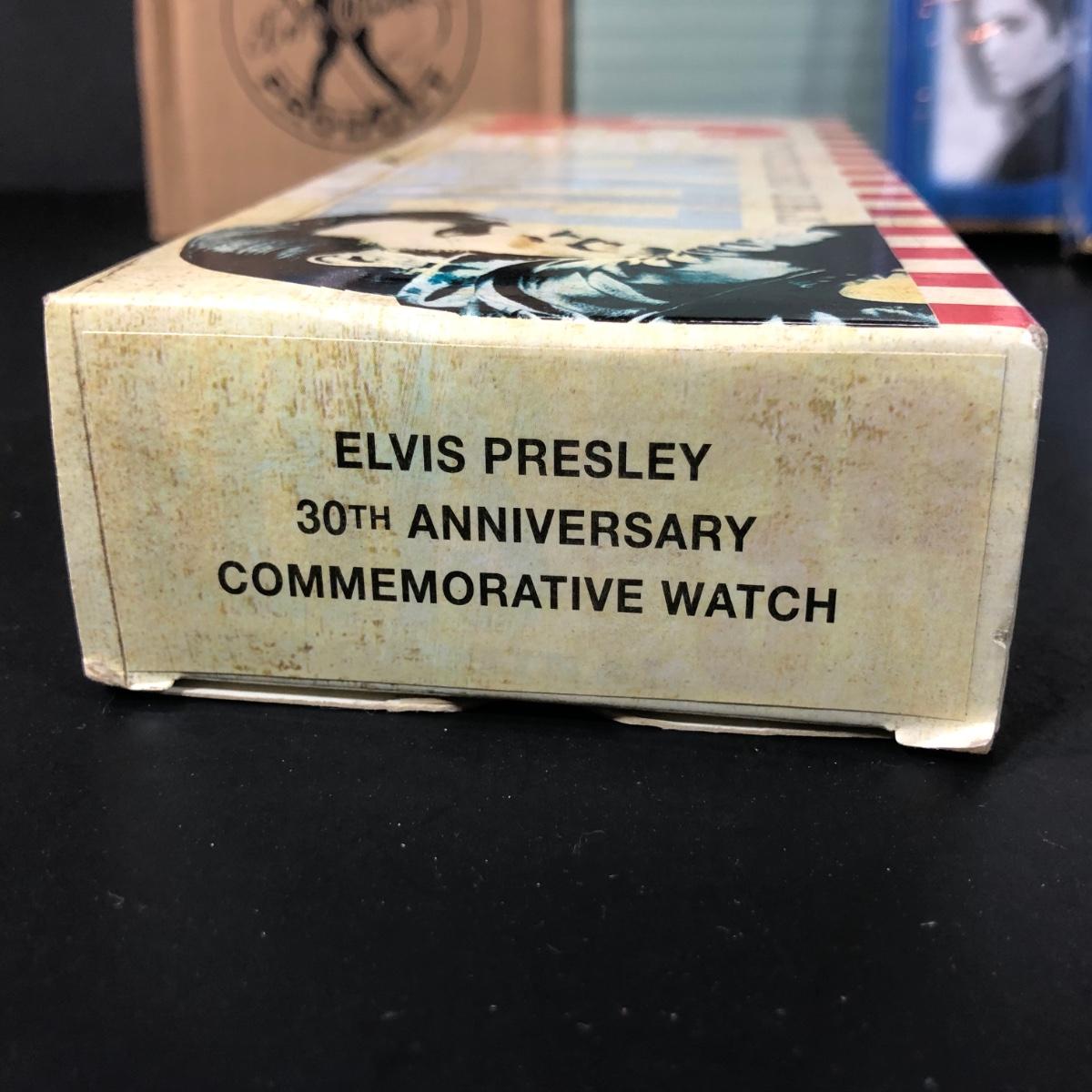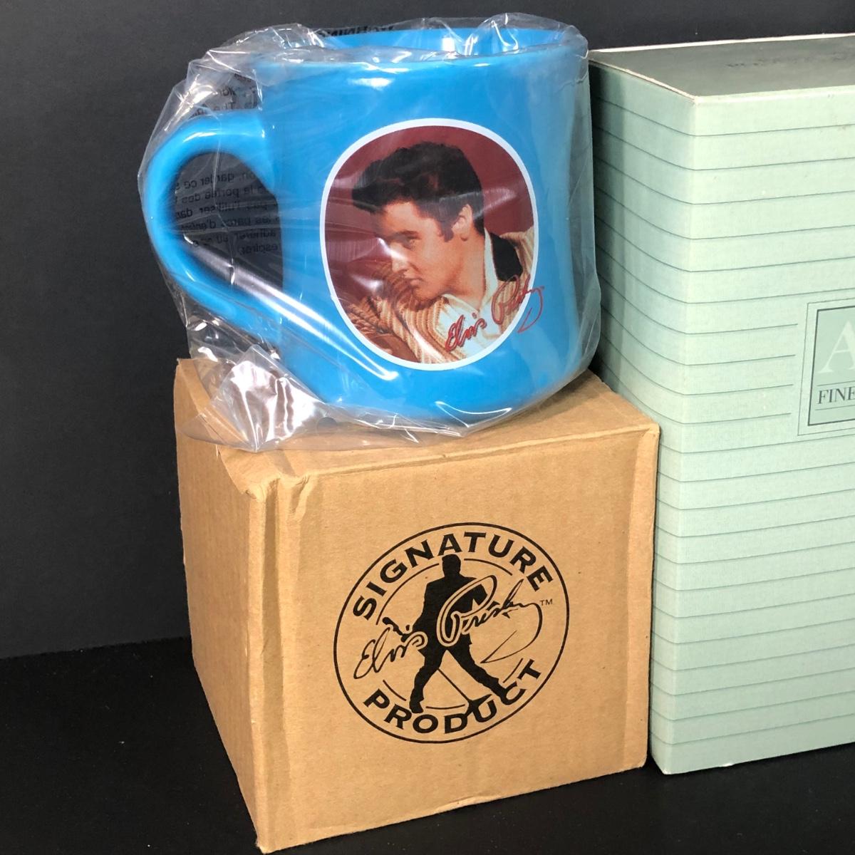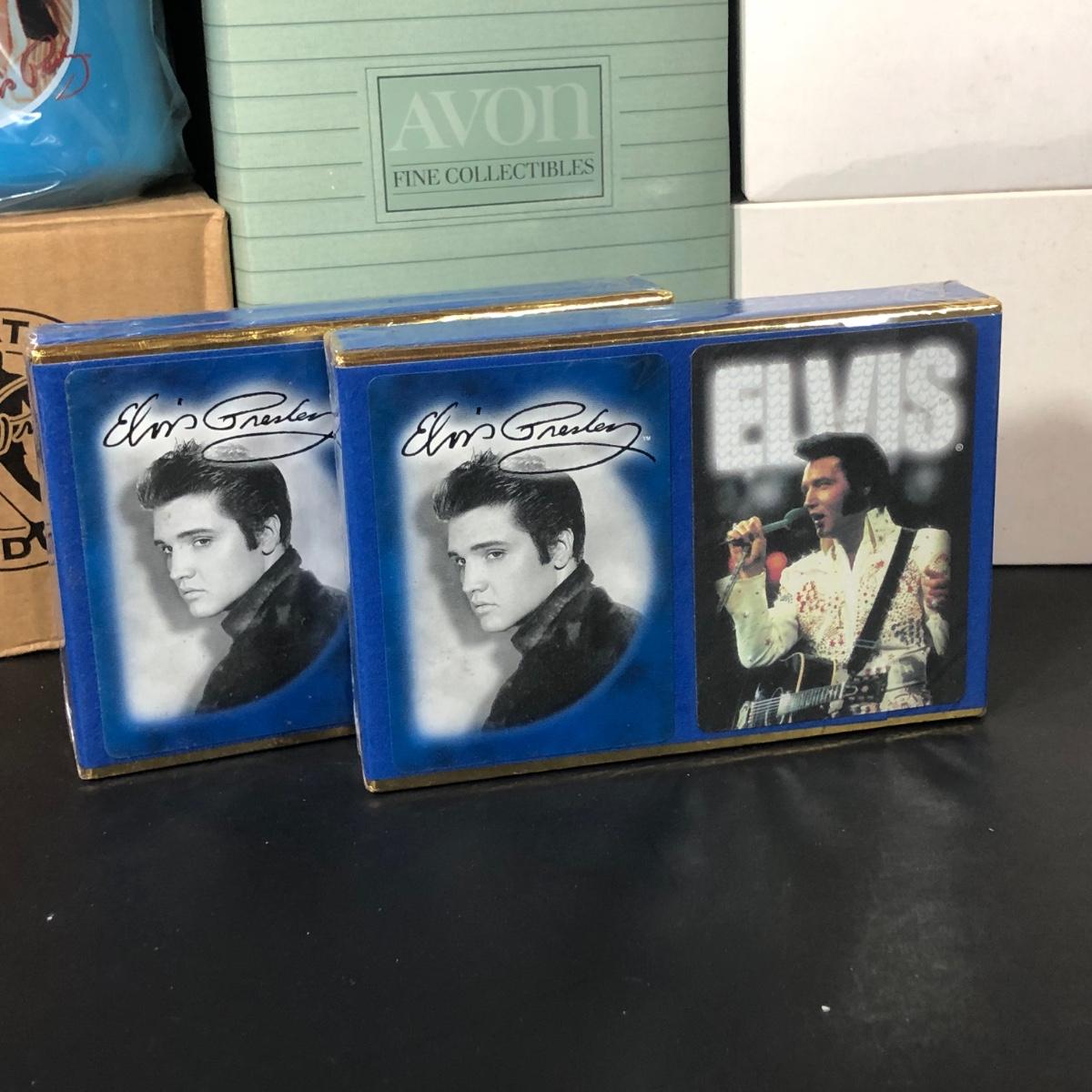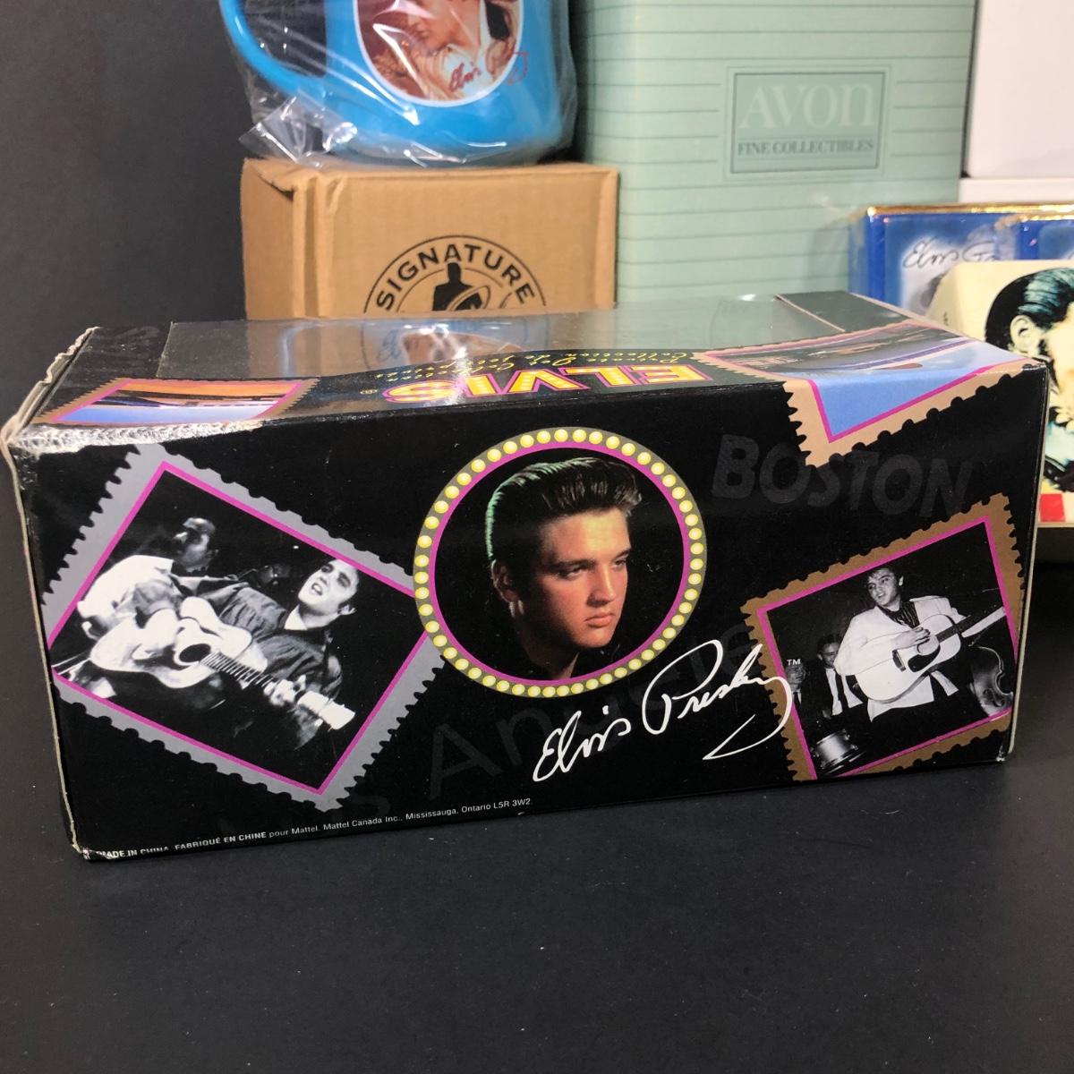 LOT 14L: Elvis Presley Collection - Matchbox Private Jets, 30th Anniversary Commemorative Watch, Velour Playing Cards, Mug, 1987  Avon Porcelain Figurine & 4-Pack Matchbox Sets (4 Sealed Boxes)