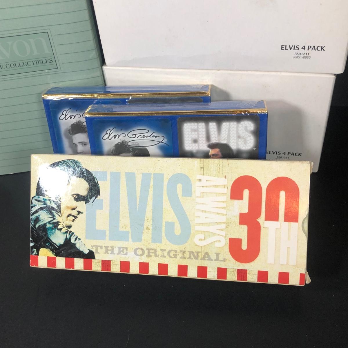 LOT 14L: Elvis Presley Collection - Matchbox Private Jets, 30th Anniversary Commemorative Watch, Velour Playing Cards, Mug, 1987 Avon Porcelain Figurine & 4-Pack Matchbox Sets (4 Sealed Boxes)