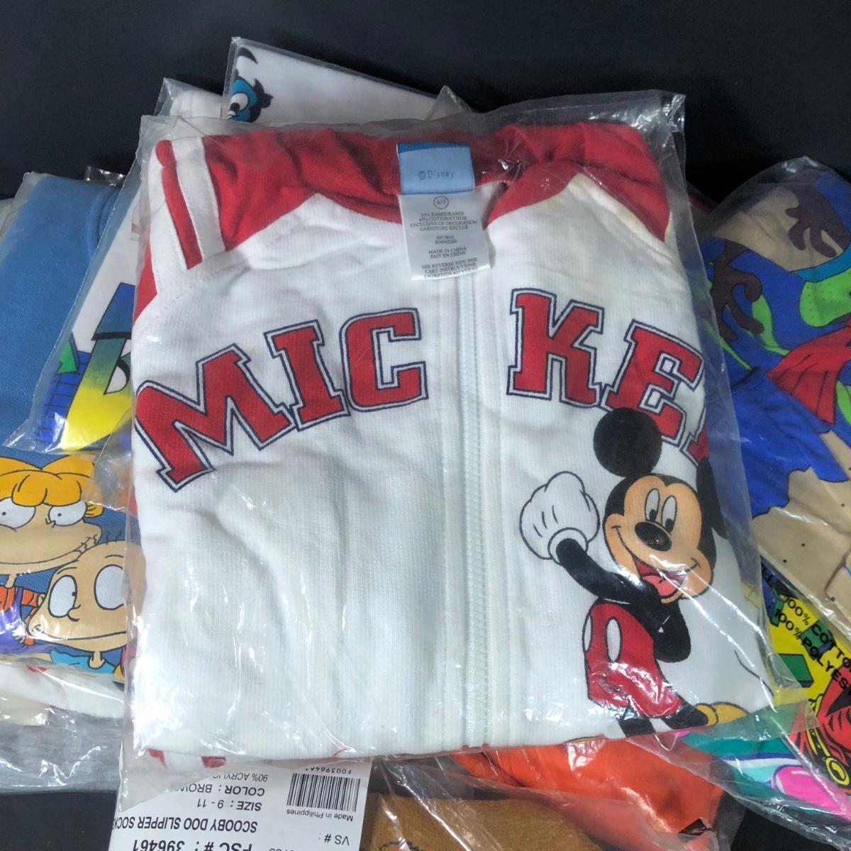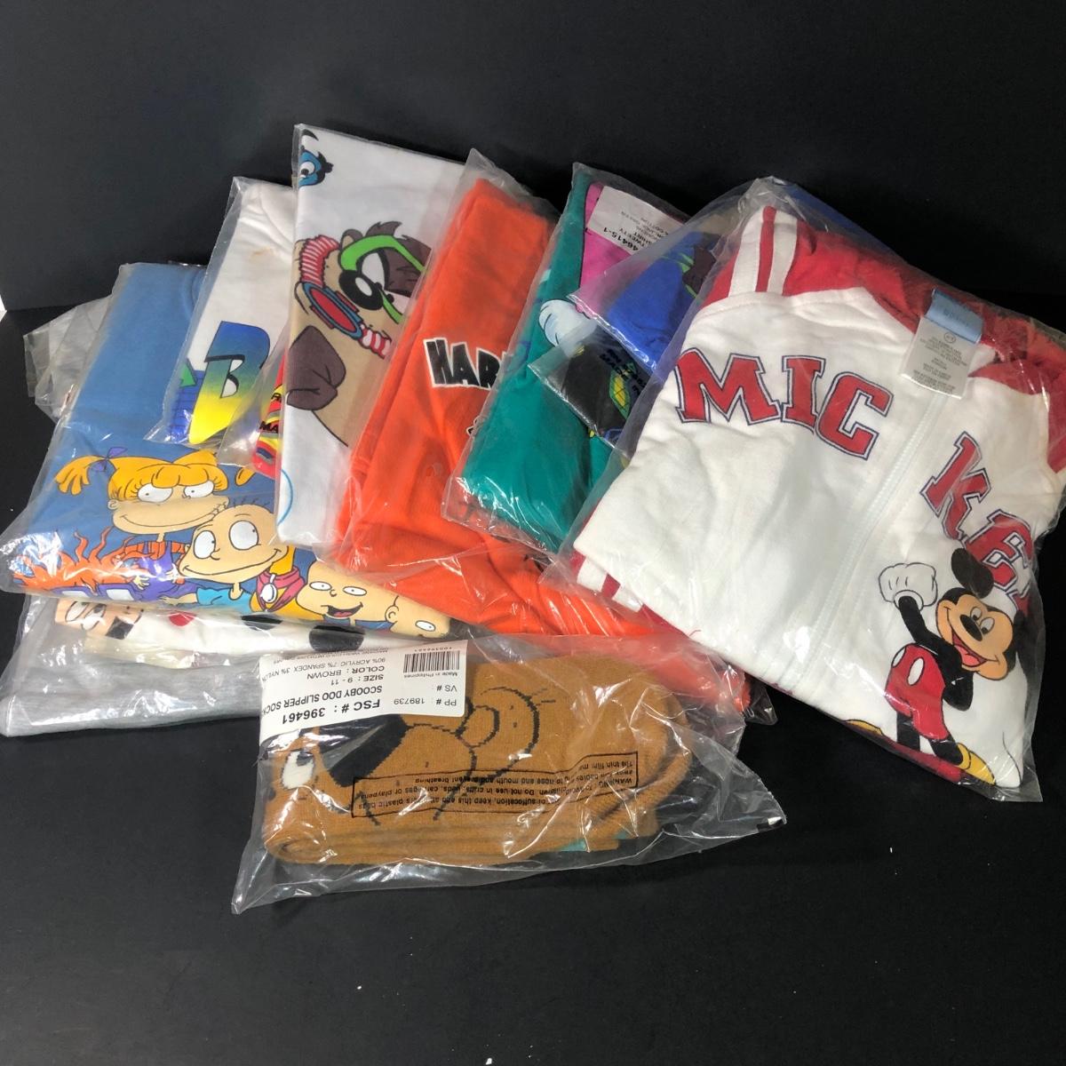 LOT 15L: Kid's Clothing NIP - Mickey, Scooby-Doo, Looney Tunes, Batman, Harley-Davidson, Power Rangers, Rugrats