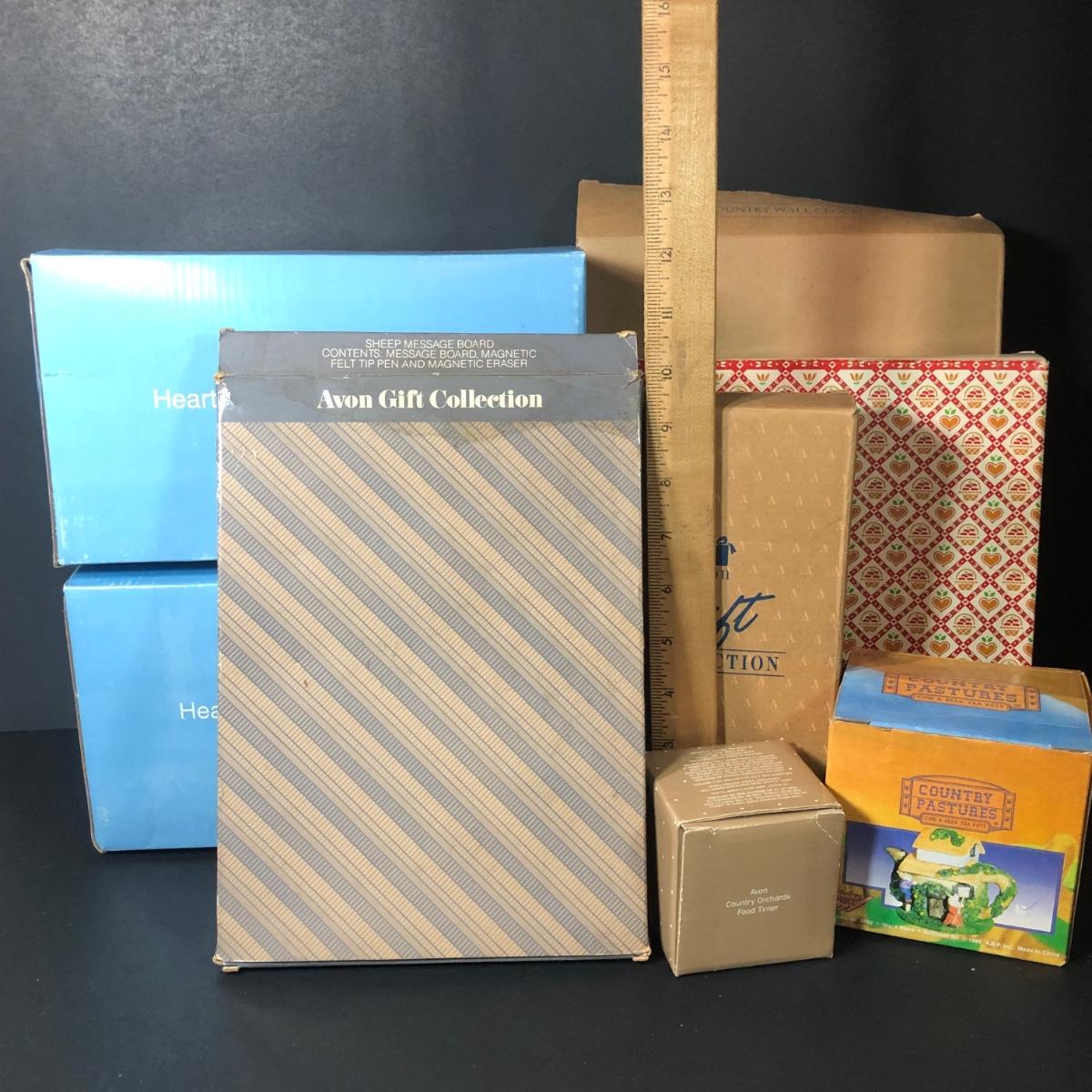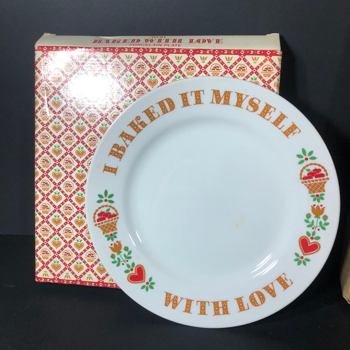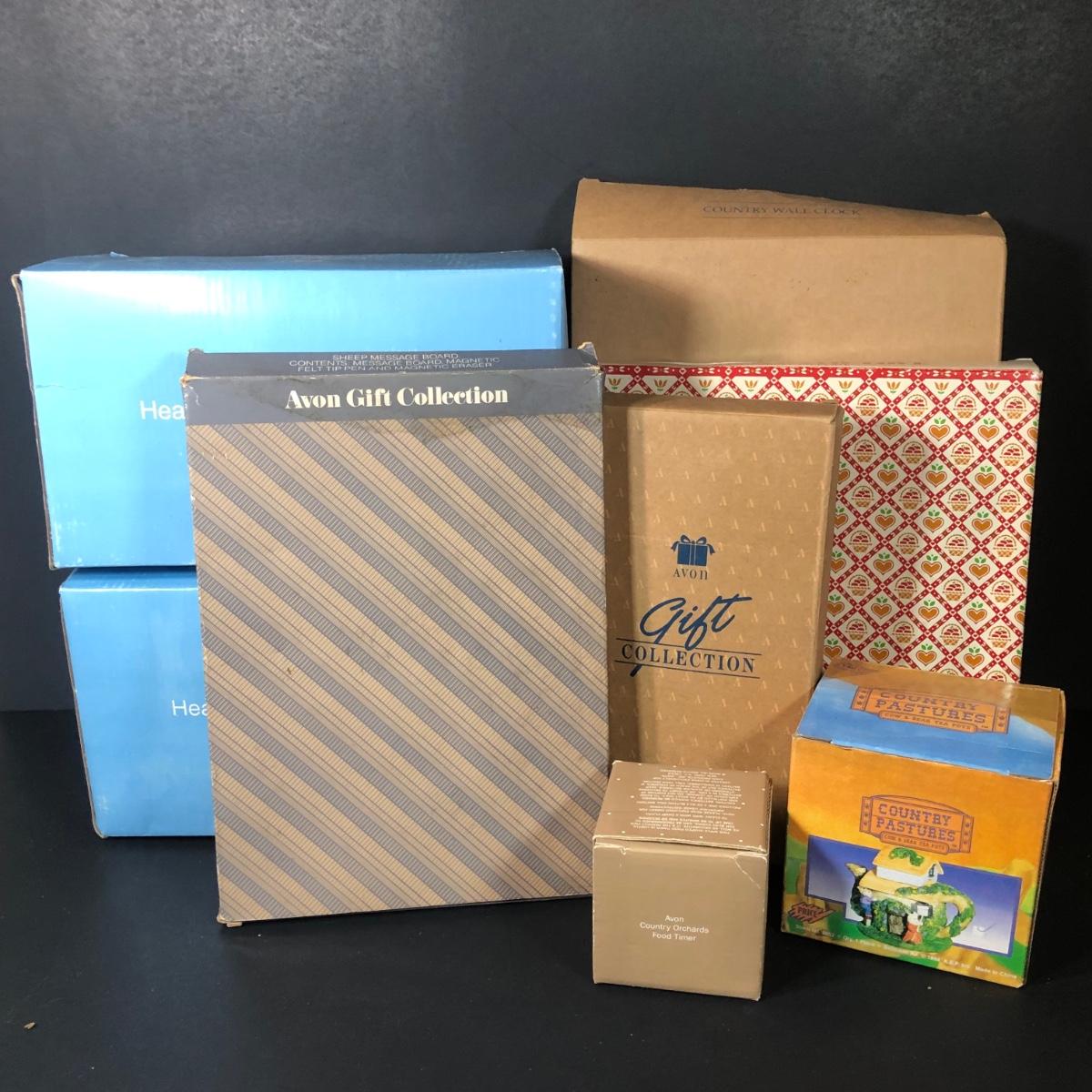 LOT 18L: Avon & More Country Kitchen Decor - Sheep Message Board, Heartwarming Country Sitters, 1982 Baked w/ Love Plate, Country Wall Clock & More