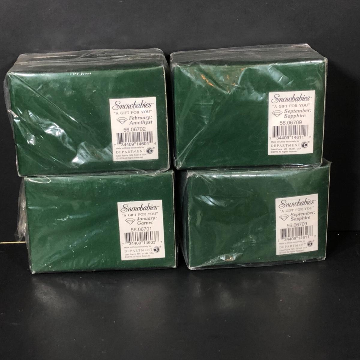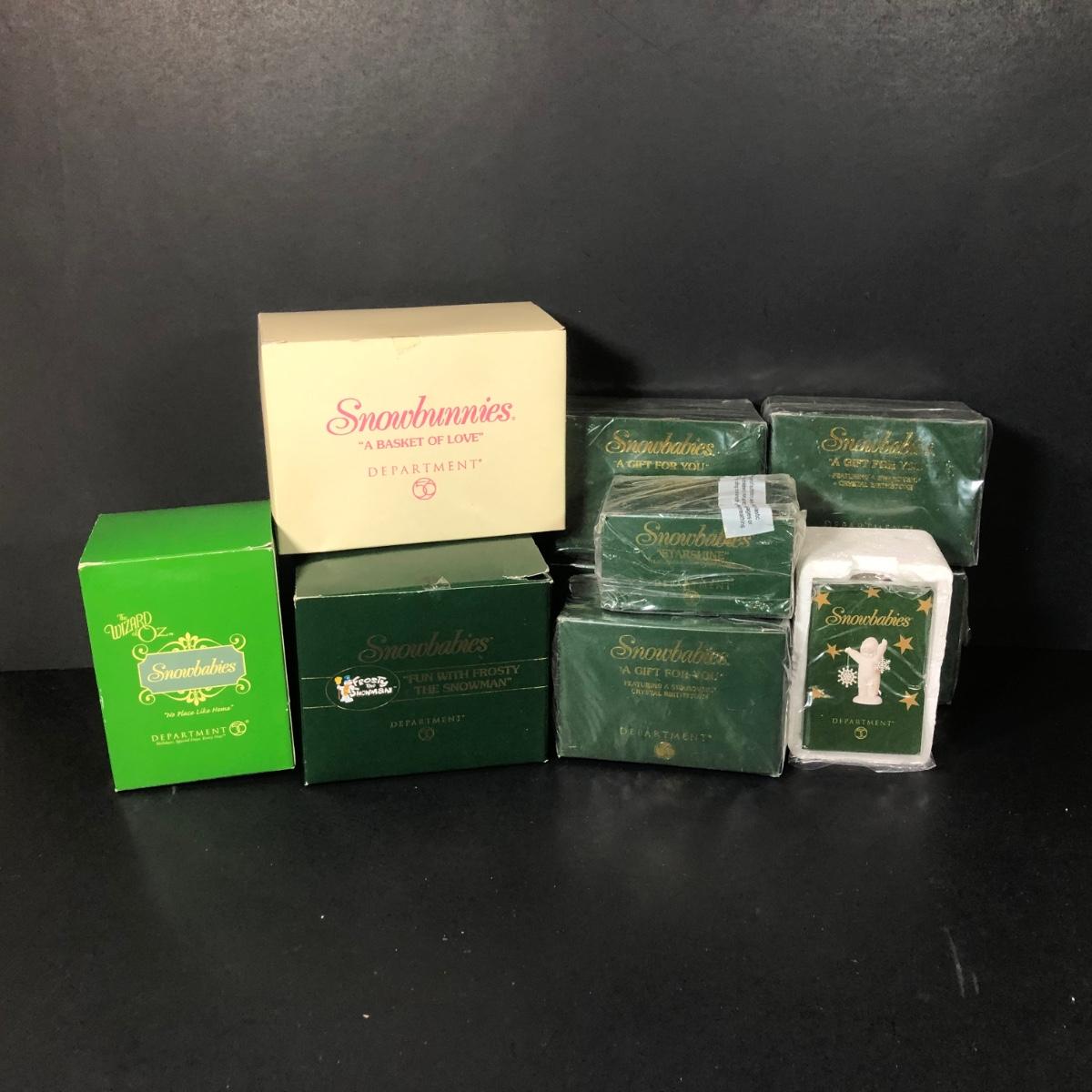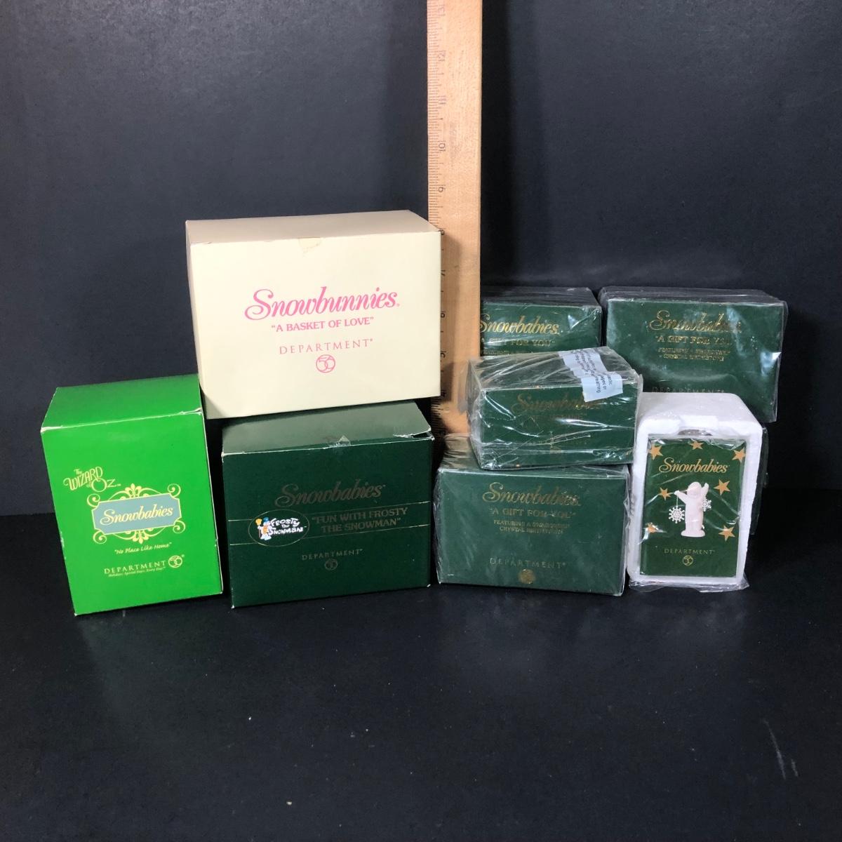 LOT 21L: Department 56 Snowbabies - A Gift for You Birthstone Figures (Feb, Jan, Sept, Aug), Starshine, Fun w/ Frosty, A Basket of Love, Wizard of Oz