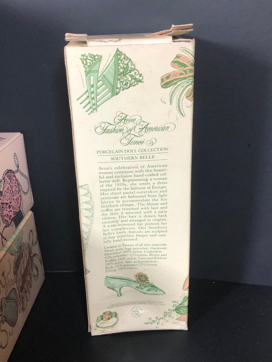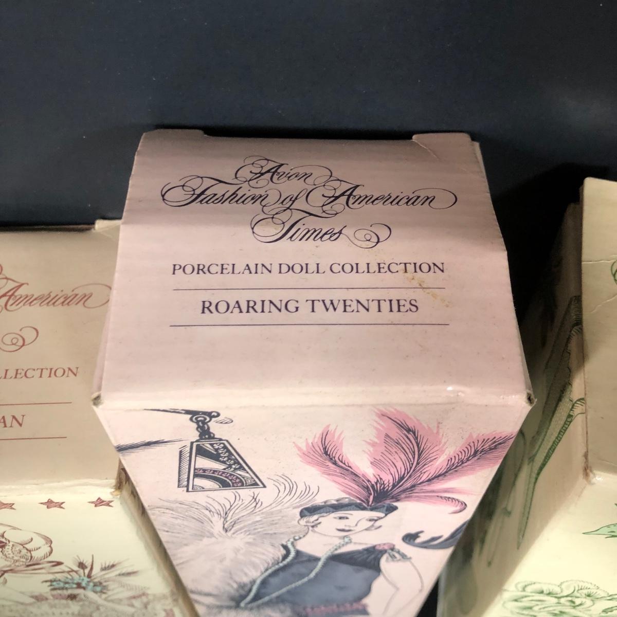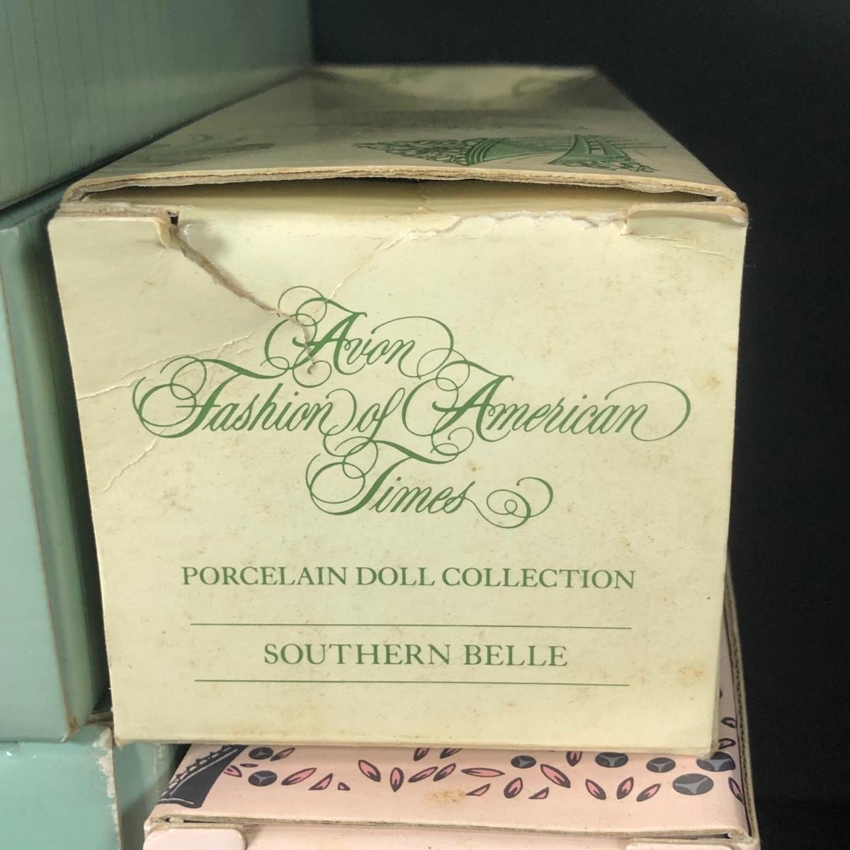 LOT 23L: American Fashion Porcelain Thimble Collection & Avon Porcelain Dolls - Fashion of American Times, International, Childhood Dreams, Victorian Doll & American Heirloom Doll