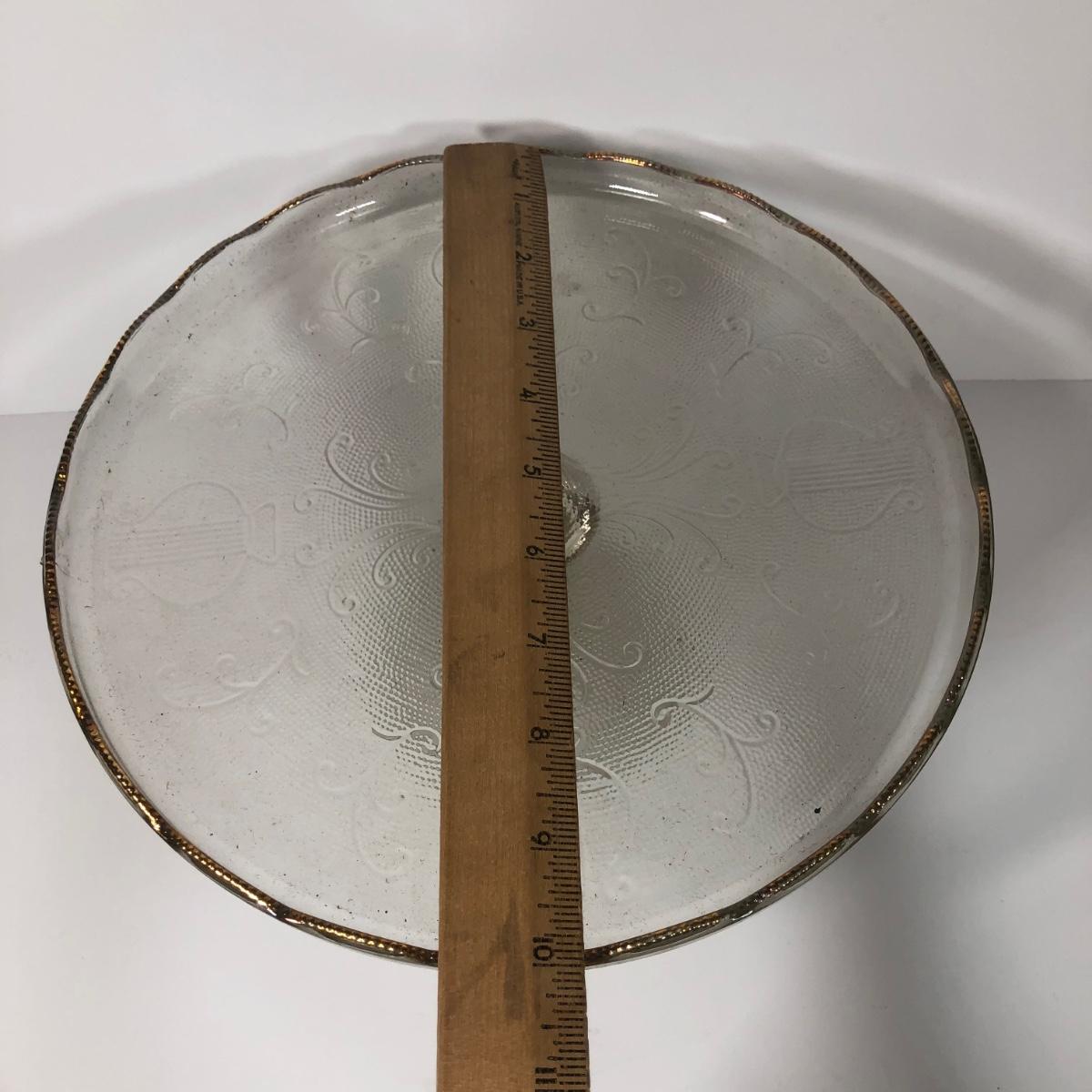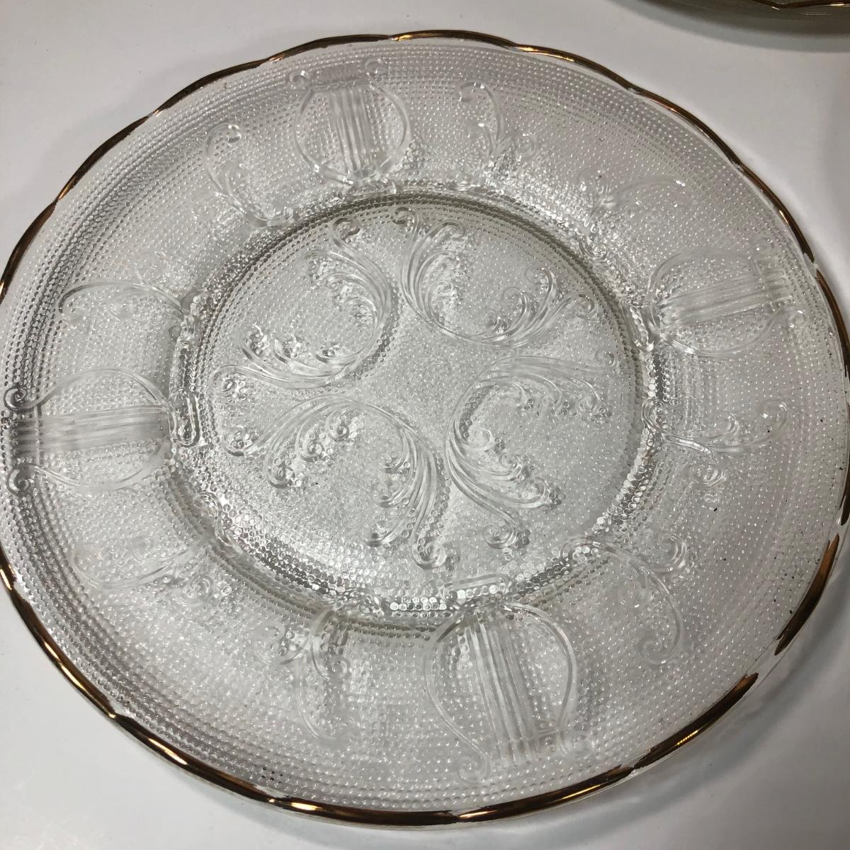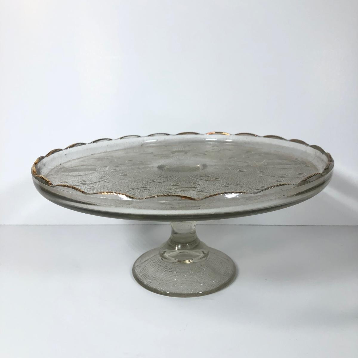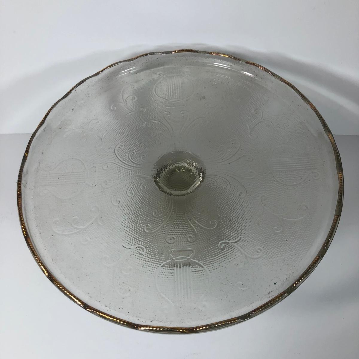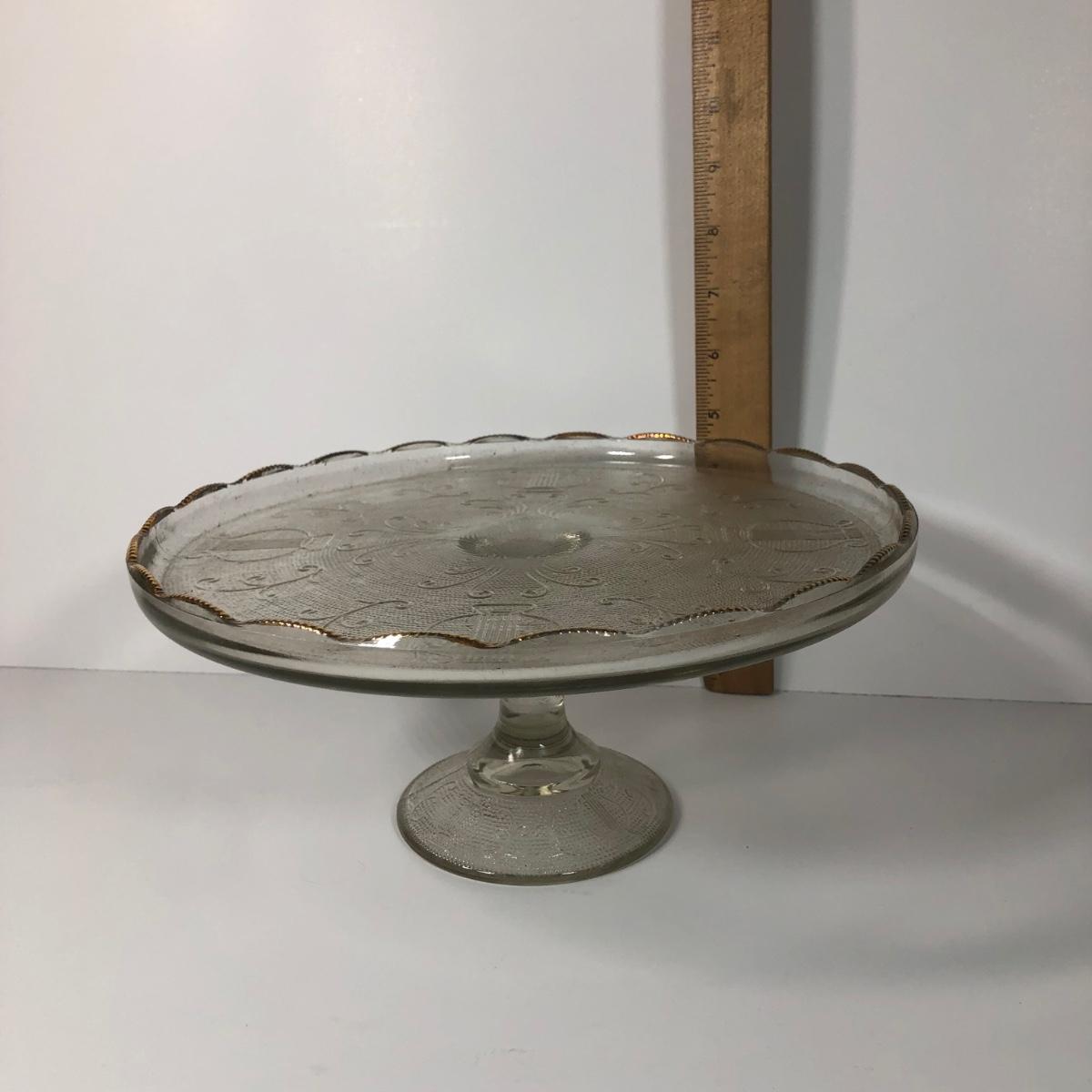 LOT 25L: Vintage Jeannette Harp Glass Dish Set - Tea cups, Saucers, Cake Stand & Dessert Plates