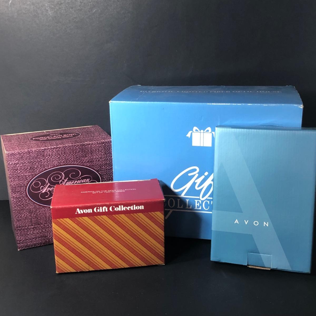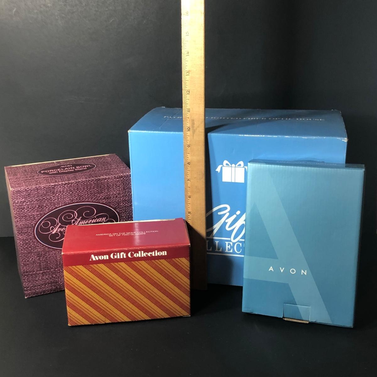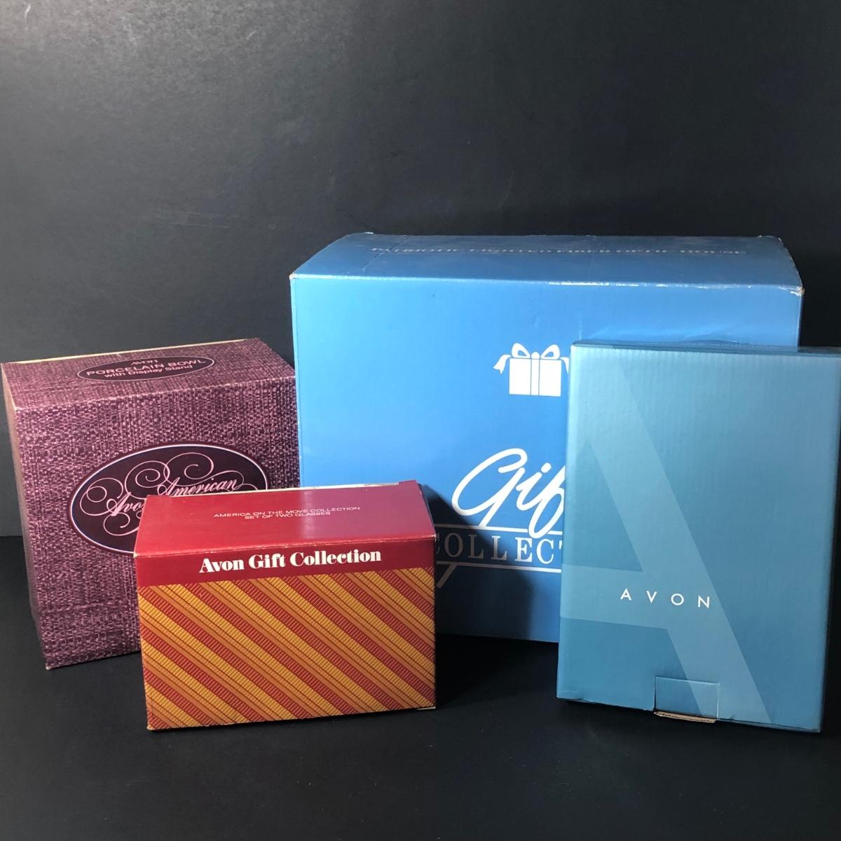 LOT 29L: Patriotic Avon Gift Collection - Lighted Fiber Optic House, Americana Wind Chime, America on the Move Glasses & American Heirloom Porcelain Bowl