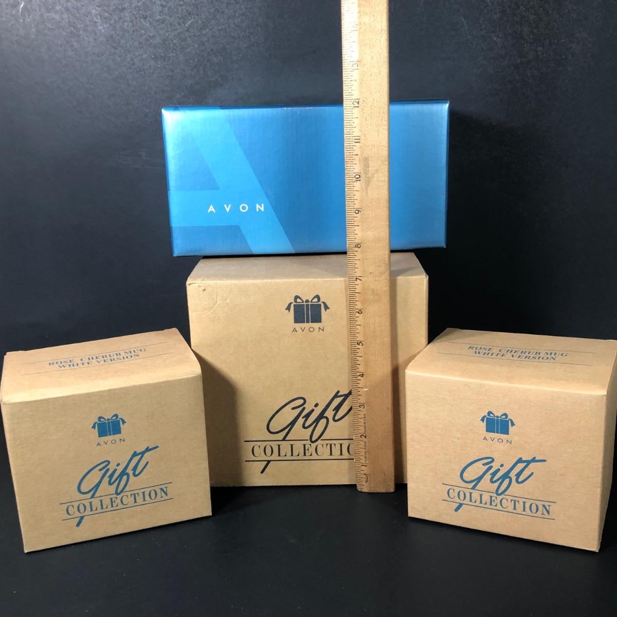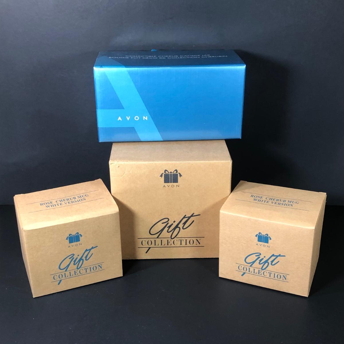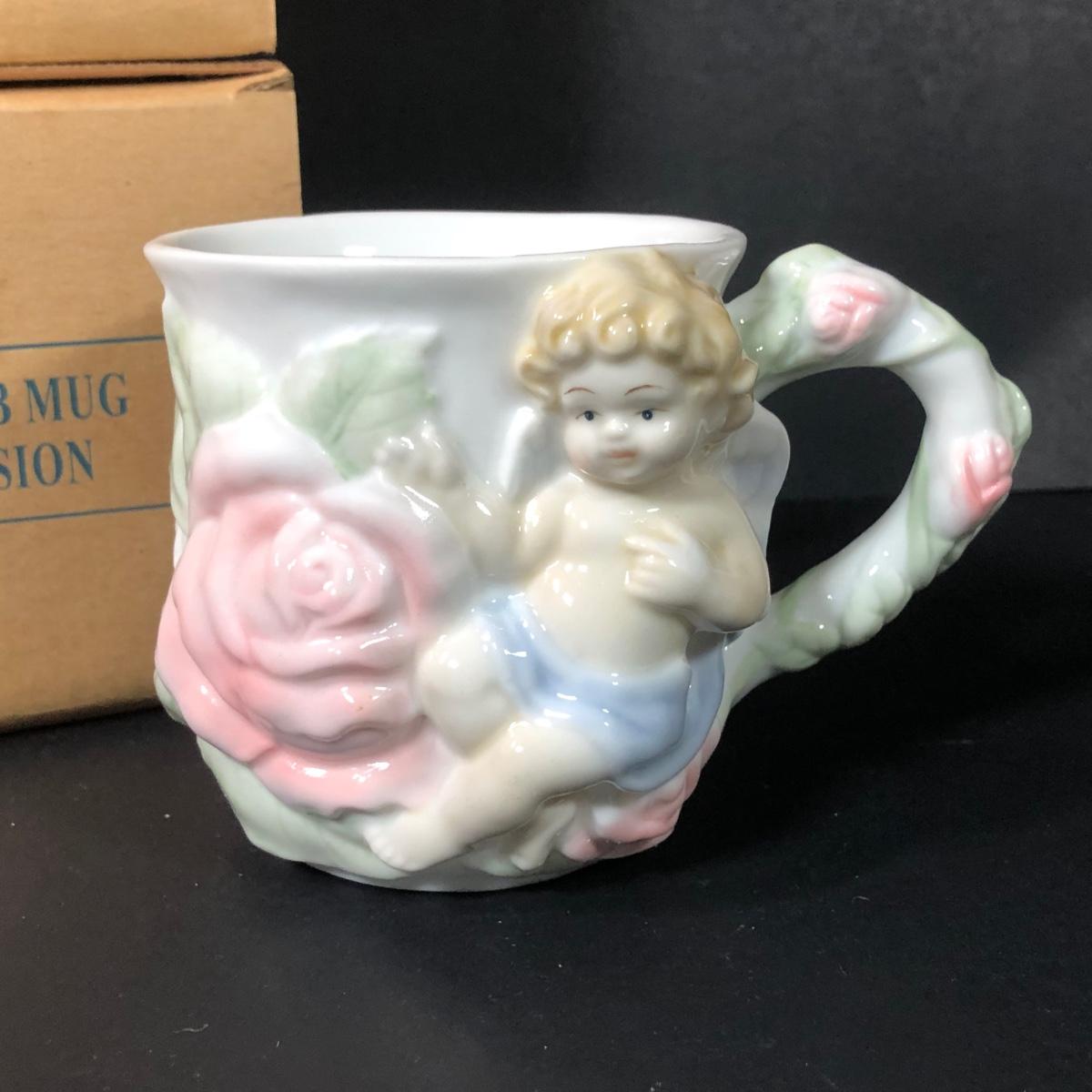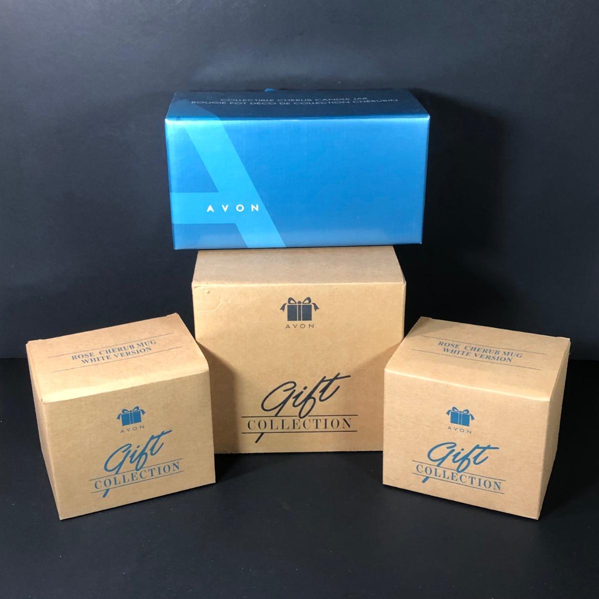 LOT 31L: Avon - Rose Cherub Mugs (2), Classical Cherub Fountain & Collectible Cherub Candle Jar