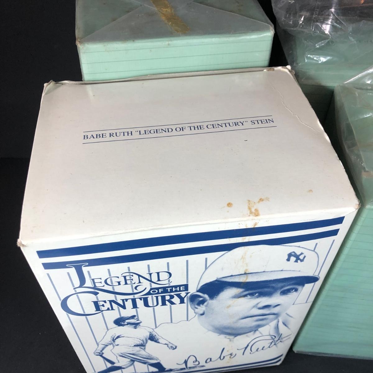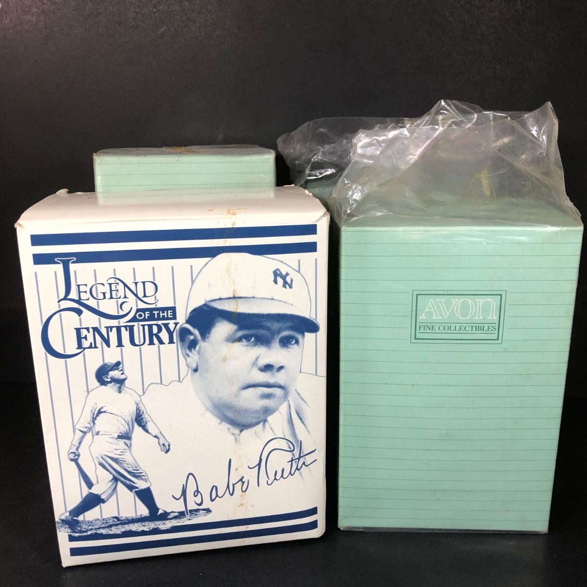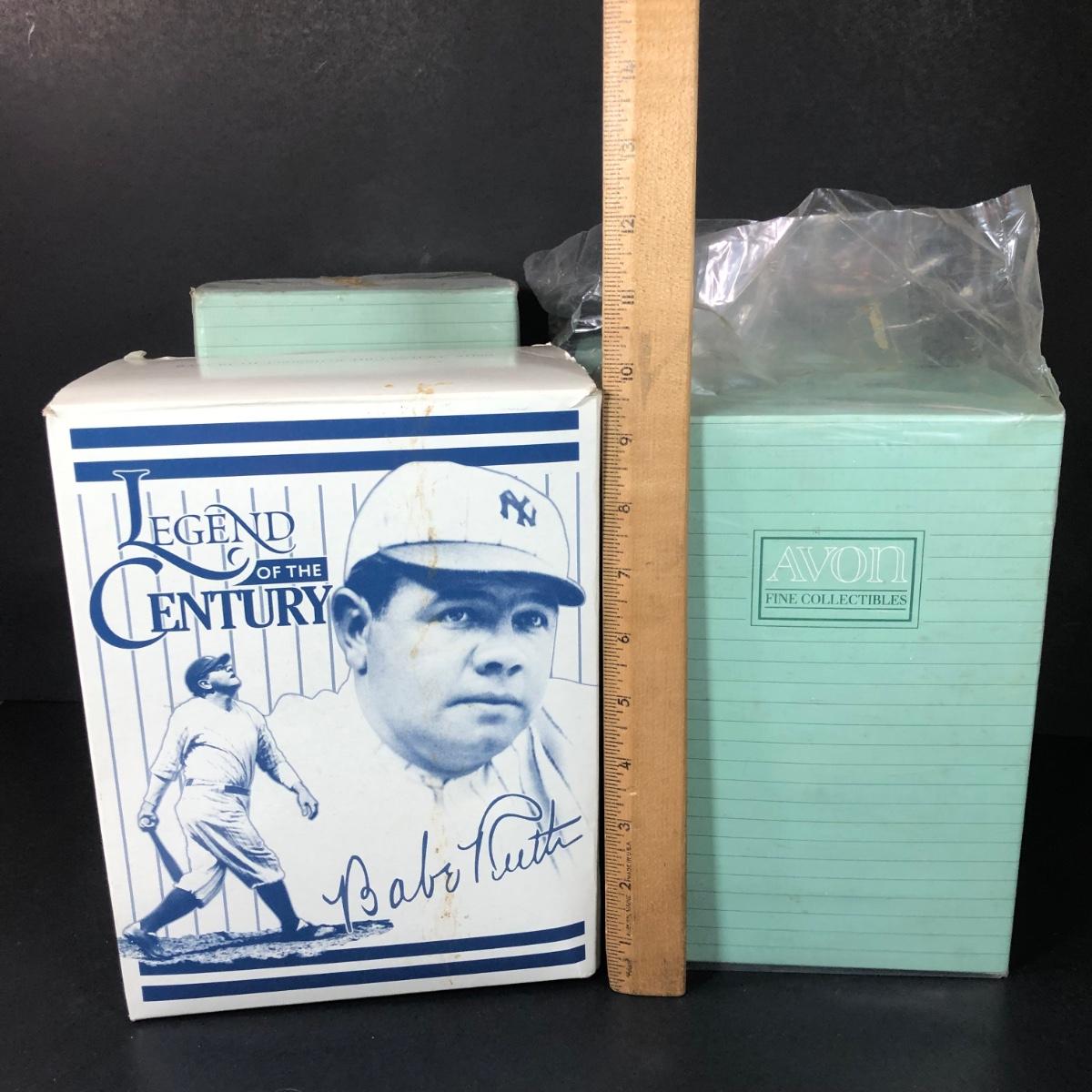 LOT 52L: Packaged Avon Steins - 1999 Babe Ruth "Legend of the Century," 1990 Fishing (2) & 1989 Racing Car