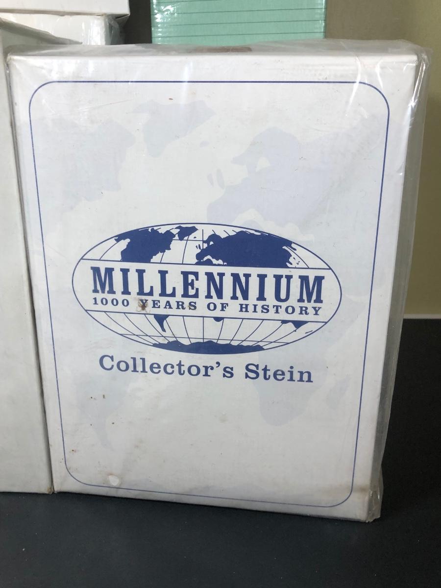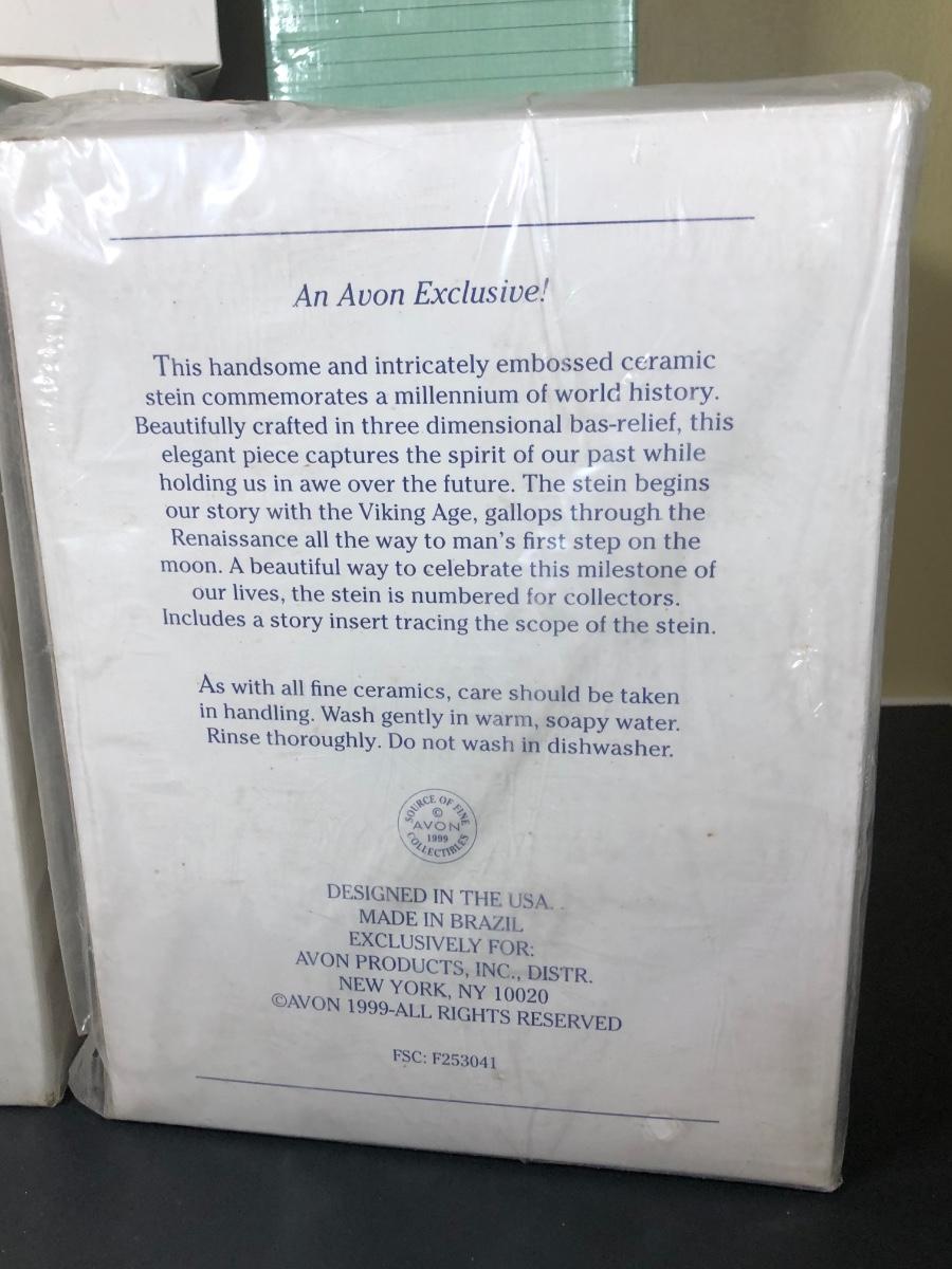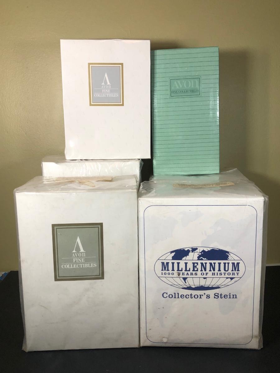 LOT 53L: Packaged Avon Steins - Millennium, Salute to the USPS, 2002 Clydesdale, 2002 America the Beautiful, 1988 "Indians" of the American Frontier, 1994 Country & Western Music