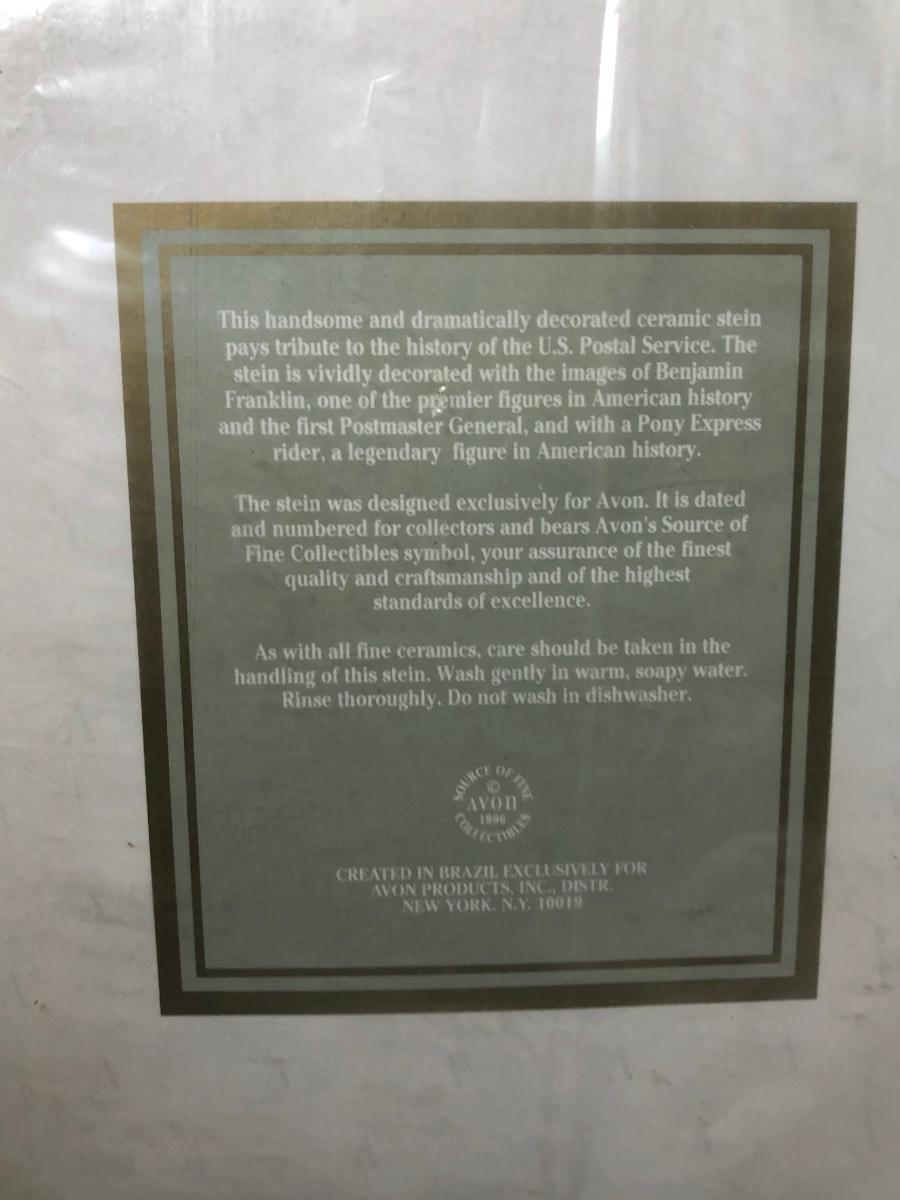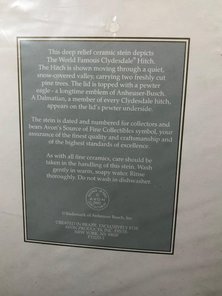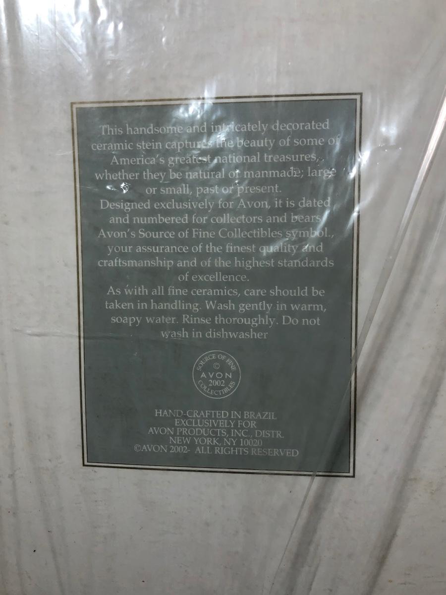 LOT 53L: Packaged Avon Steins - Millennium, Salute to the USPS, 2002 Clydesdale, 2002 America the Beautiful, 1988 "Indians" of the American Frontier, 1994 Country & Western Music