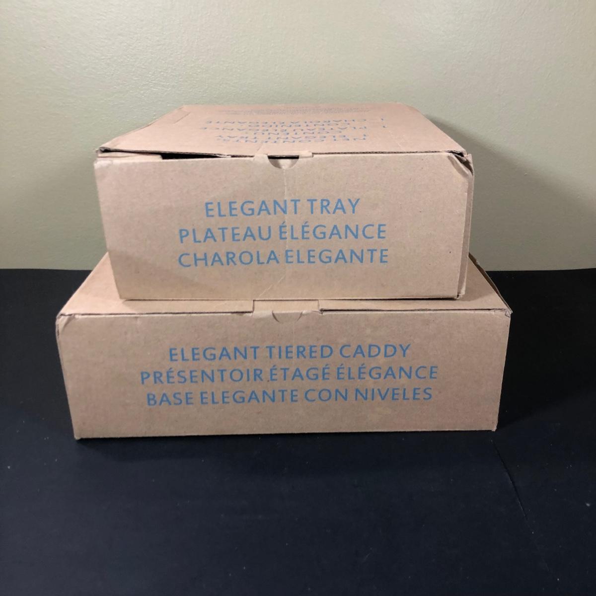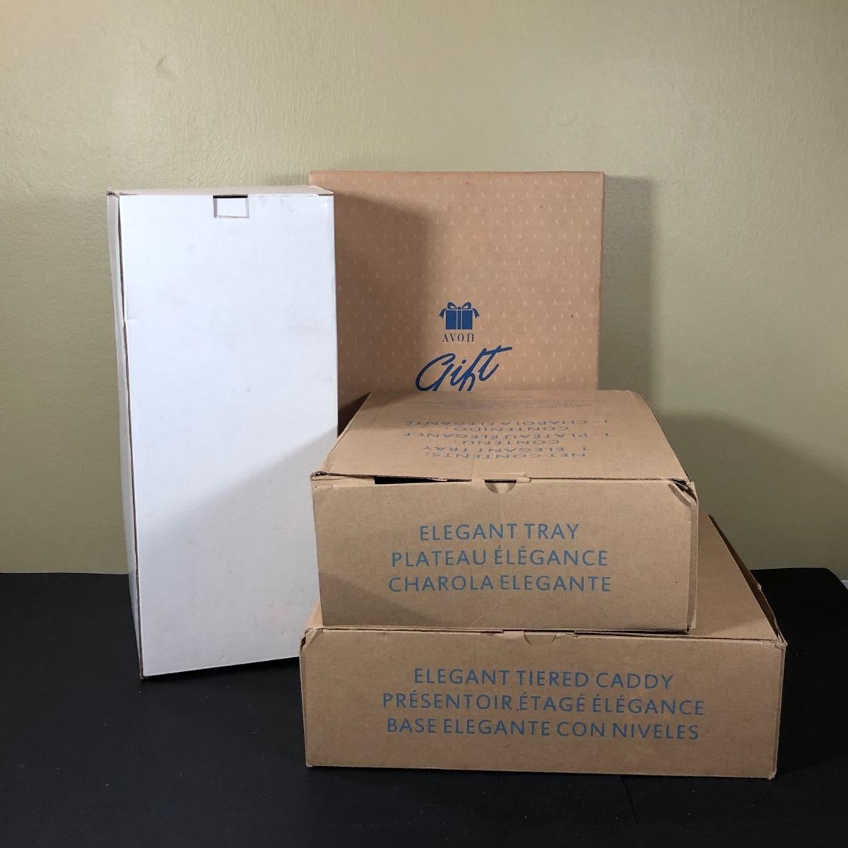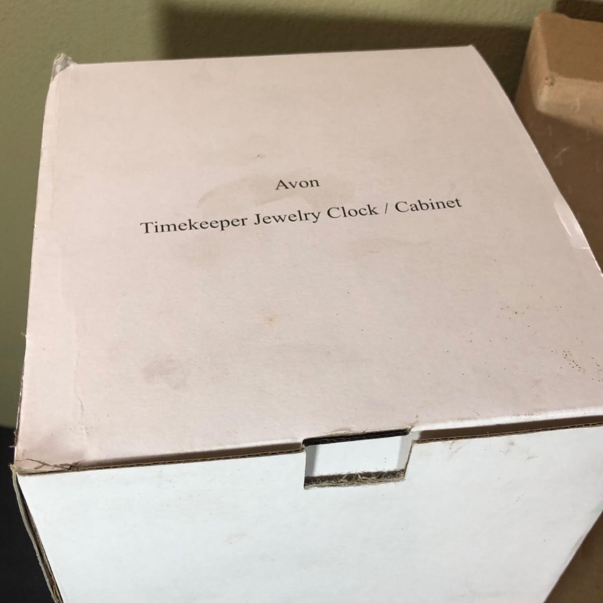 LOT 63L: Avon Vanity Gift Collection - Elegant Tray & Tiered Caddy, 1996 Timekeeper Jewelry Clock/Cabinet & Vanity Tray Mirror