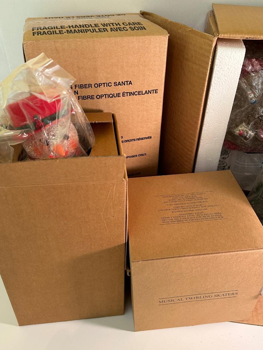 Fiber optic Santa and tree, light up snowman and musical twirling skaters.