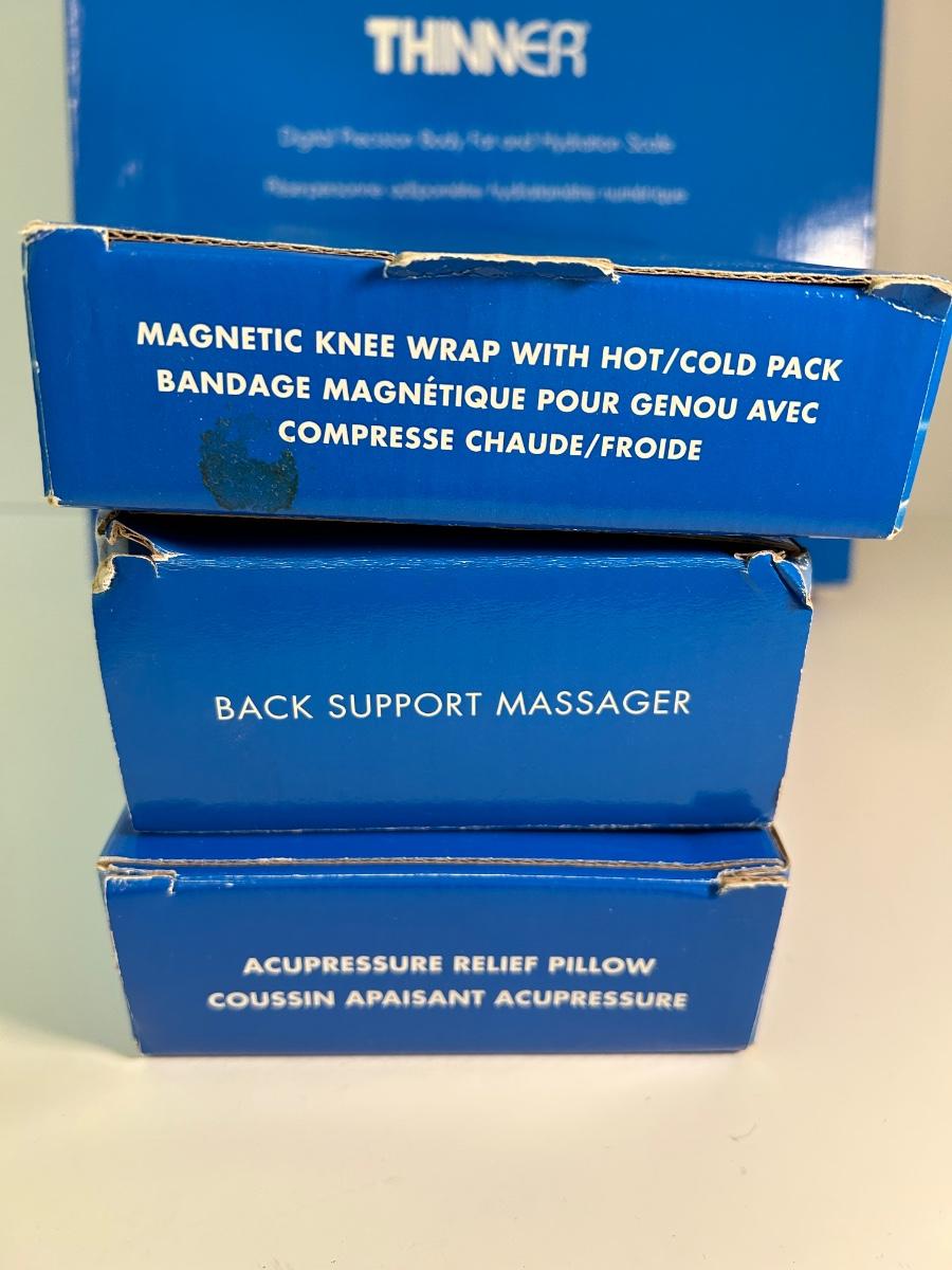 Ankle weights, wrist strengthener, dumbbells, scales, resistance bands, massager, knee wrap and much more.