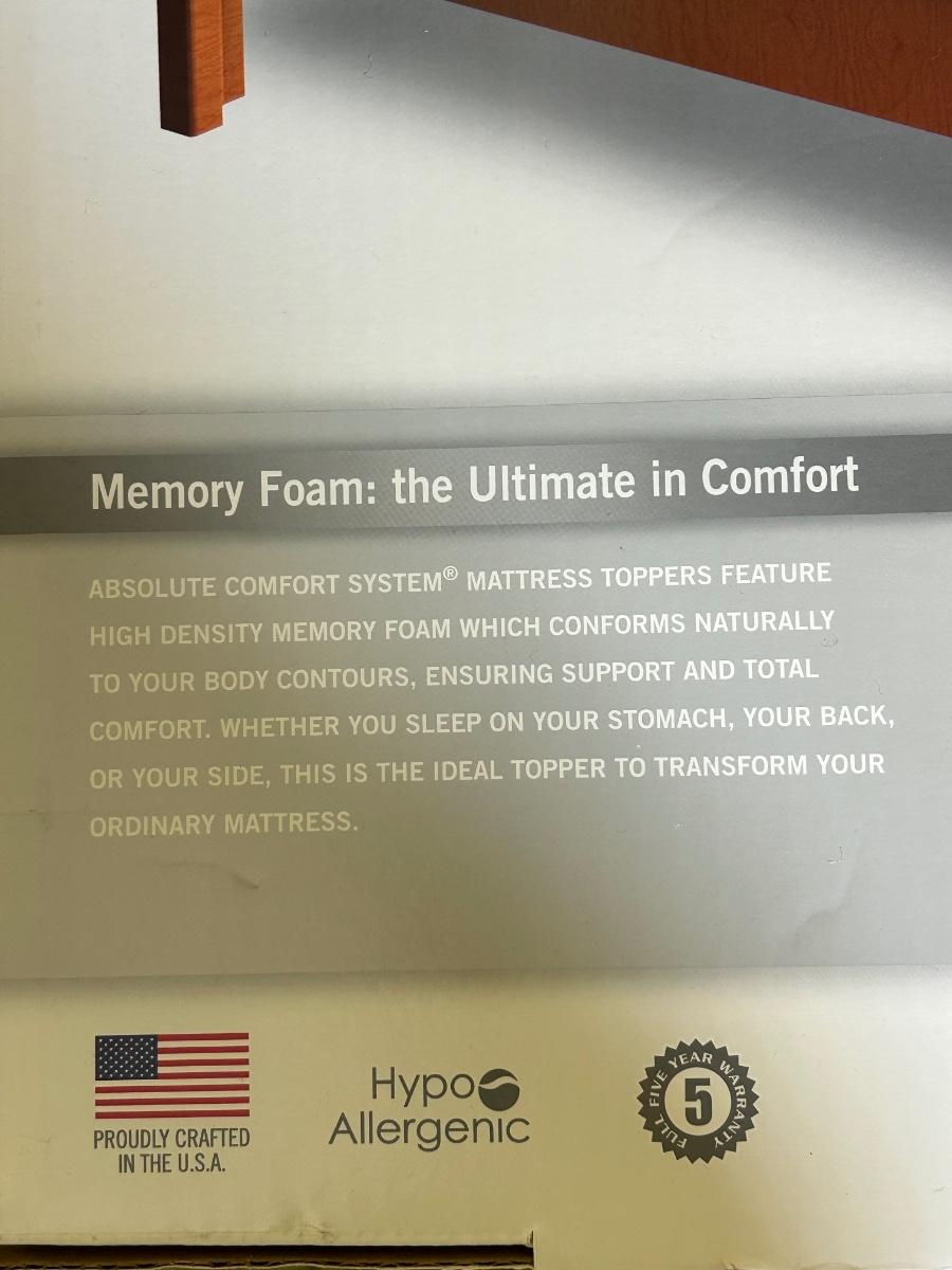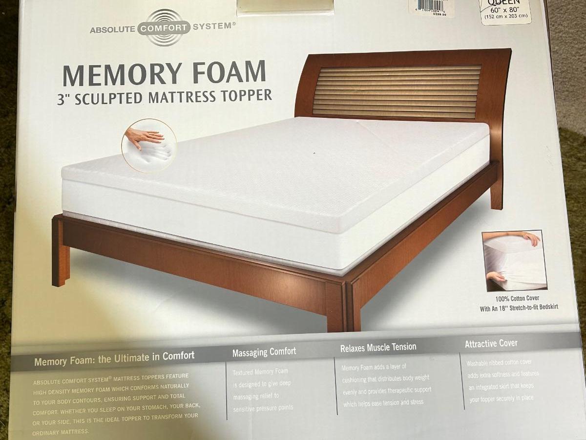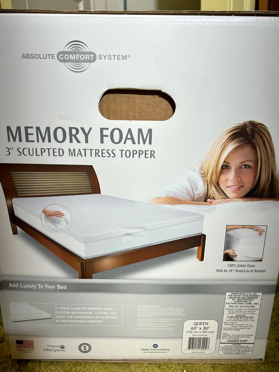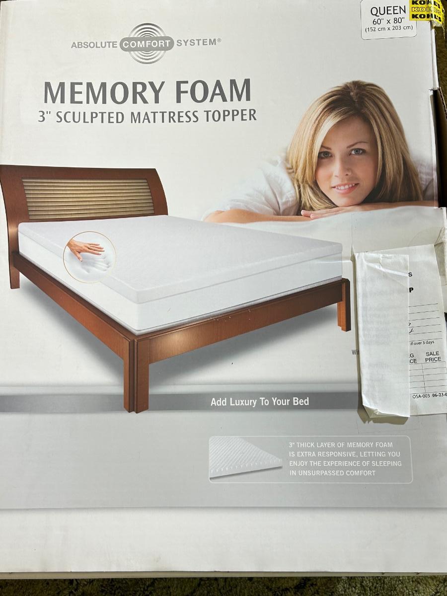 Mattress Topper in new in Unopened box. For Queen size beds. 3 inch memory foam.
