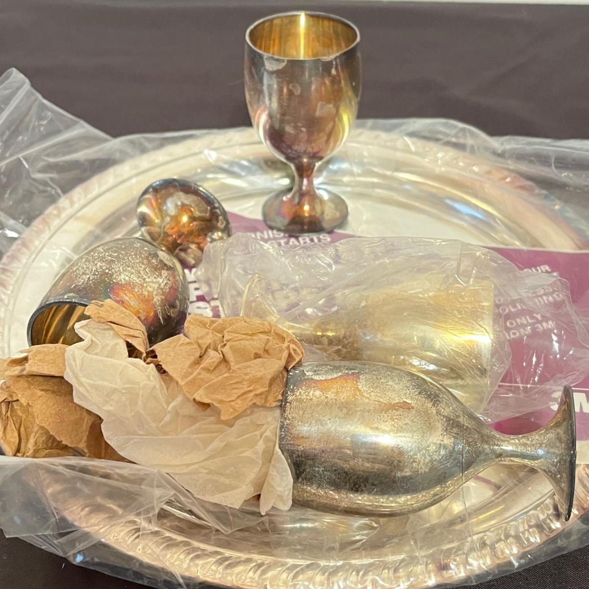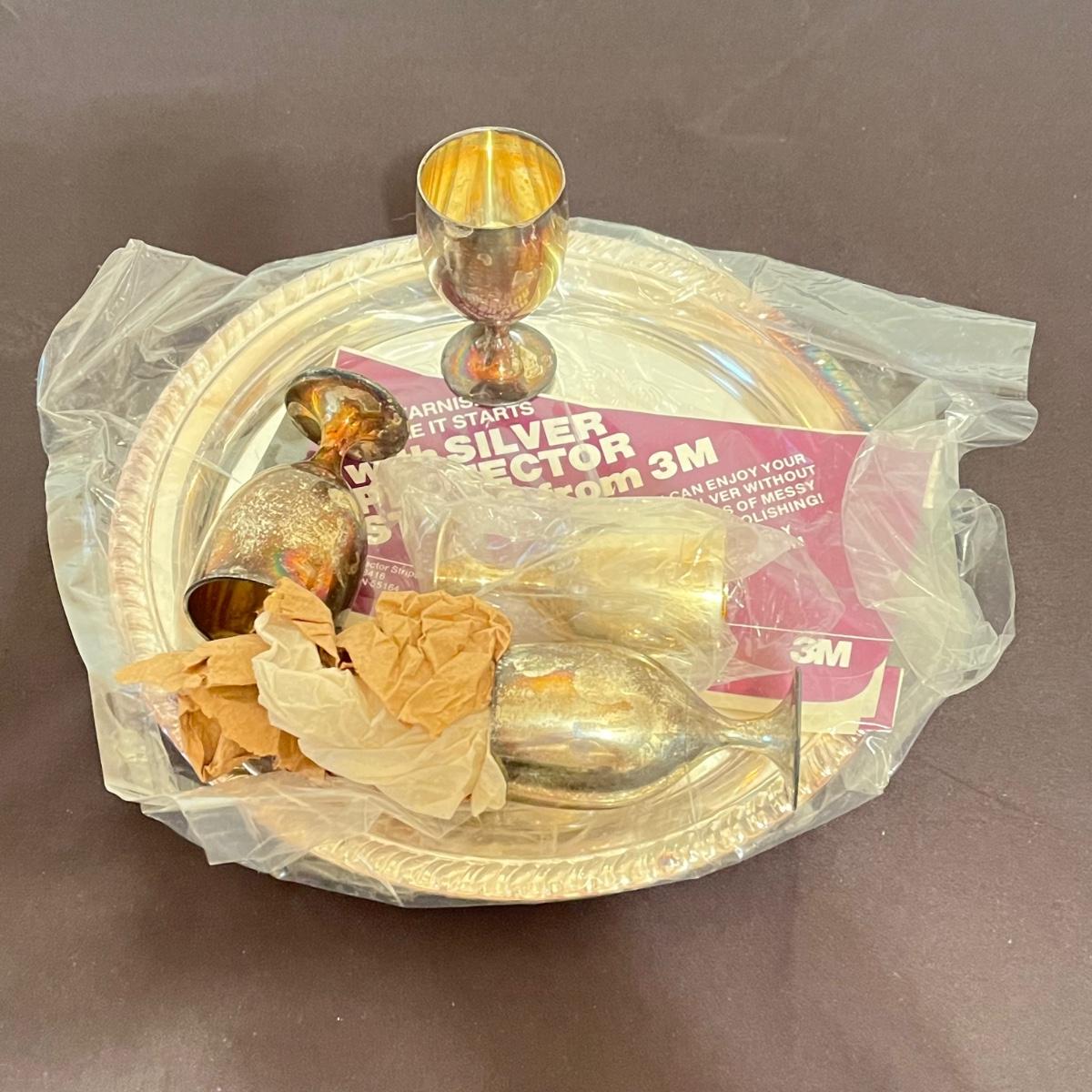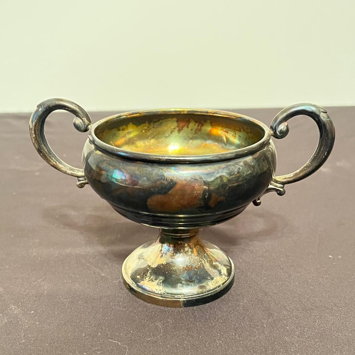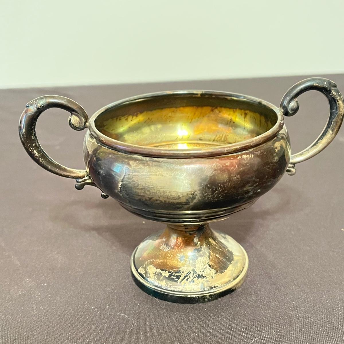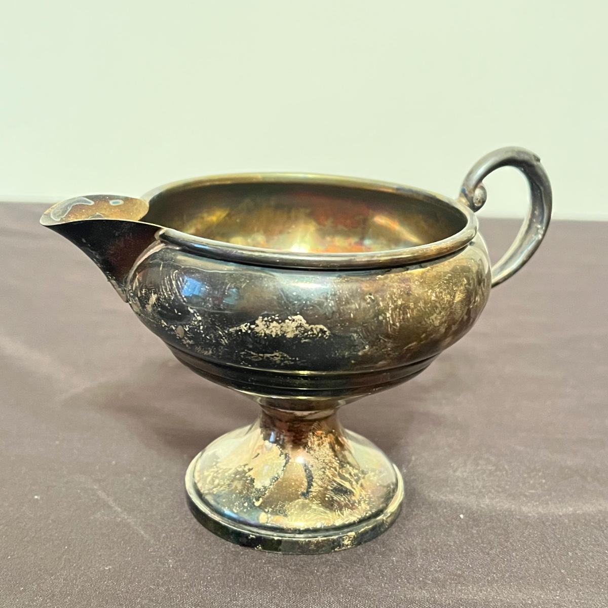 LOT 161D: Weighted Sterling Silver Cream & Sugar Set + Silver Plated Cordial Set and Dinner Bell