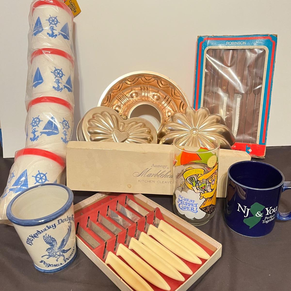 LOT 162D: Vintage Kitchen Supplies - Knife Sets, Mugs & More