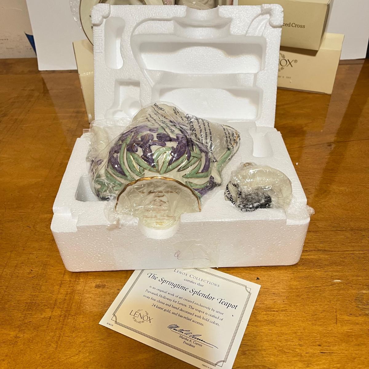 LOT 168D: Lenox Springtime Splendor Teapot, Frames, Cross, Vase in Original Boxes