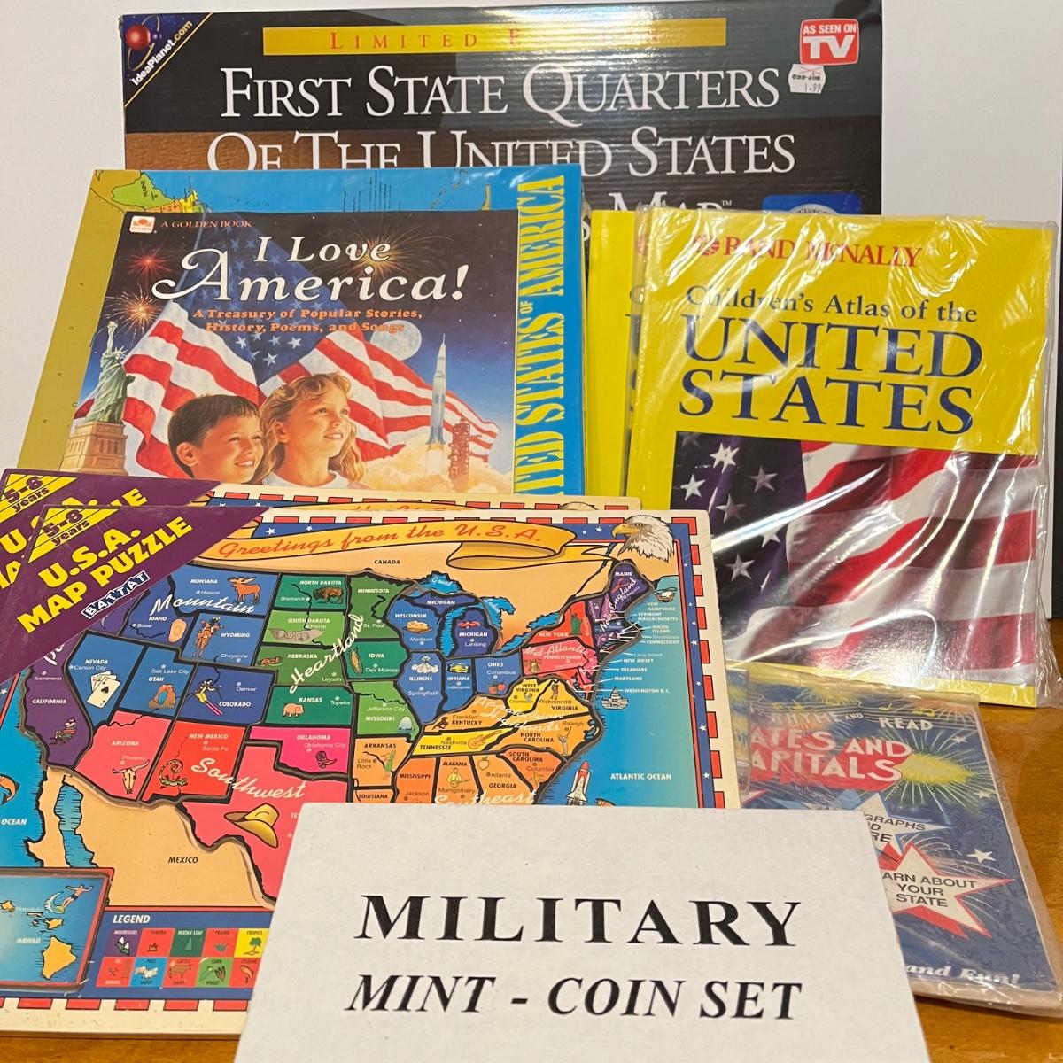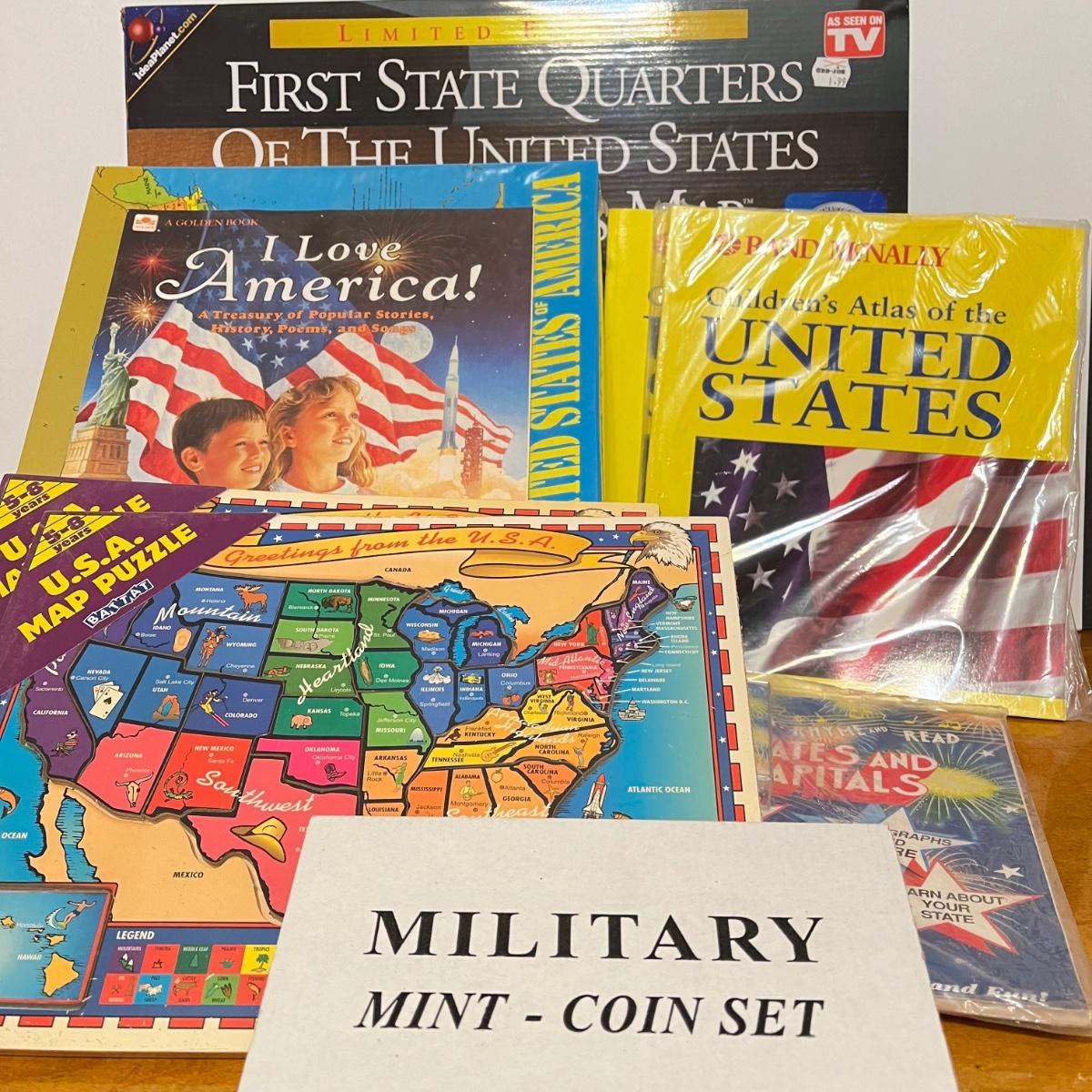 LOT 170D: All Things American for Kids - State Quarter Coin Map, Puzzles, Maps and More