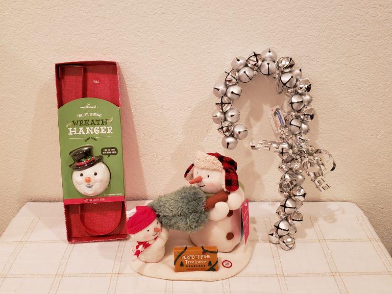 Lot 965: NEW Jingle Bells Candy Cane, Animated Snowman Scene and Animated Snowman Wreath Hanger