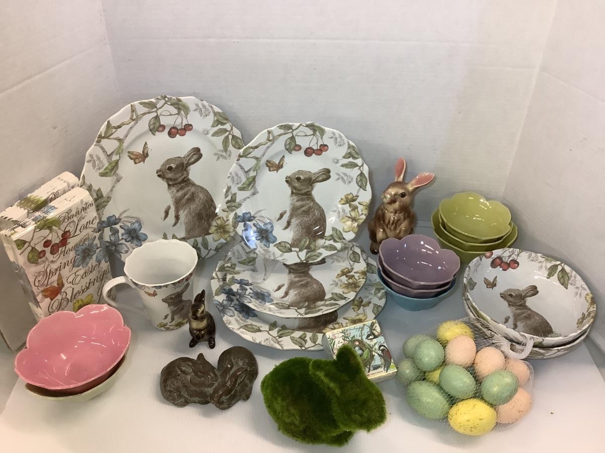 Lot 965. Sweet Porcelain Easter Bunny Plate Set ( Pier 1 ), Lotus Bowls