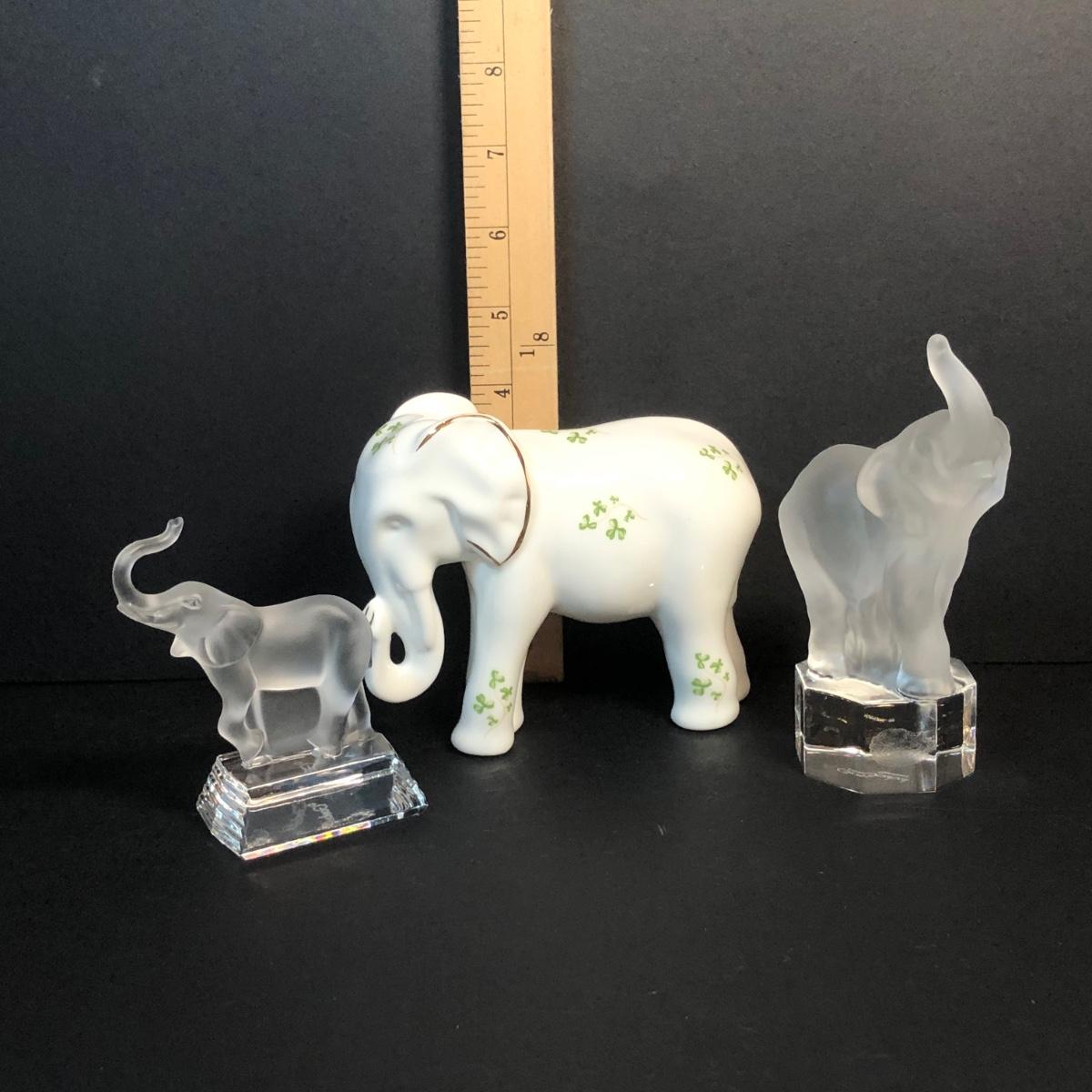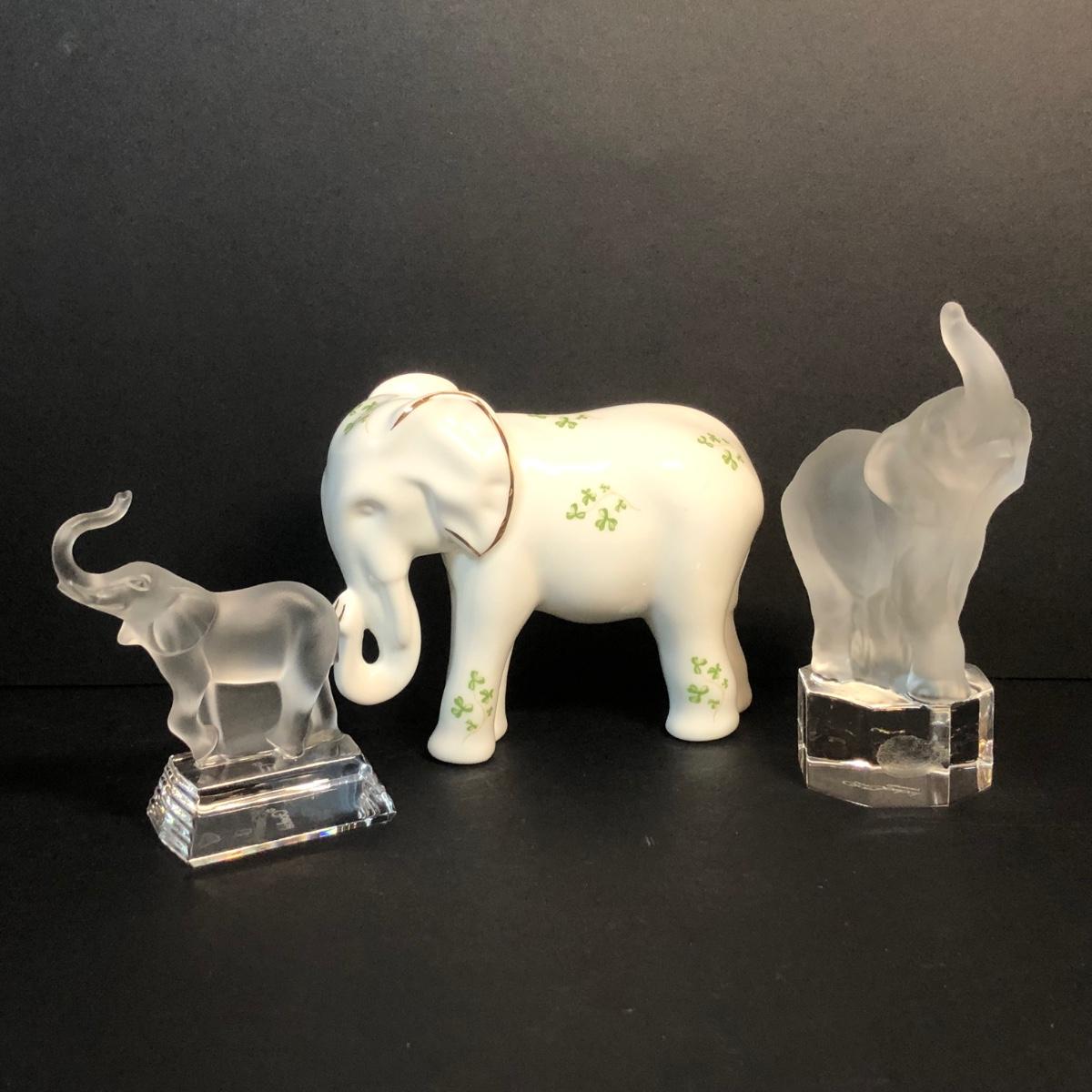 LOT 25M: Royal Tara Porcelain Elephant Made in Ireland & Goebel Crystal Elephants
