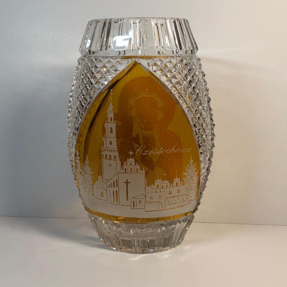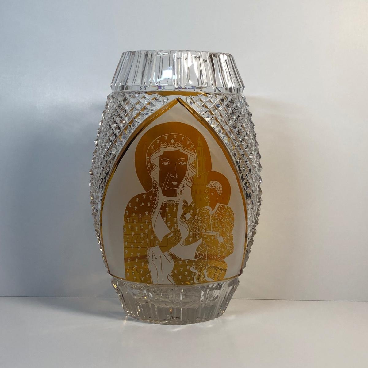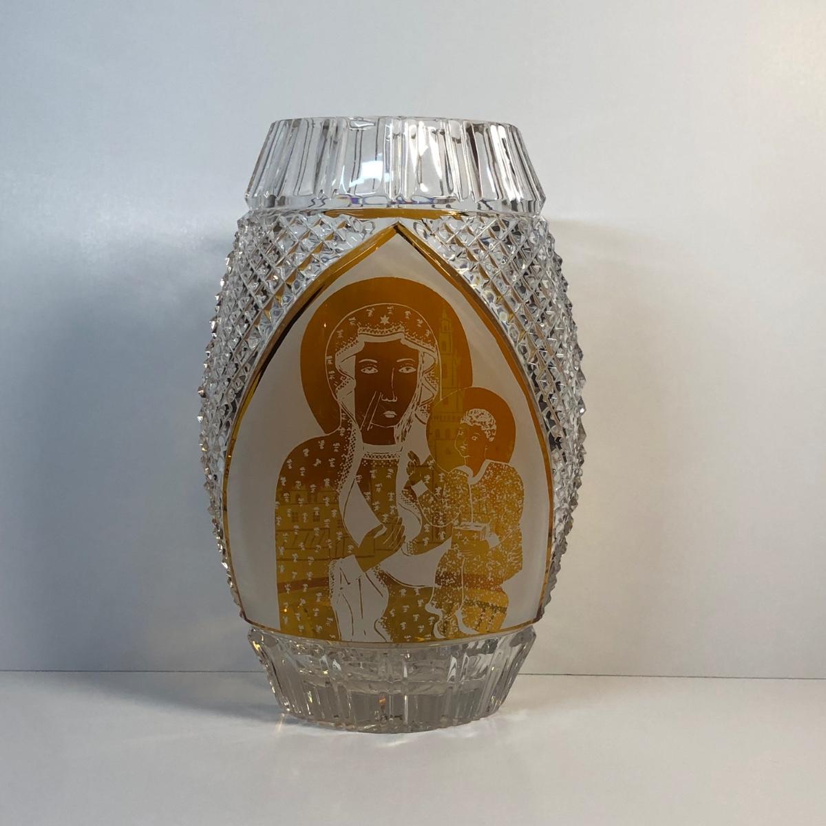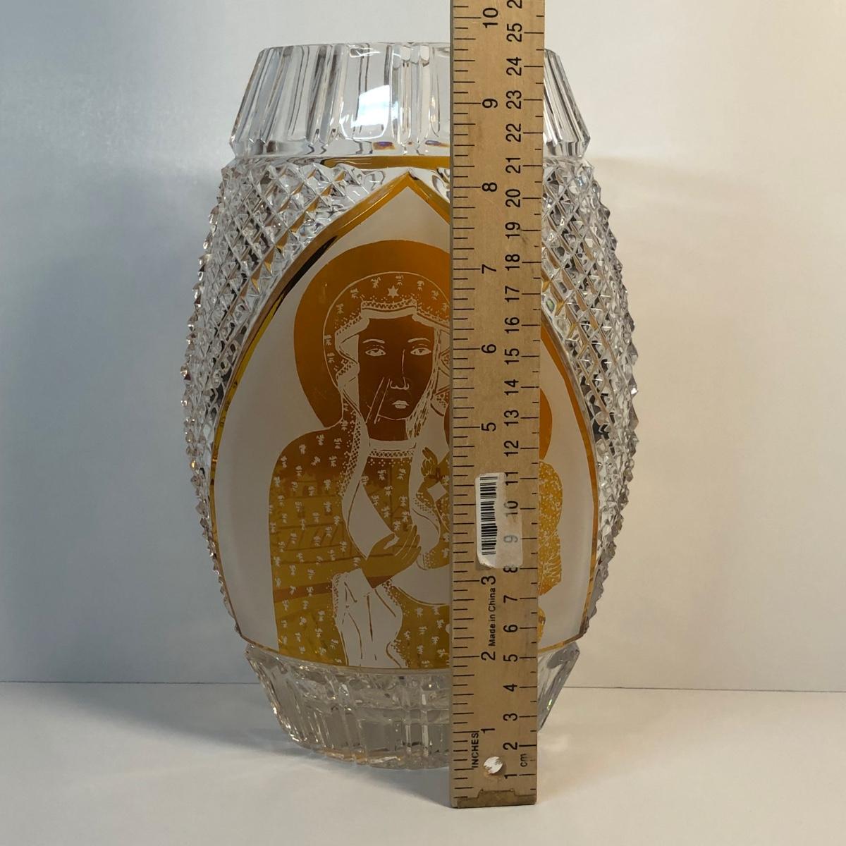 LOT 29M: Vintage Cut to Clear Crystal Vase Our Lady of Czestochowa Poland
