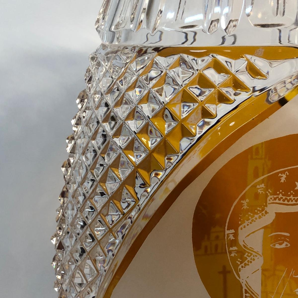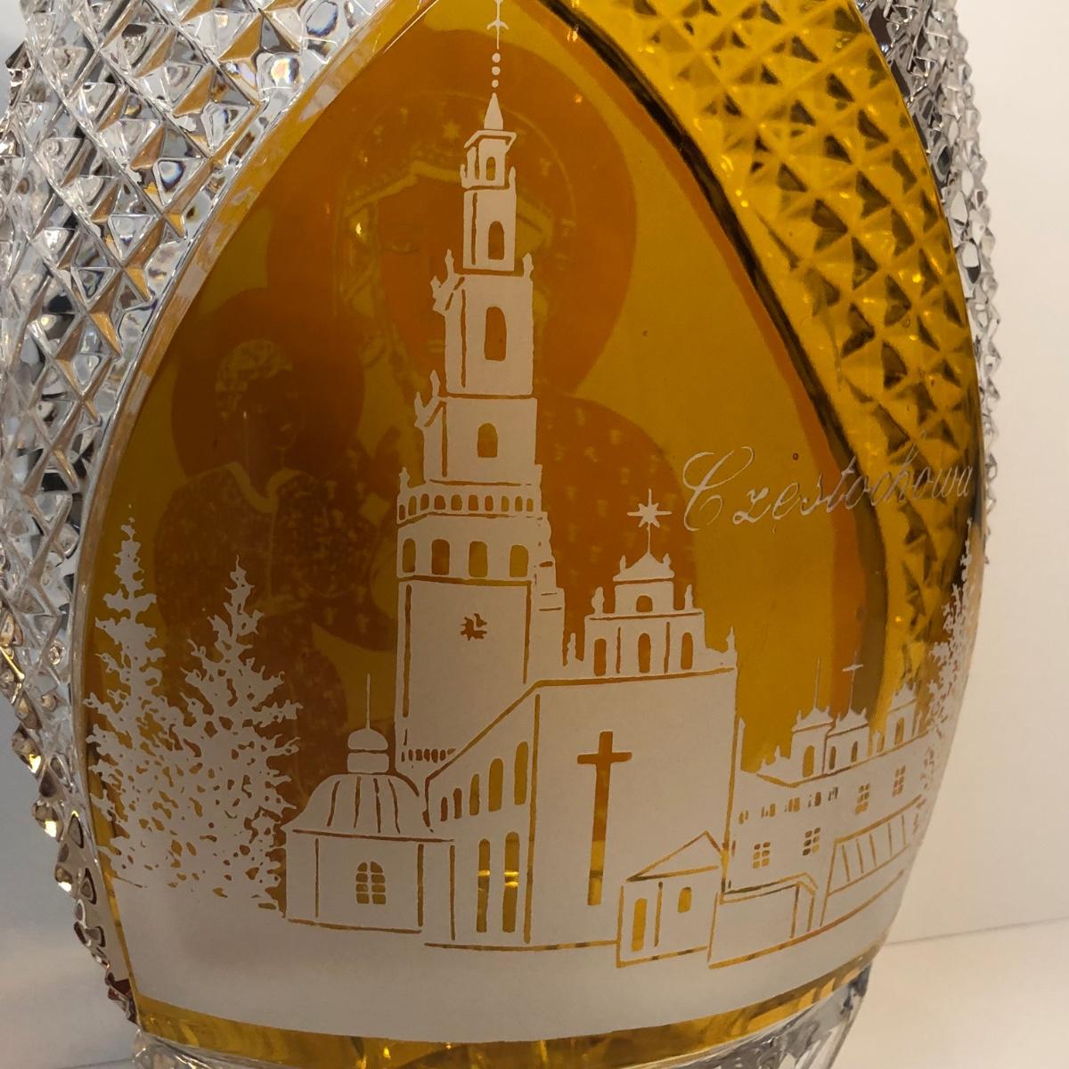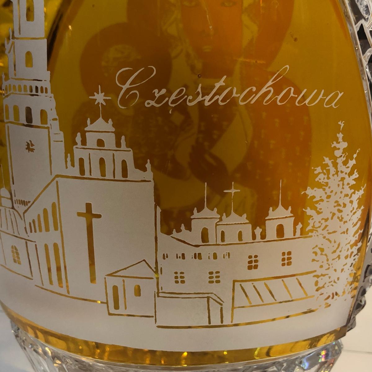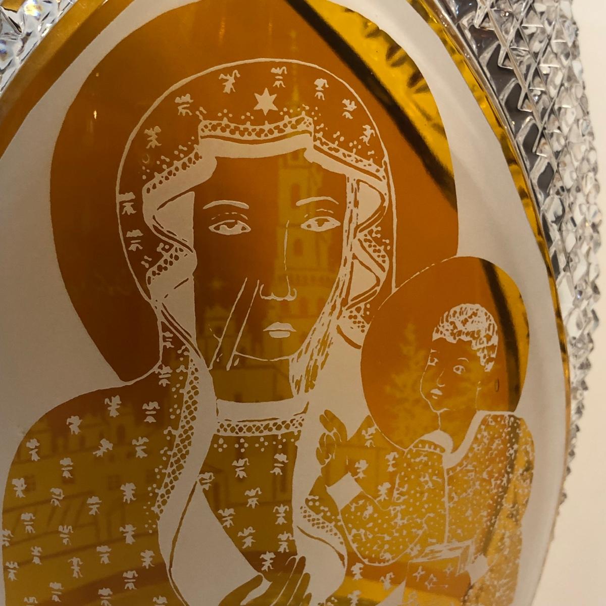 LOT 29M: Vintage Cut to Clear Crystal Vase Our Lady of Czestochowa Poland