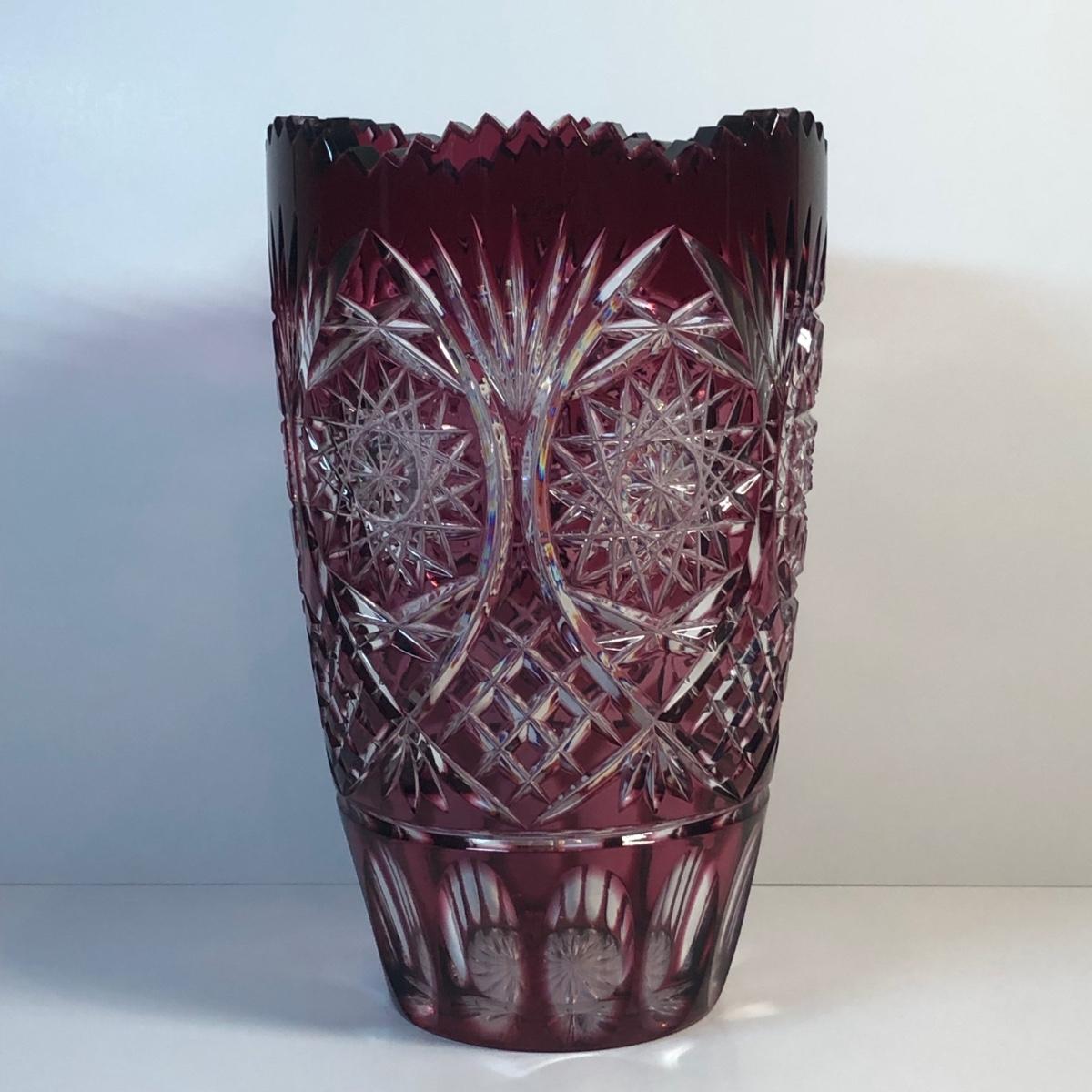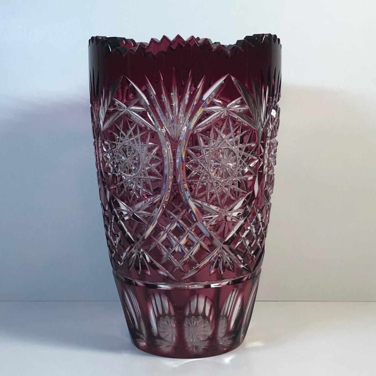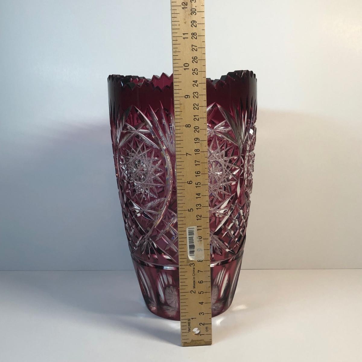 LOT 31M: Royal Hapsburg 24% Lead Crystal Cranberry Cut to Clear Vase (23/500)
