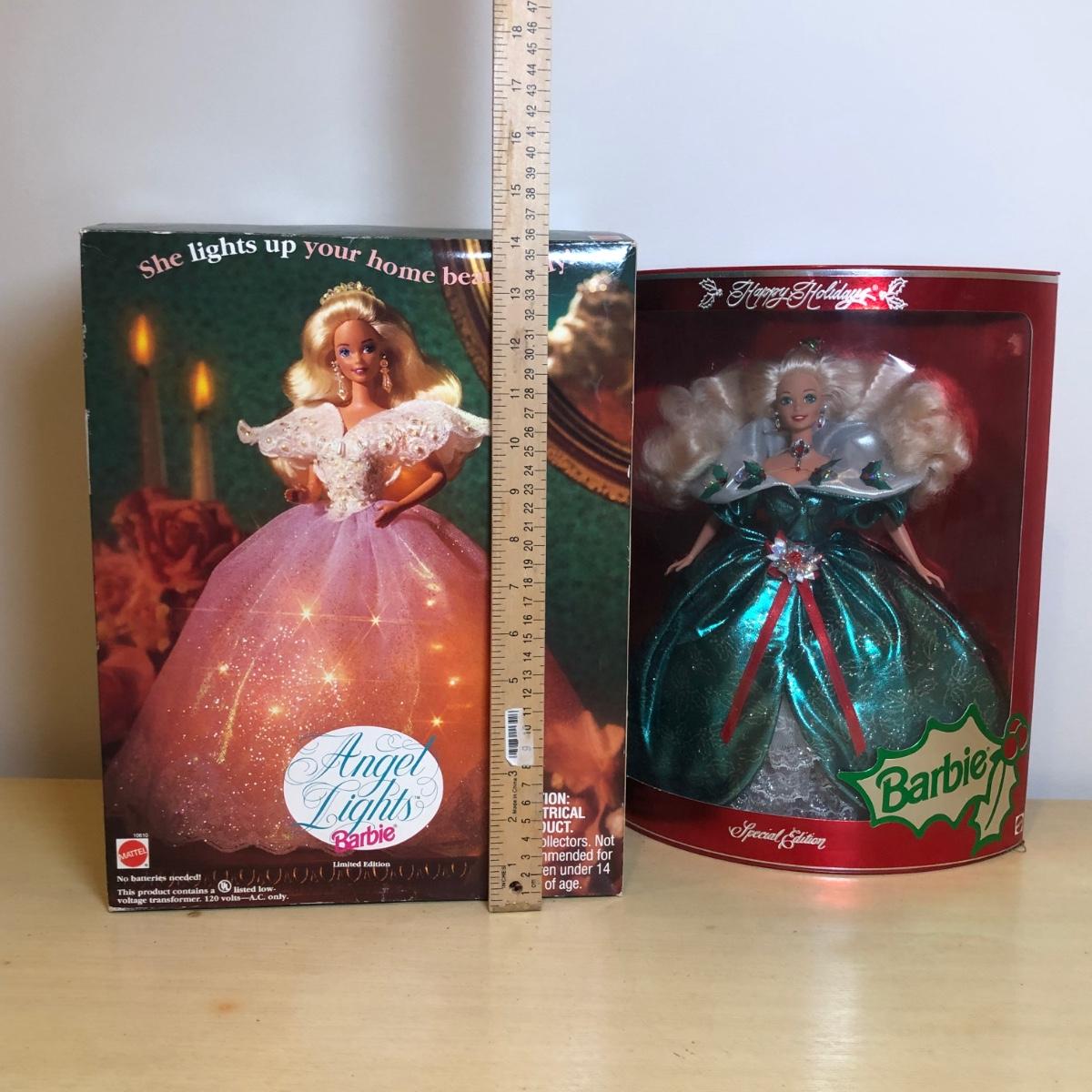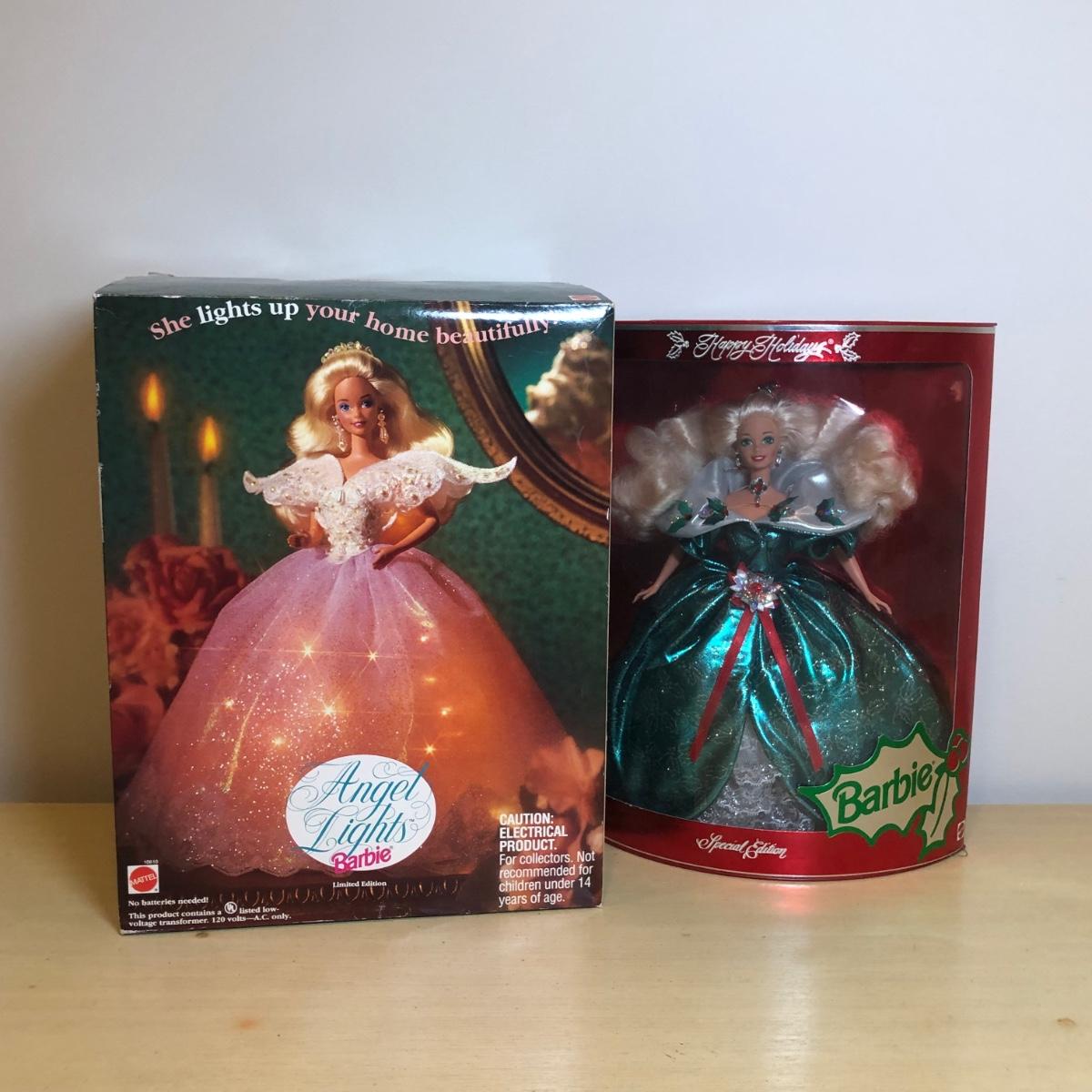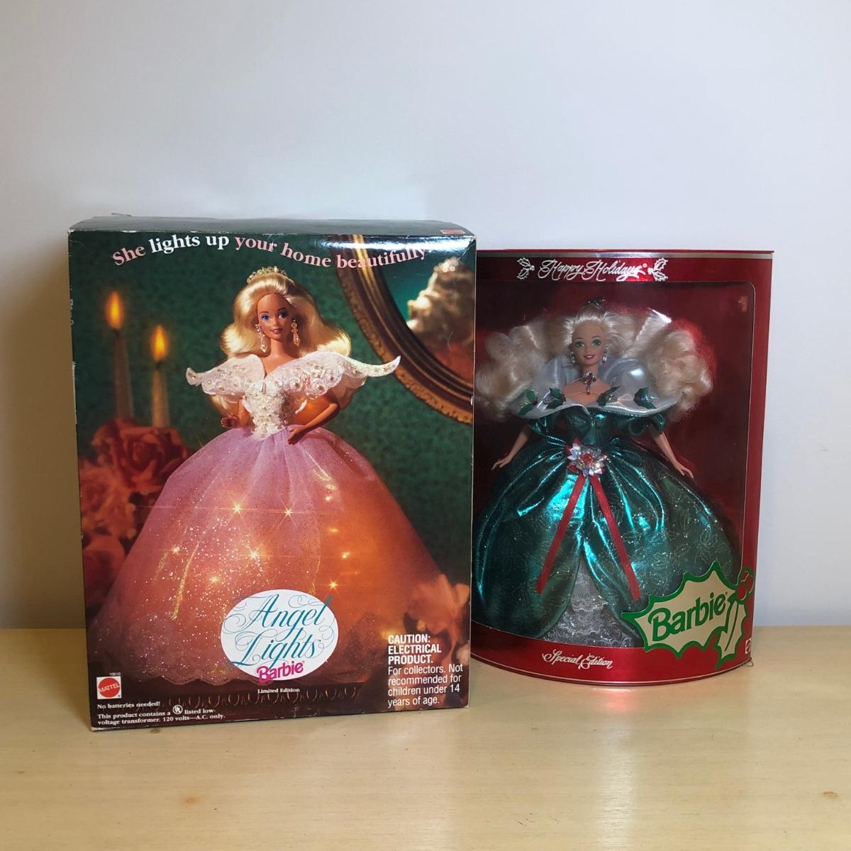 LOT 52M: 1993 Angel Lights Barbie Doll/Tree Topper w/ Original Box & NIB 1995 Special Edition Happy Holidays Barbie