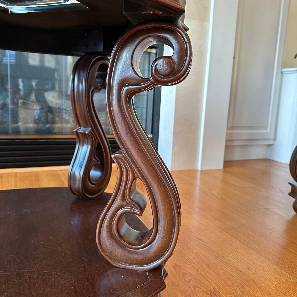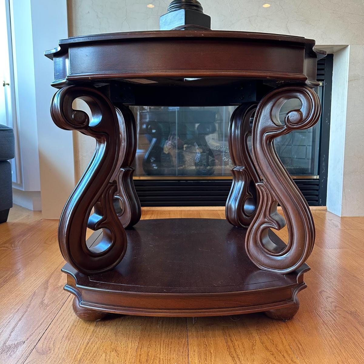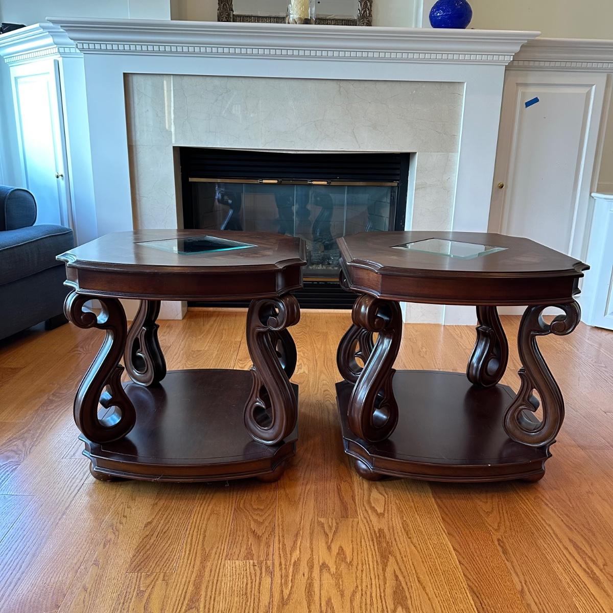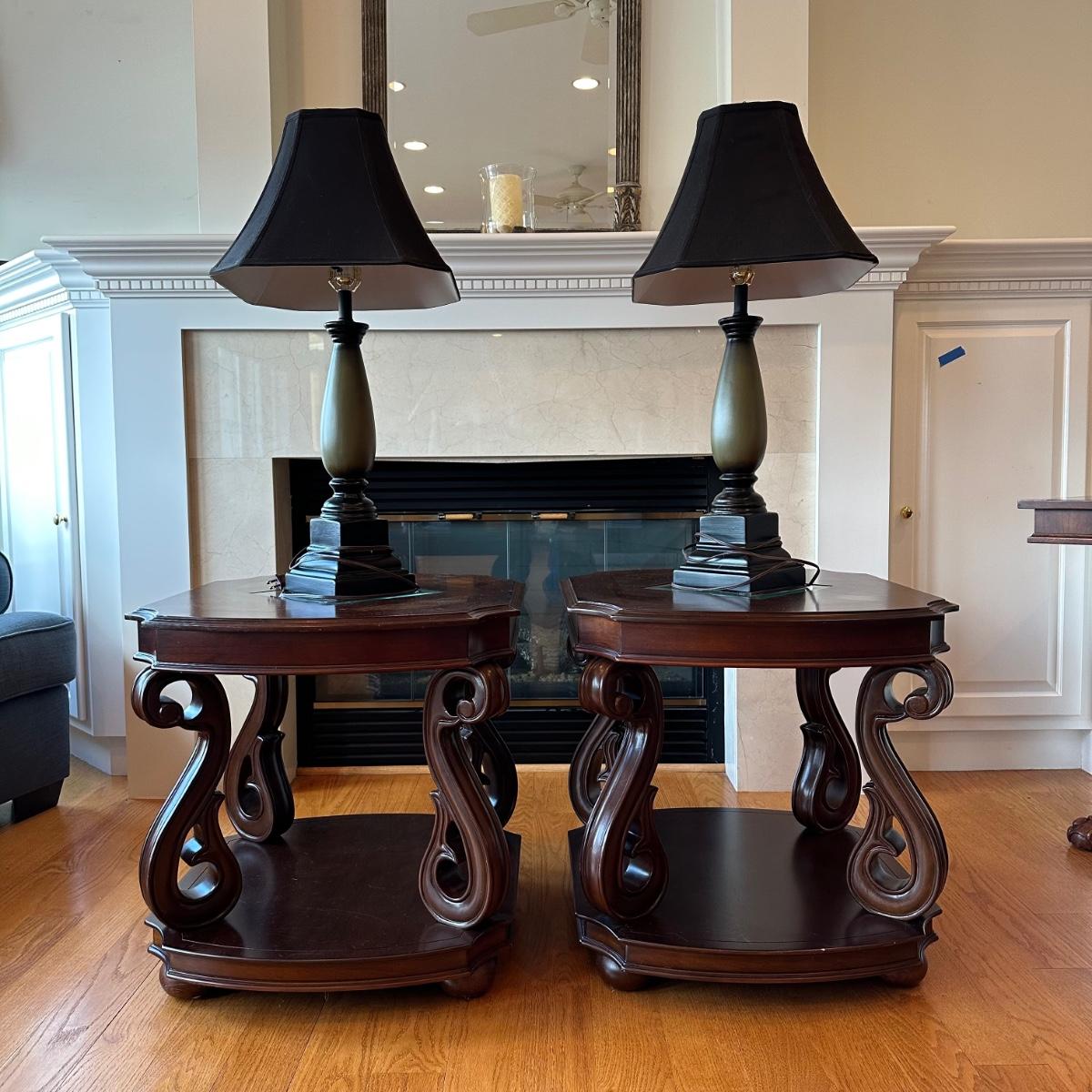 2 tables 2 lamps. Tables are 24x24x26, lamps are 31x15 - Please see all pictures as they are the best representation of the items. The pictures show condition, measurements if taken, and what is included in the lot. Due to the large amount that we photograph and the time frame, we are not always able to take measurements. All items unless noted, are pre-owned and have been used. If you purchased furniture, you must bring help. We do not allow one person to carry large furniture out on their own. Bring help, tools and a truck for the safety of our client’s homes, and your personal safety. Any damages that result to the property including walls, and floors due to moving of the furniture will be charged to the buyer. Company policy. Thank you.