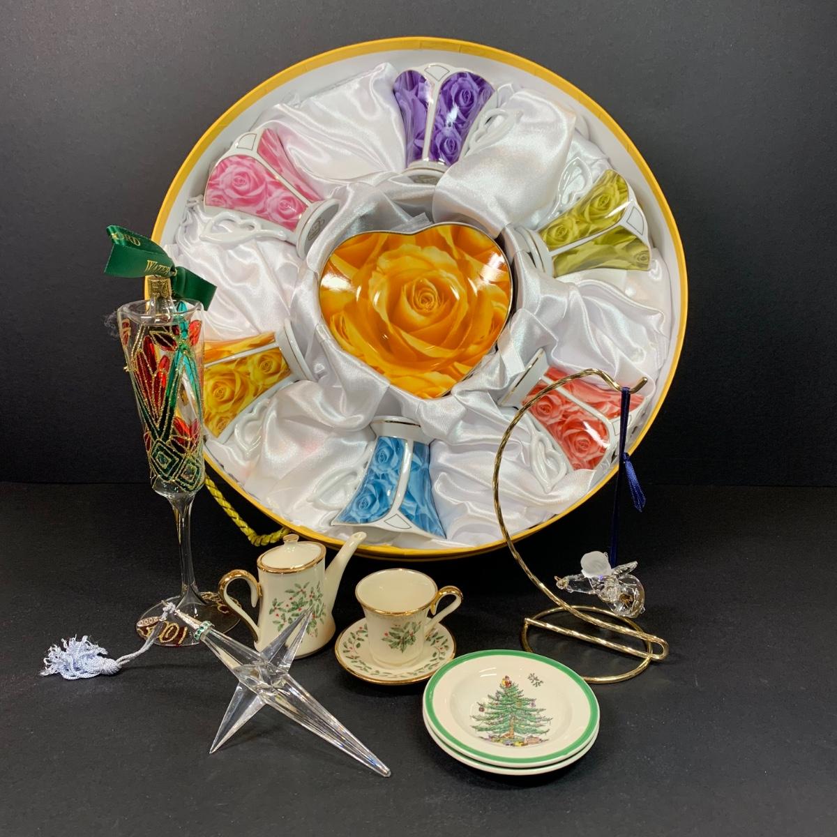LOT 210R: Floral Tea Set, Waterford Ornament, Lenox Ornaments, Spode & Crystal Angel Ornament