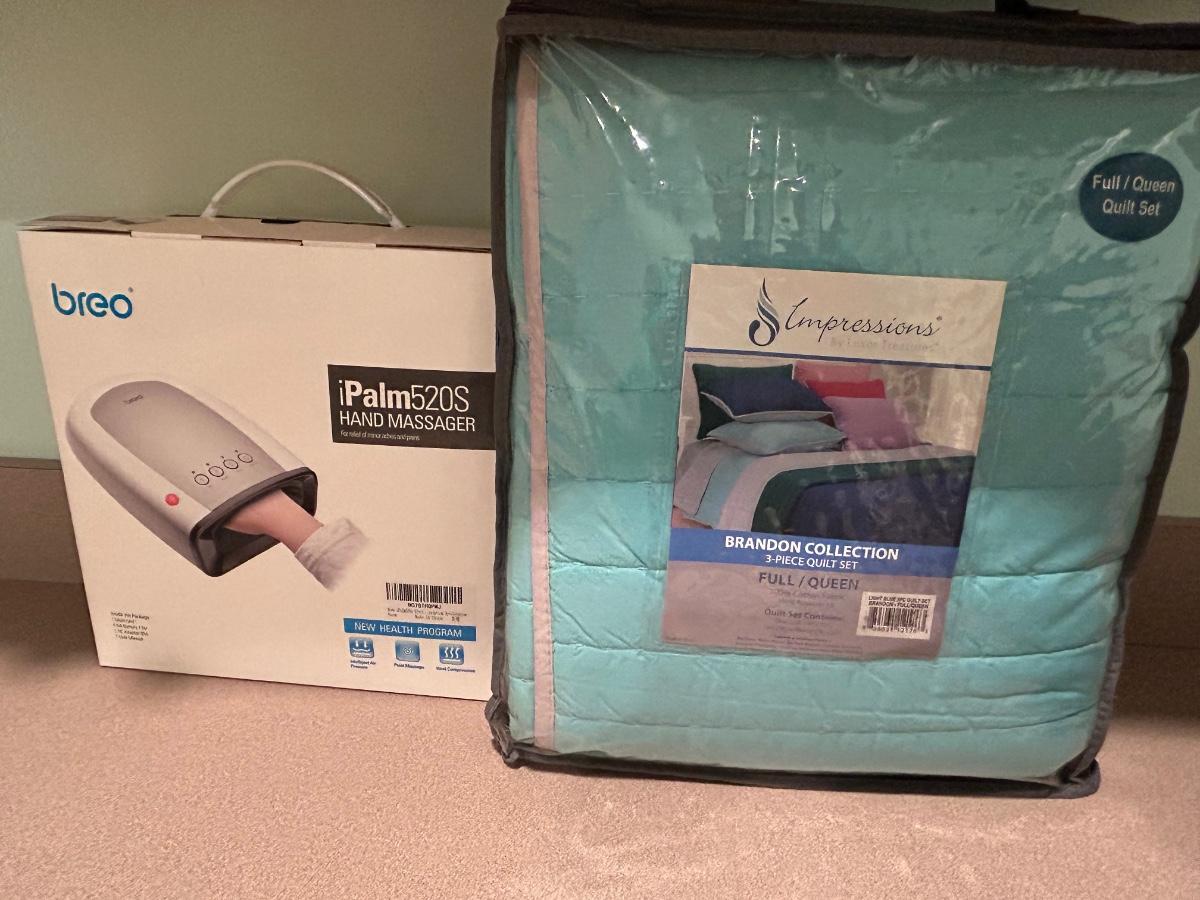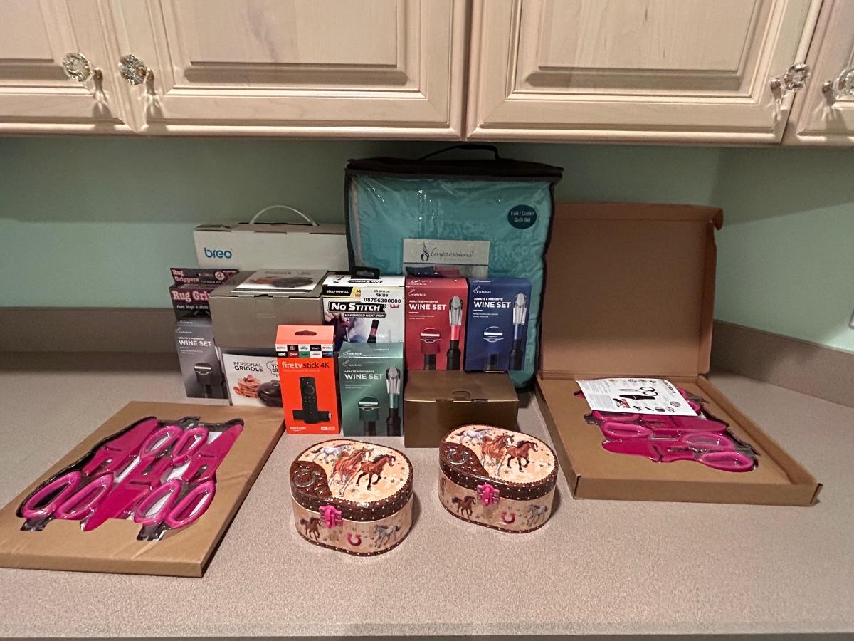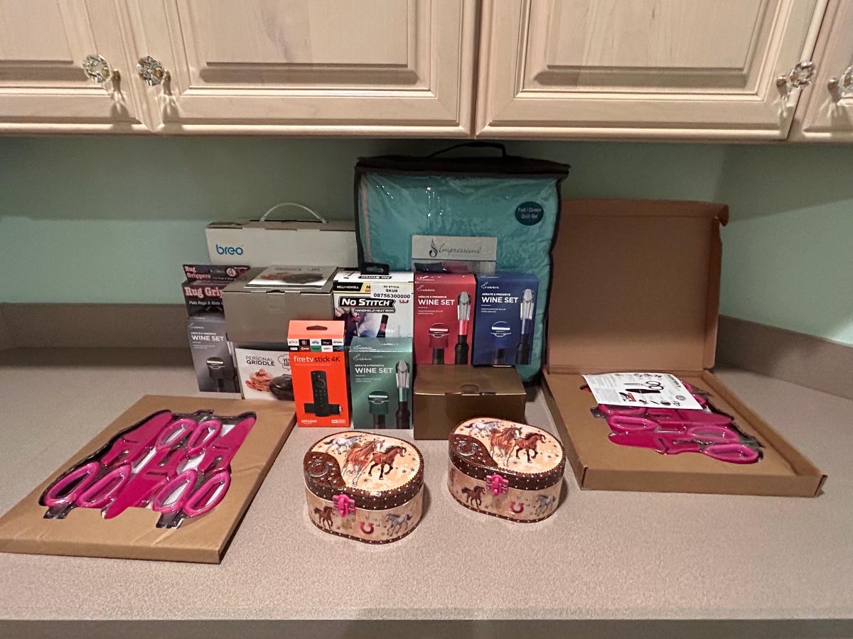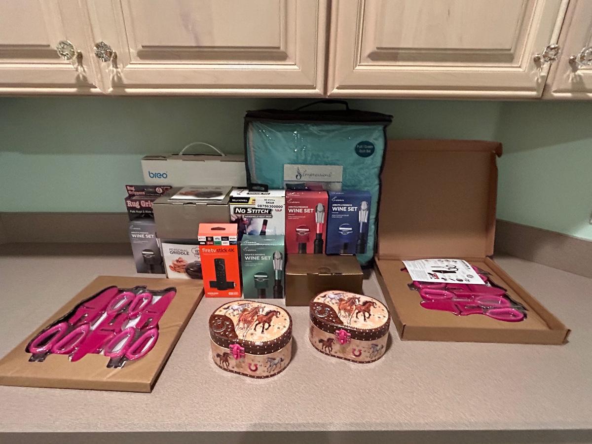 Amazon Firestick, Breo hand massager, Impressions comforter, personal griddle, Rabbit wine stop and much more. Items are unused, in original packaging and ready for gift giving.