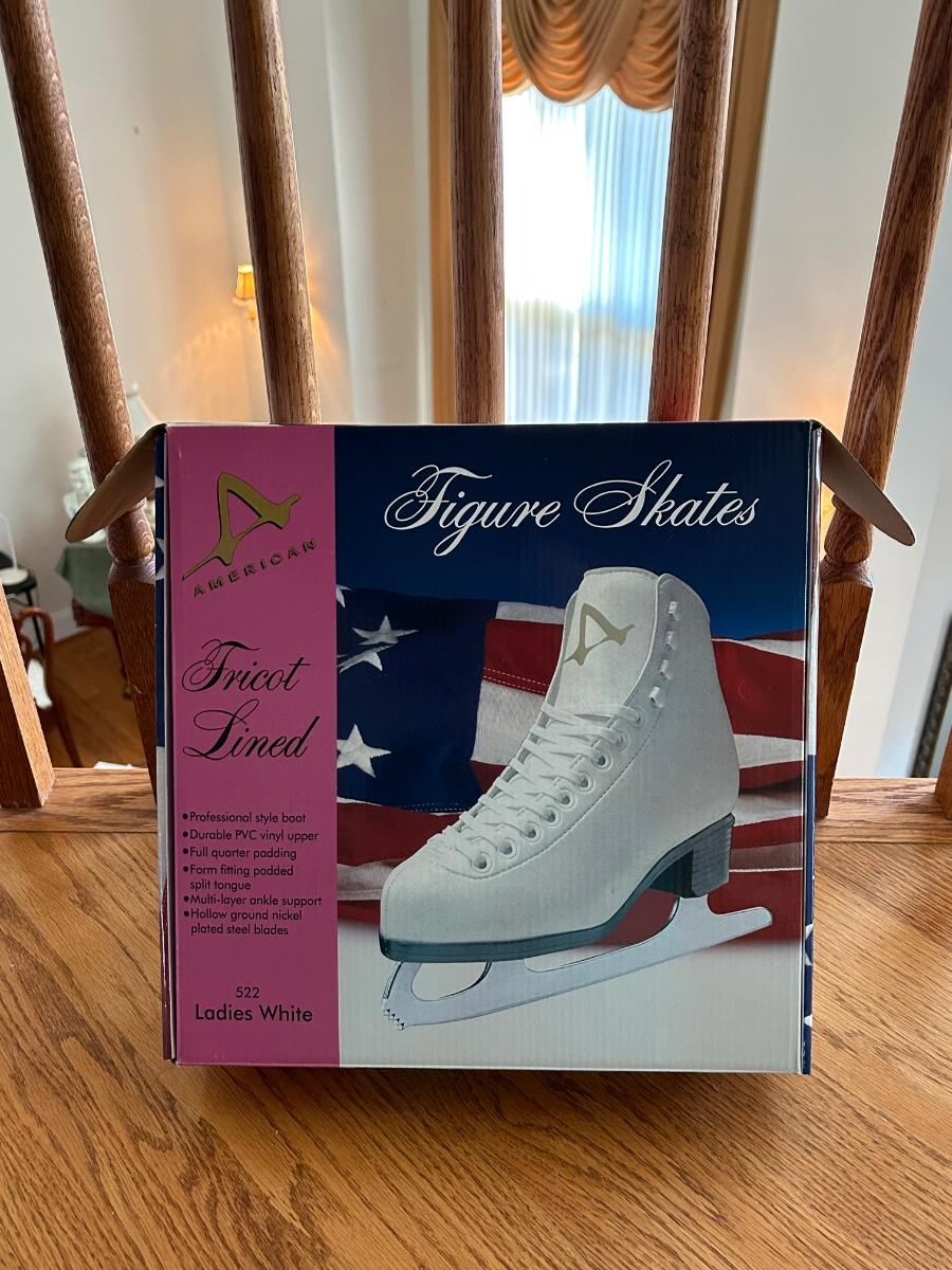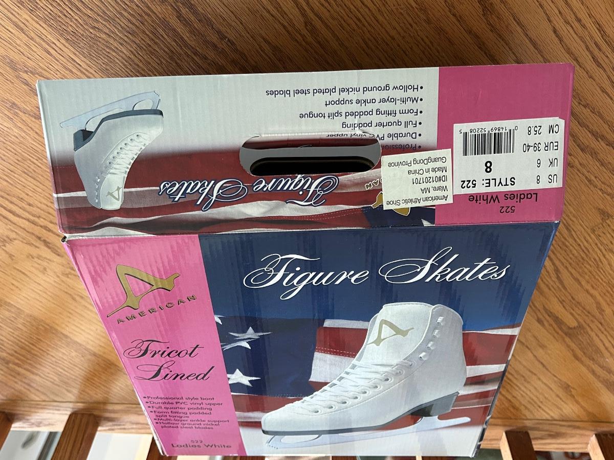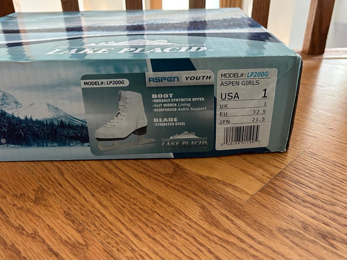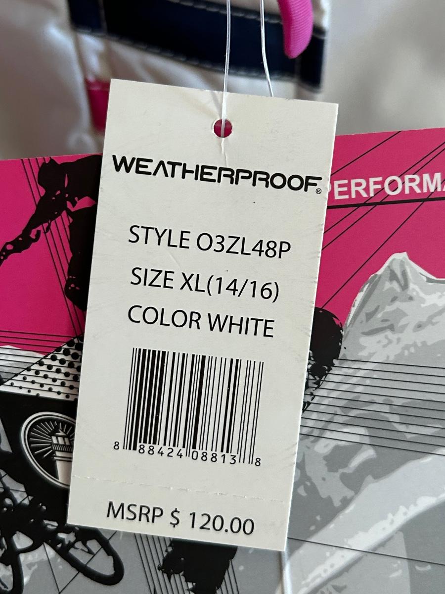 Girls size 14/16 Weatherproof coat, Two pair of snow pants girls large, Aspen Girls Ice Skates size 1, American figure skates size 8. New in package hats and gloves.