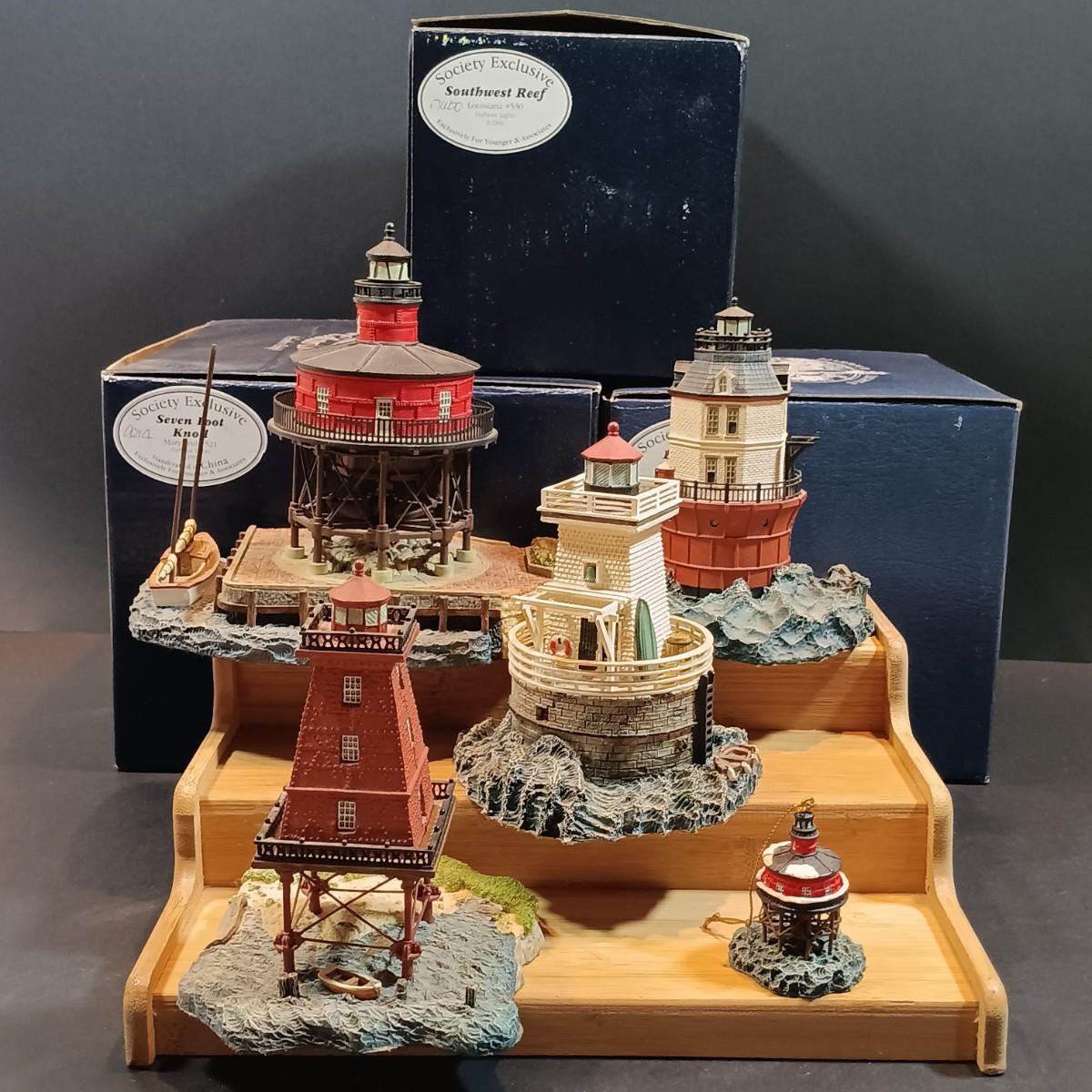 LOT 3L: Set of 5 Harbour Lights Collectors Society Exclusive Miniature Lighthouse Collectibles