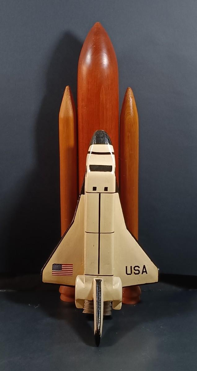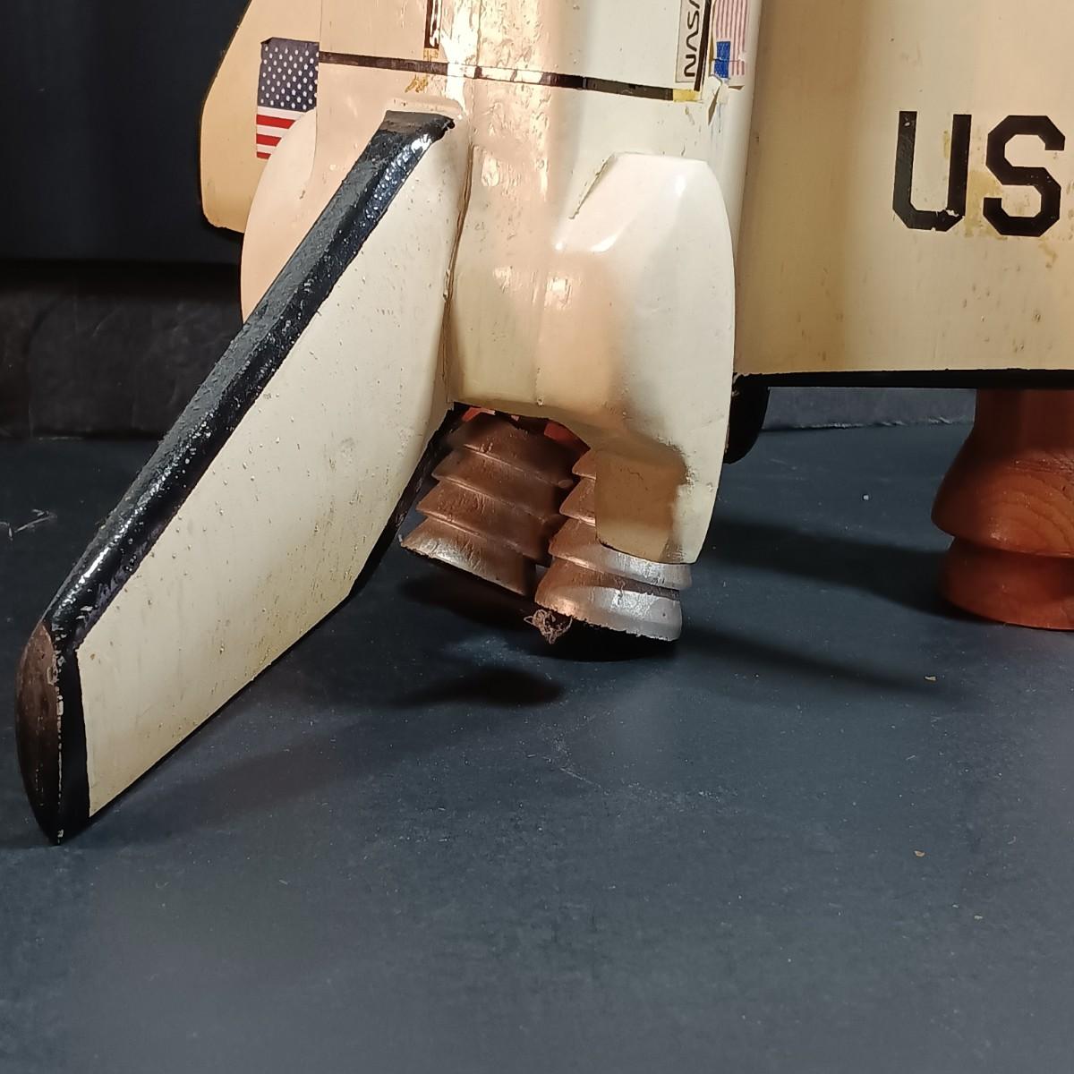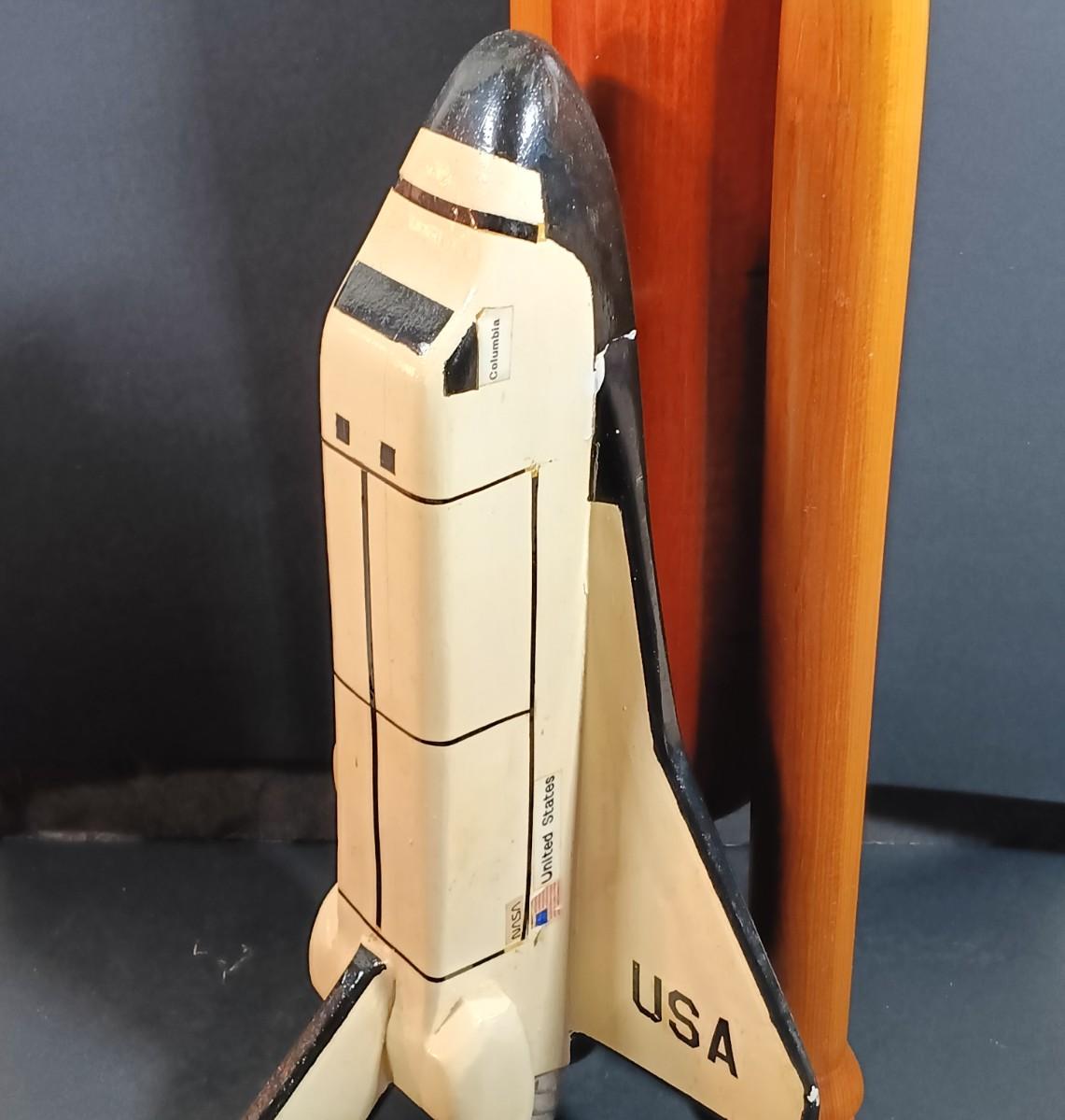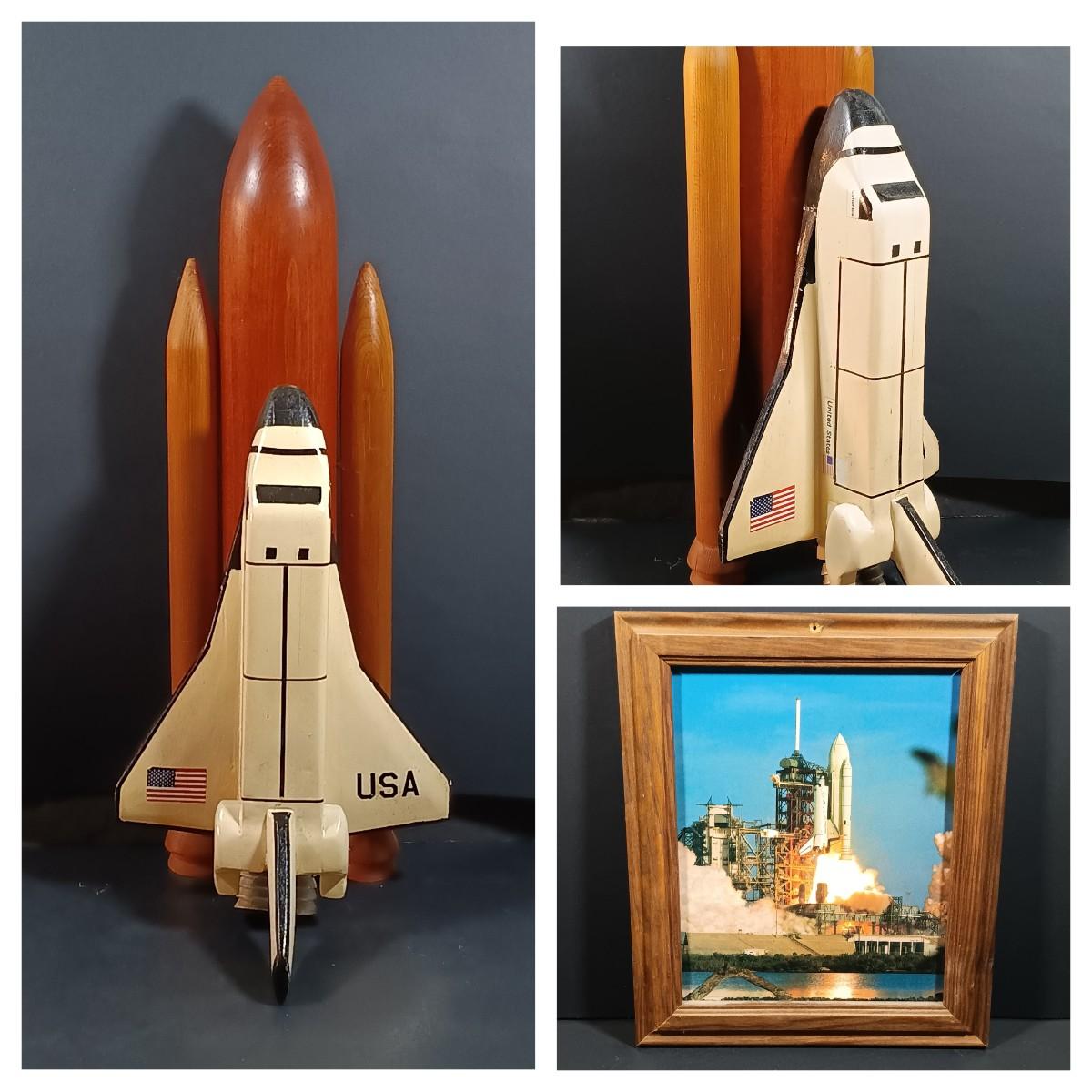 LOT 9L: Handmade 24" Wooden Space Shuttle w/ Framed Photo of the 1981 Columbia Launch
