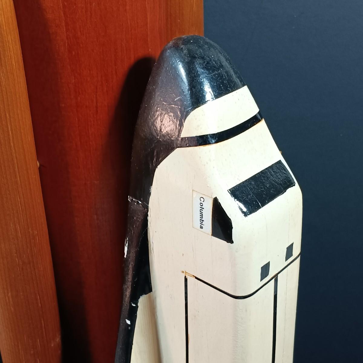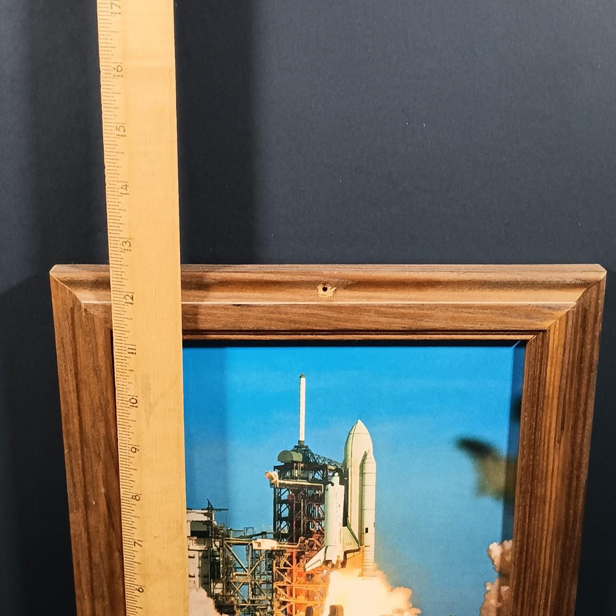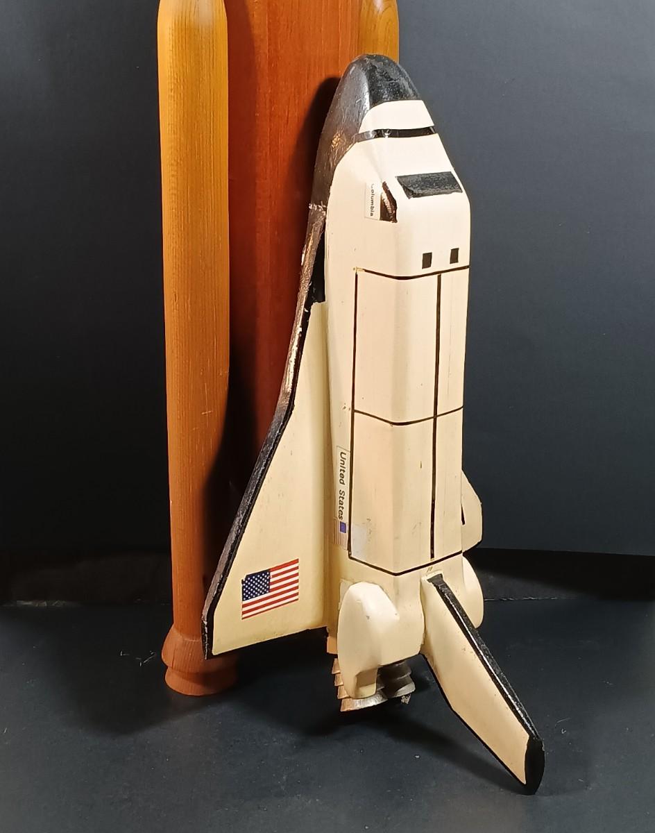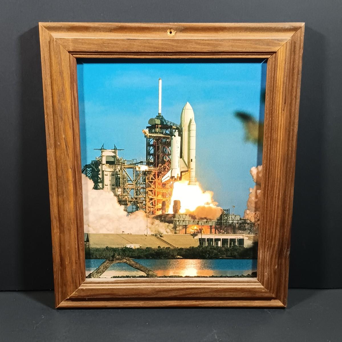LOT 9L: Handmade 24" Wooden Space Shuttle w/ Framed Photo of the 1981 Columbia Launch