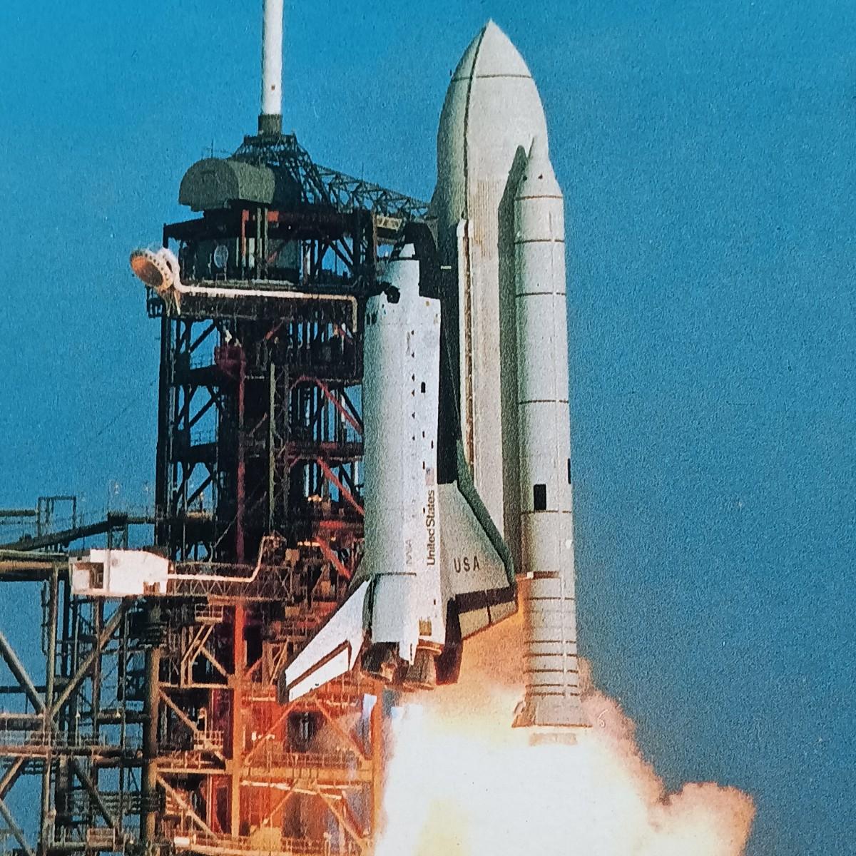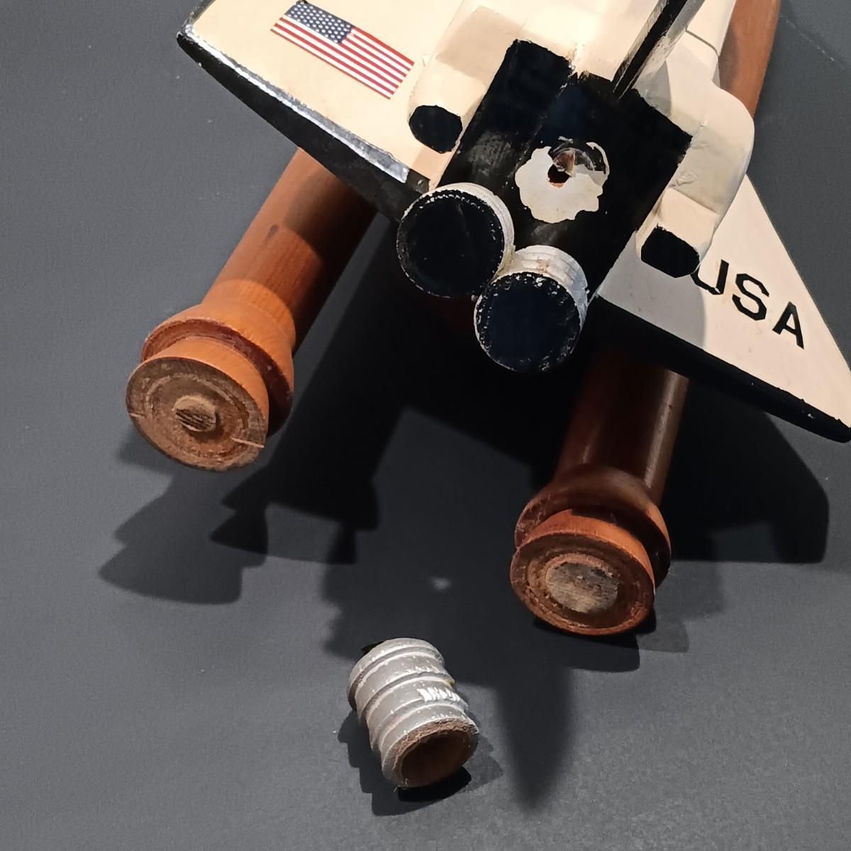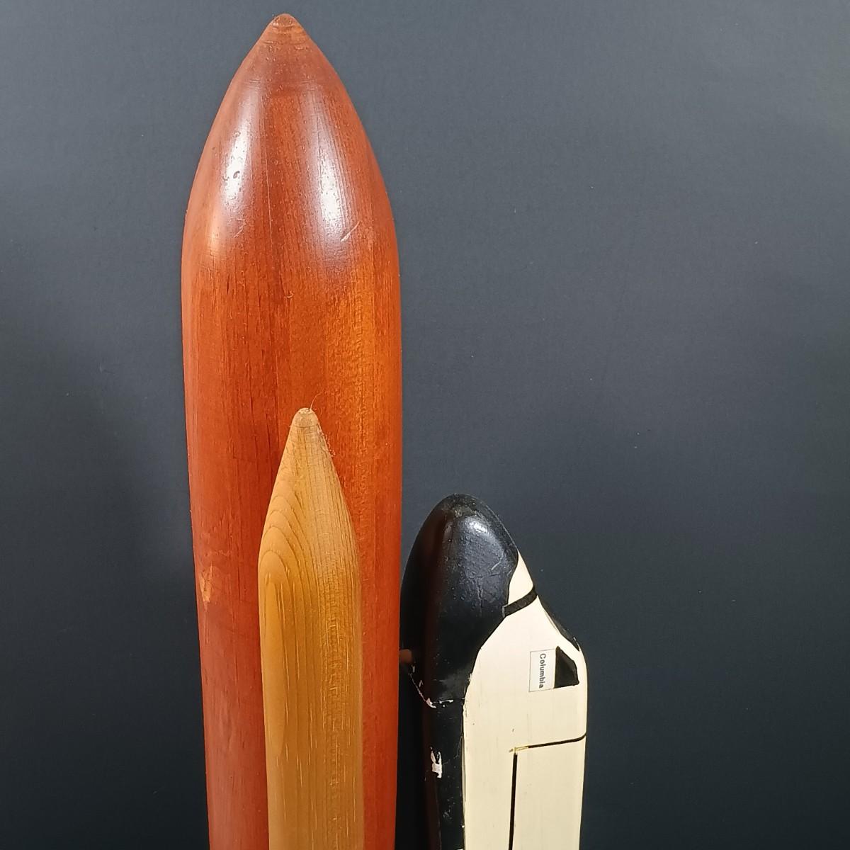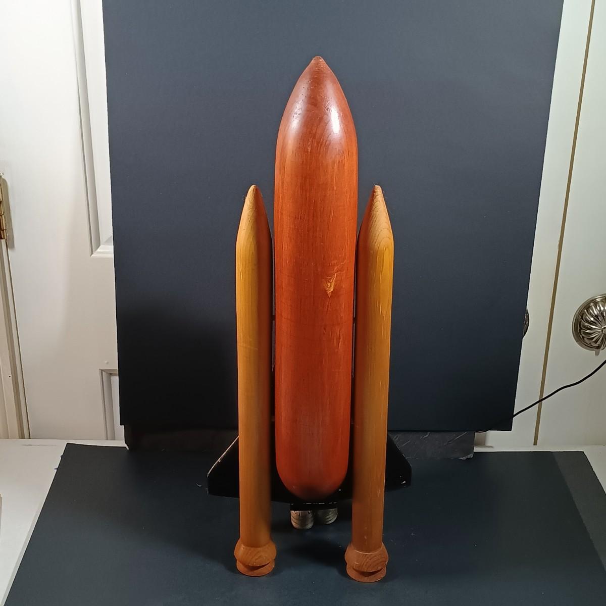 LOT 9L: Handmade 24" Wooden Space Shuttle w/ Framed Photo of the 1981 Columbia Launch