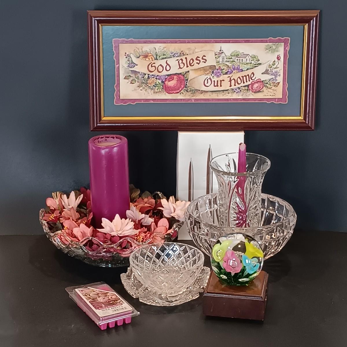 LOT 20L: Vintage Joe St. Clair Paperweight, Lenox Crystal Diamond Bowl, Imperial Glass Open-Lace Bowl & More