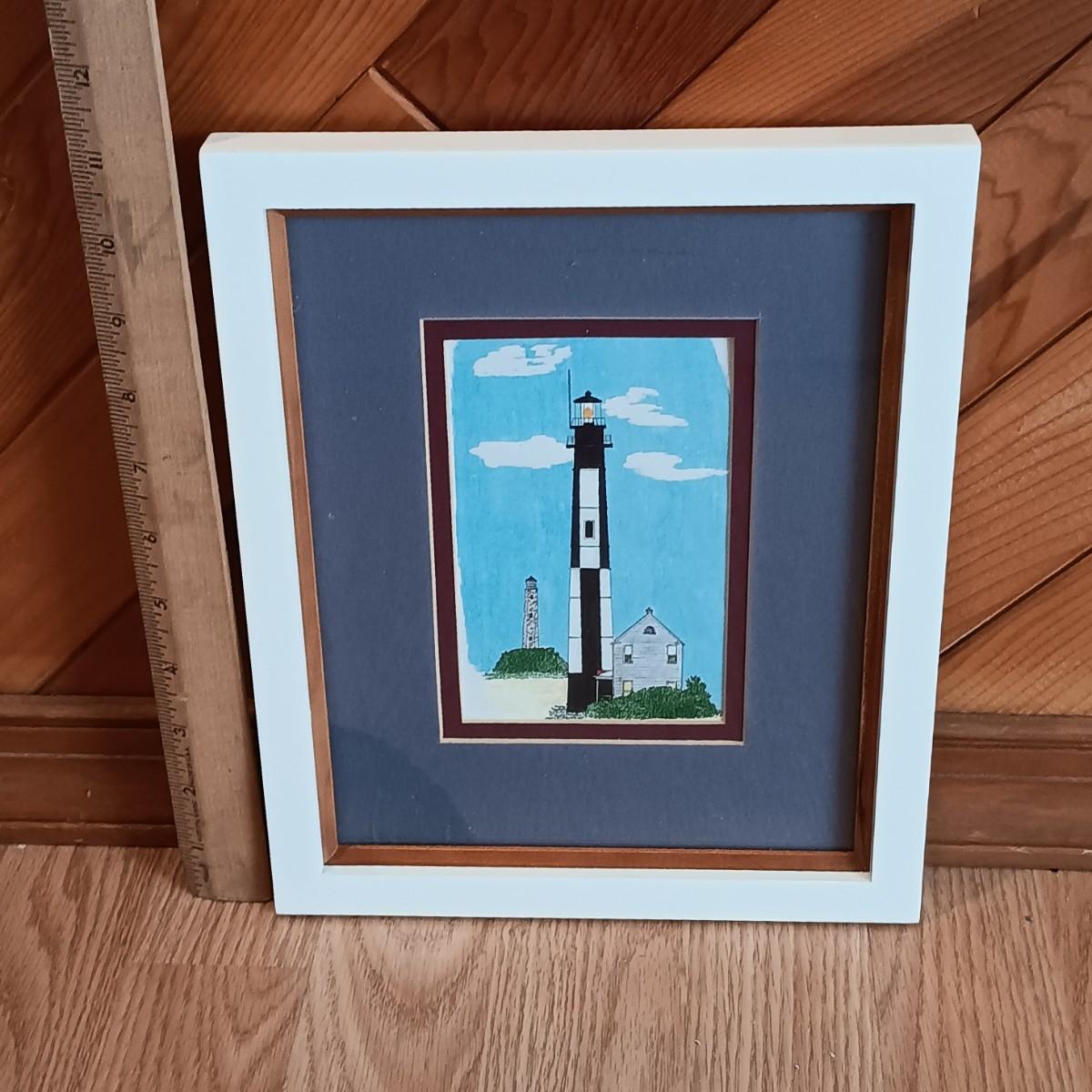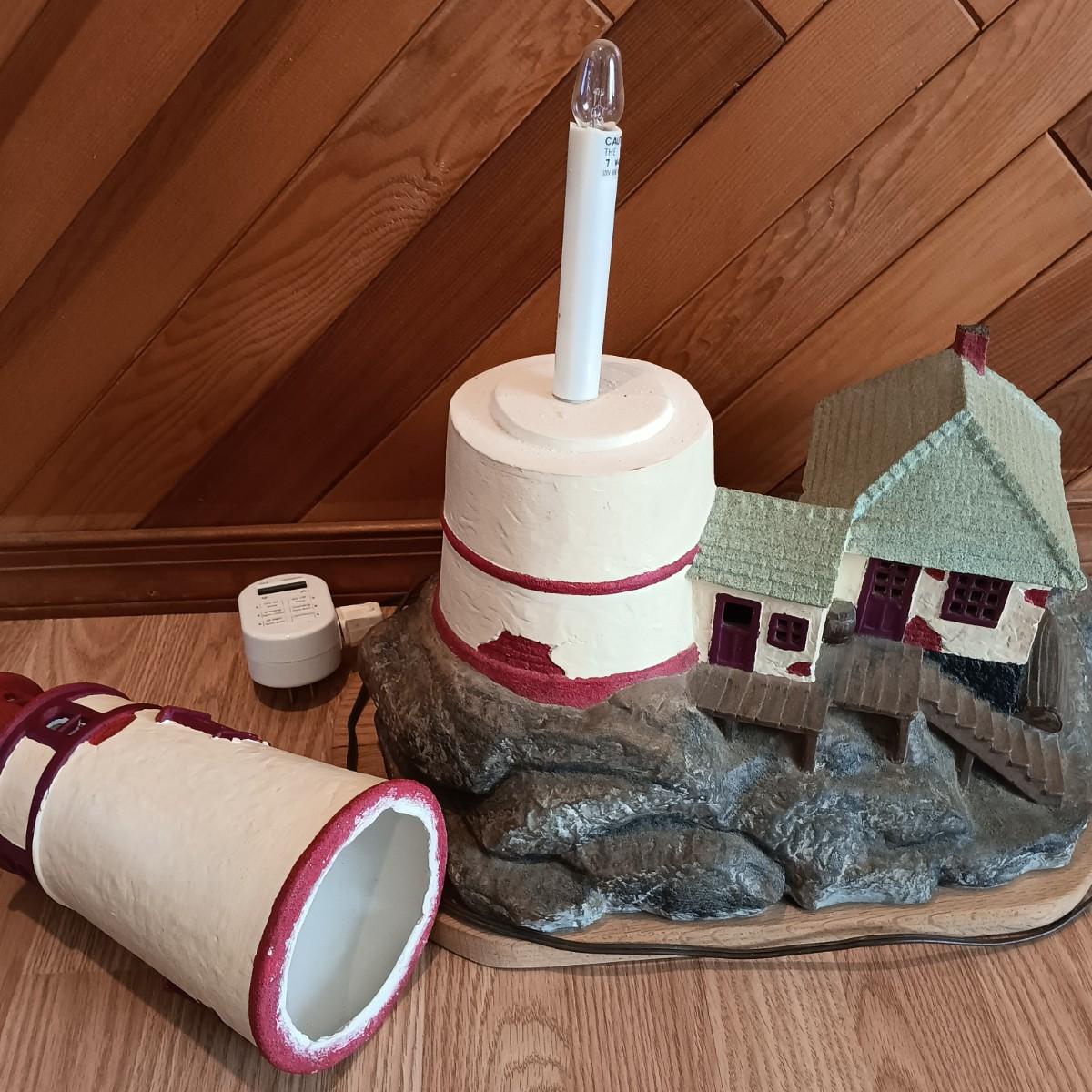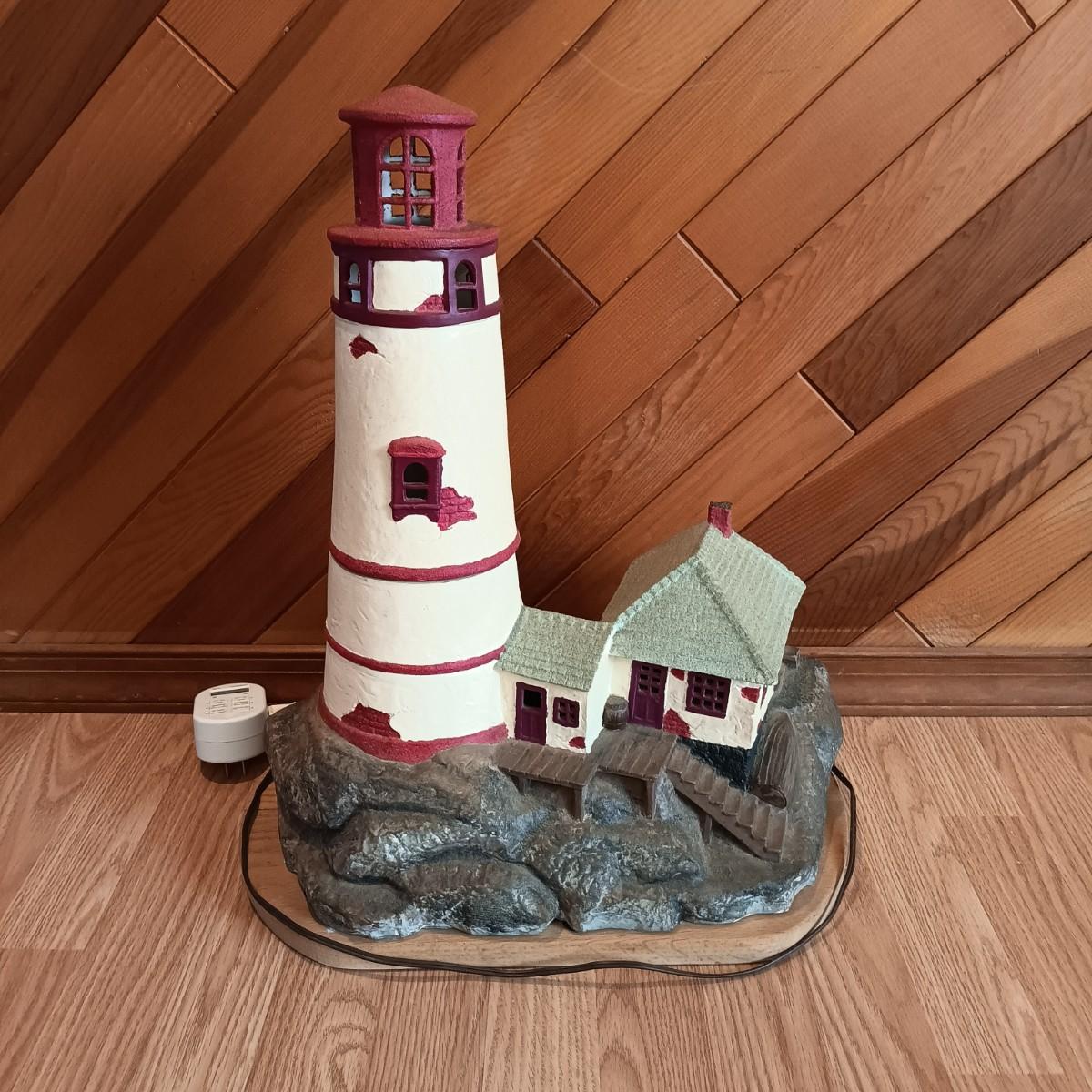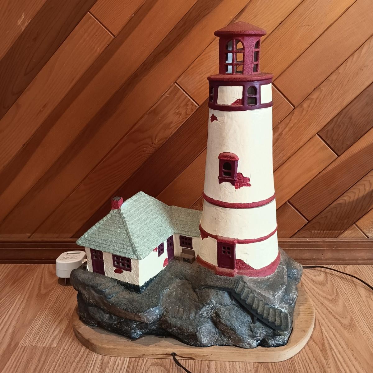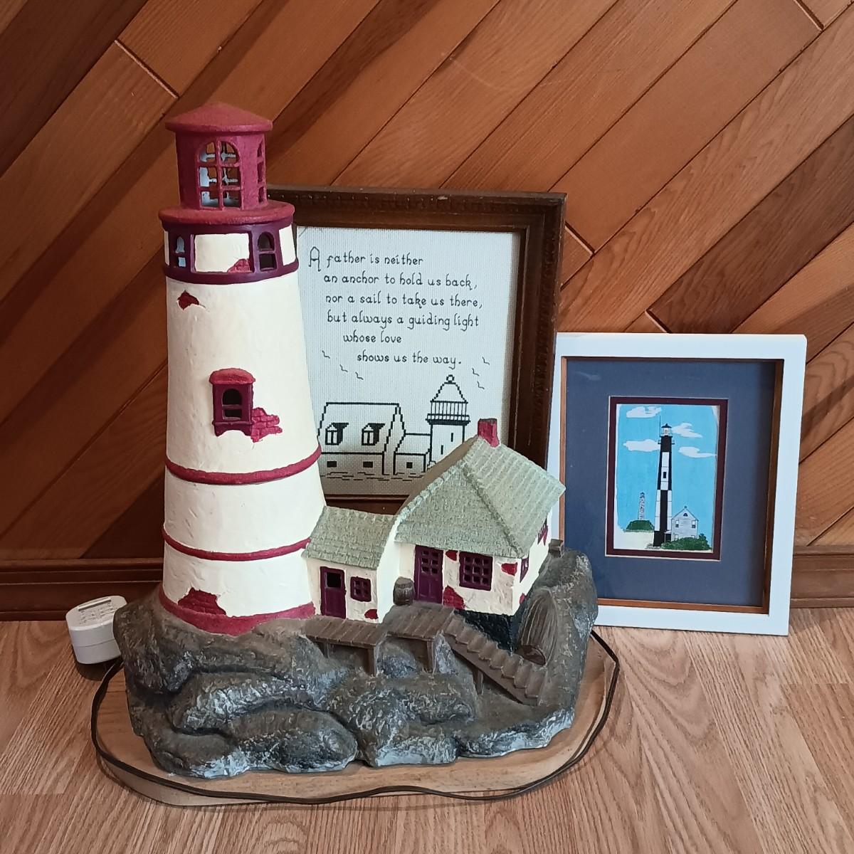 LOT 22L: 20" Painted Ceramic Light-Up Lighthouse w/ Framed Art