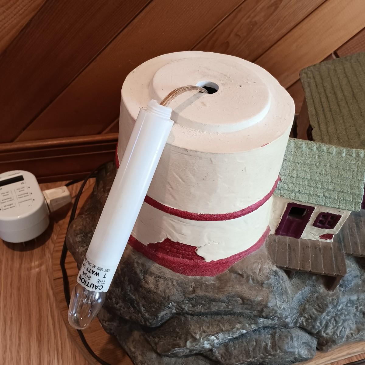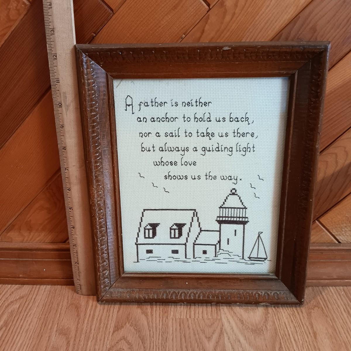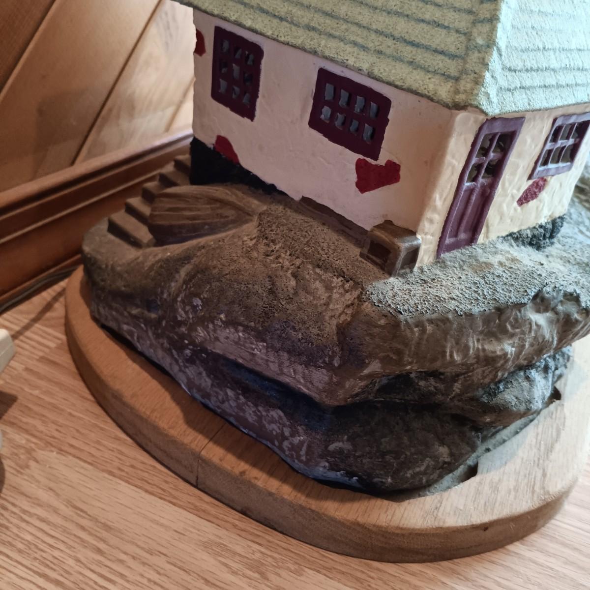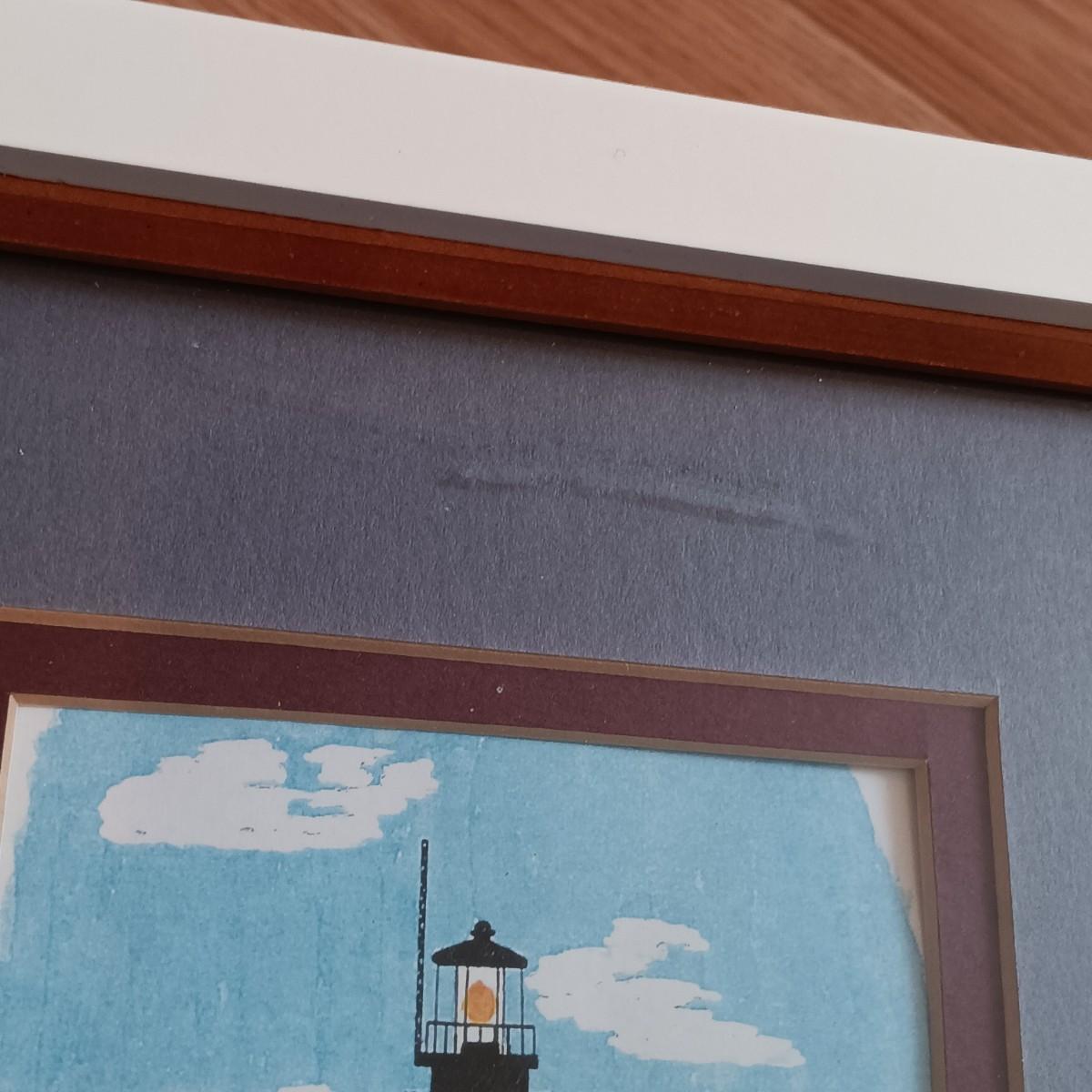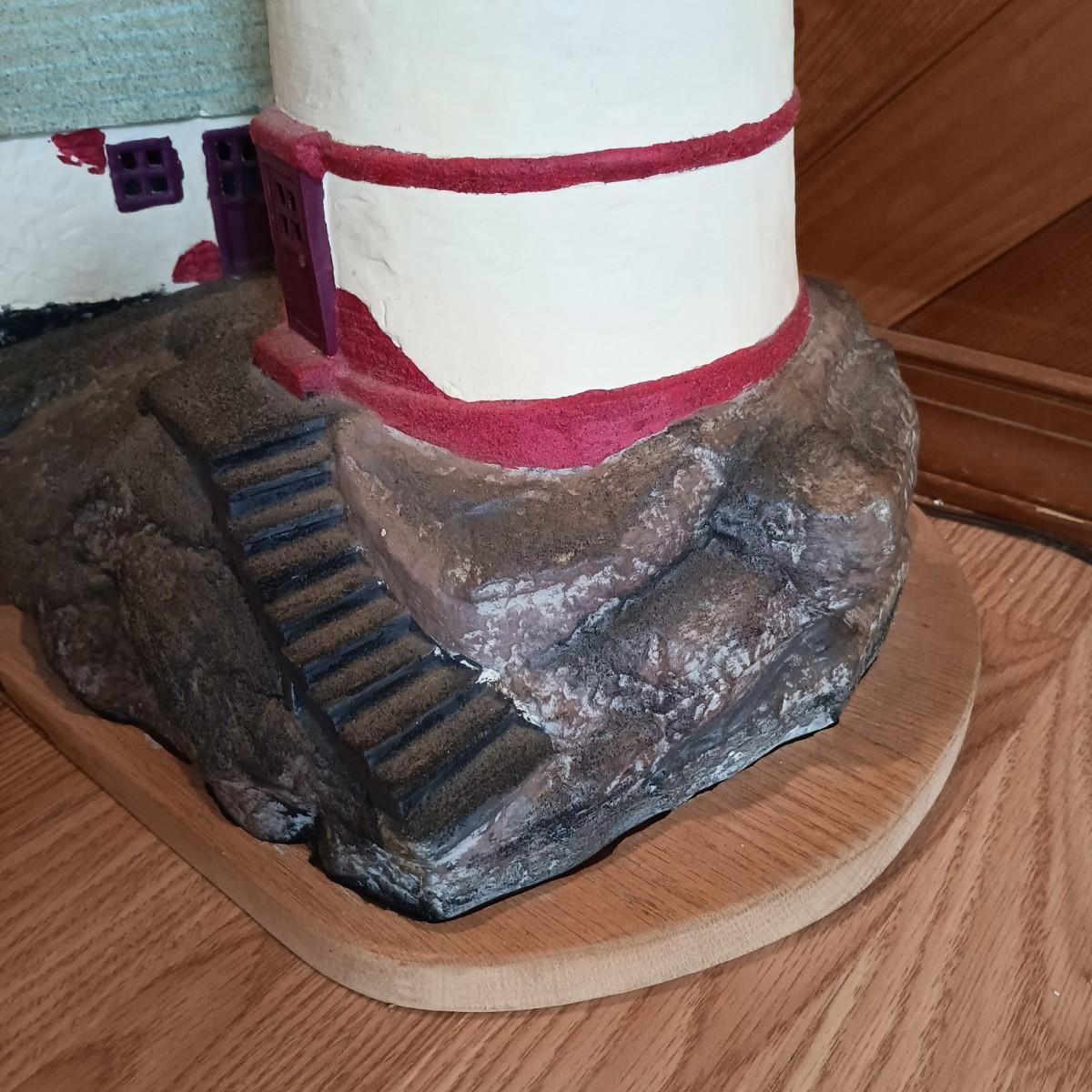 LOT 22L: 20" Painted Ceramic Light-Up Lighthouse w/ Framed Art