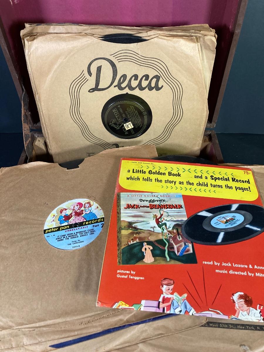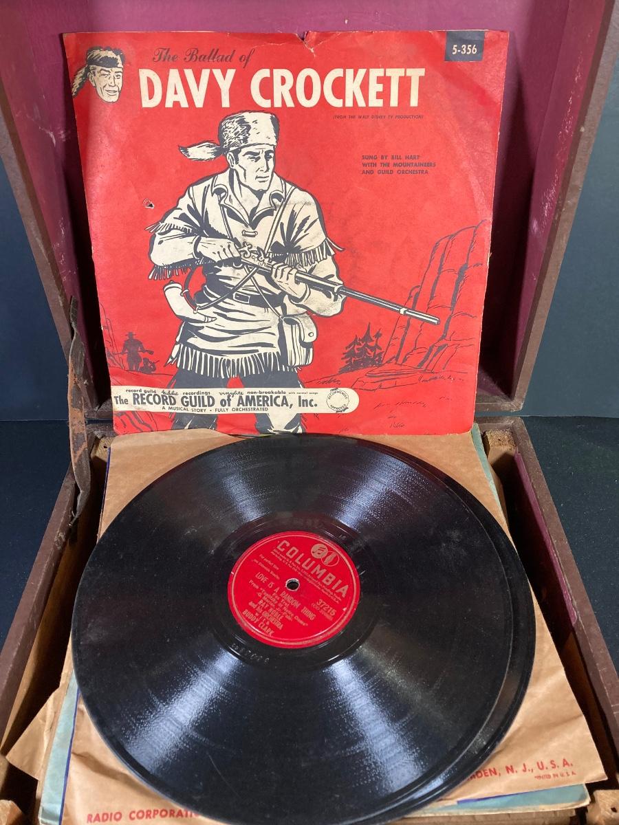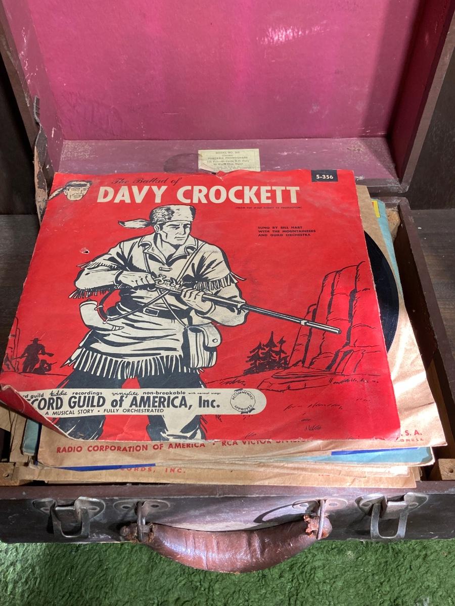 LOT 68U: Vintage Storage Box with Records - The Ballad of Davy Crockett, Christmas Carols and More