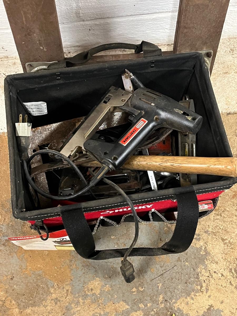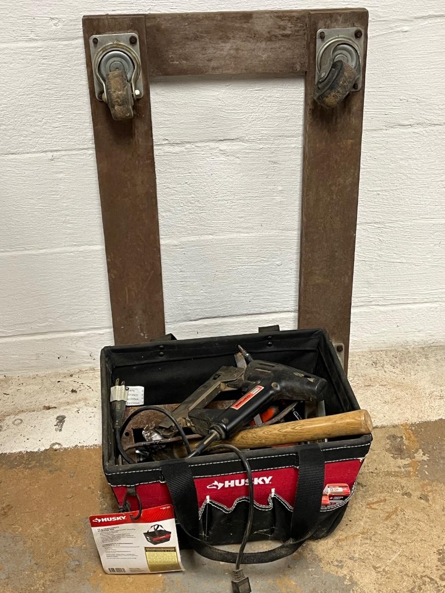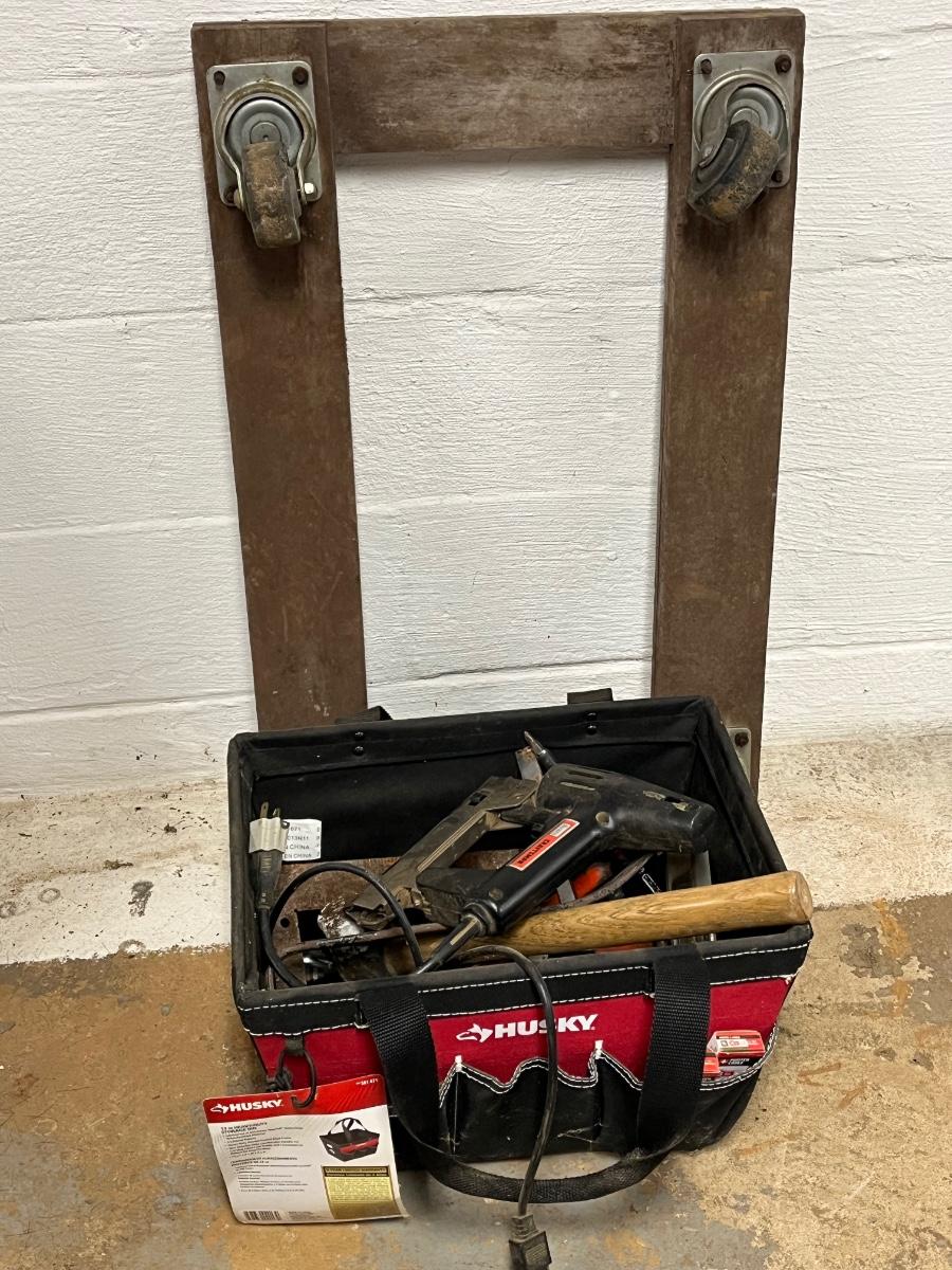 LOT 84B: Dolly, Electric Nail Gun, Hand Tools