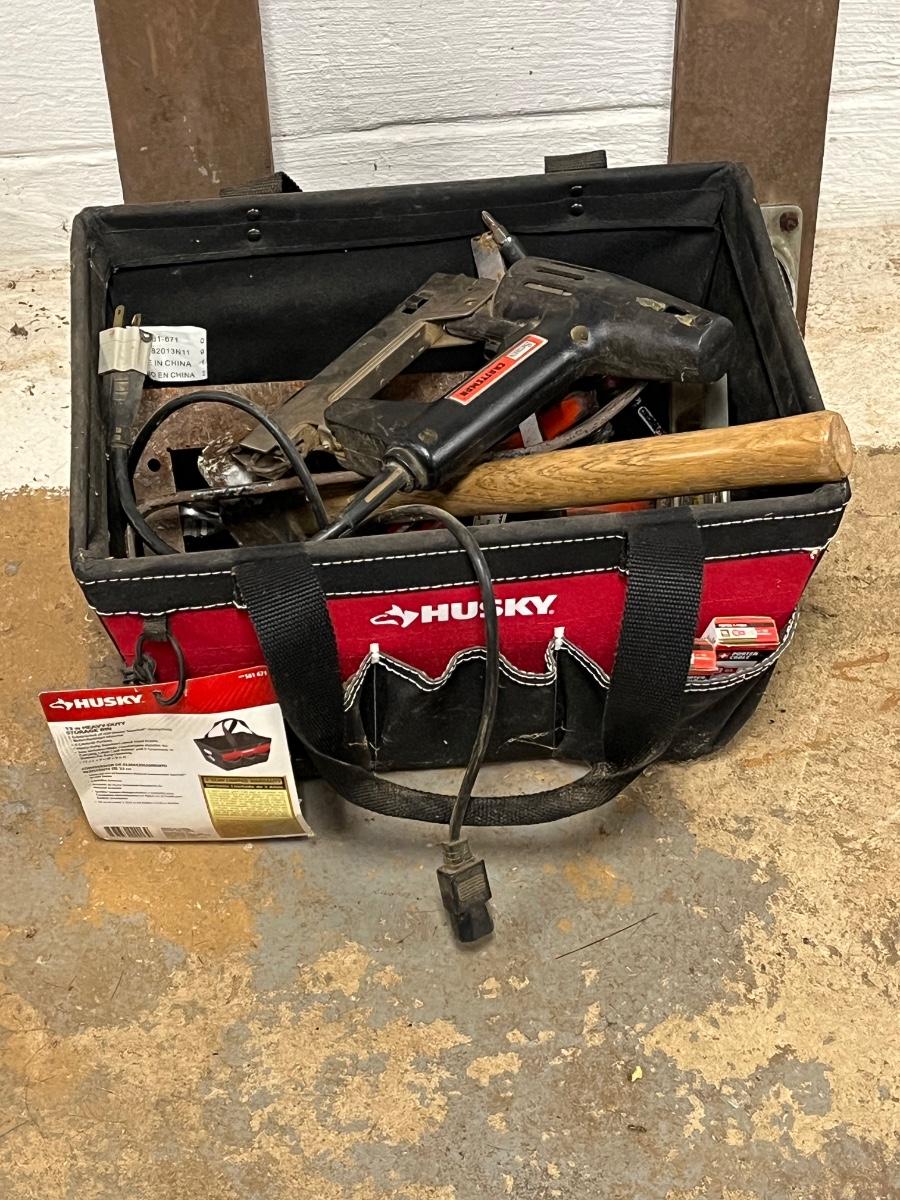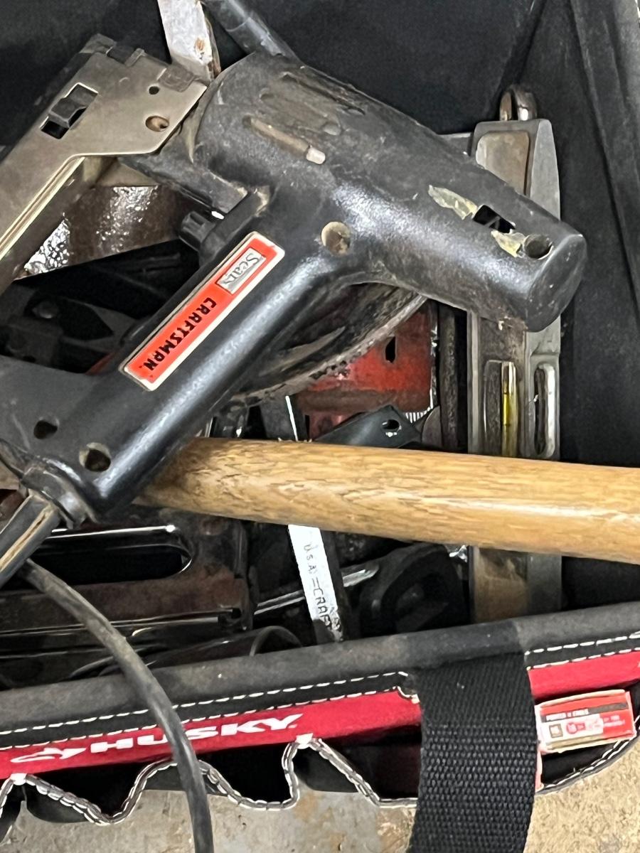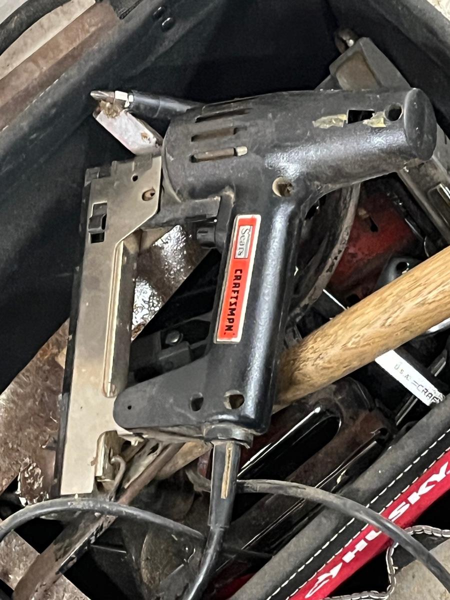 LOT 84B: Dolly, Electric Nail Gun, Hand Tools