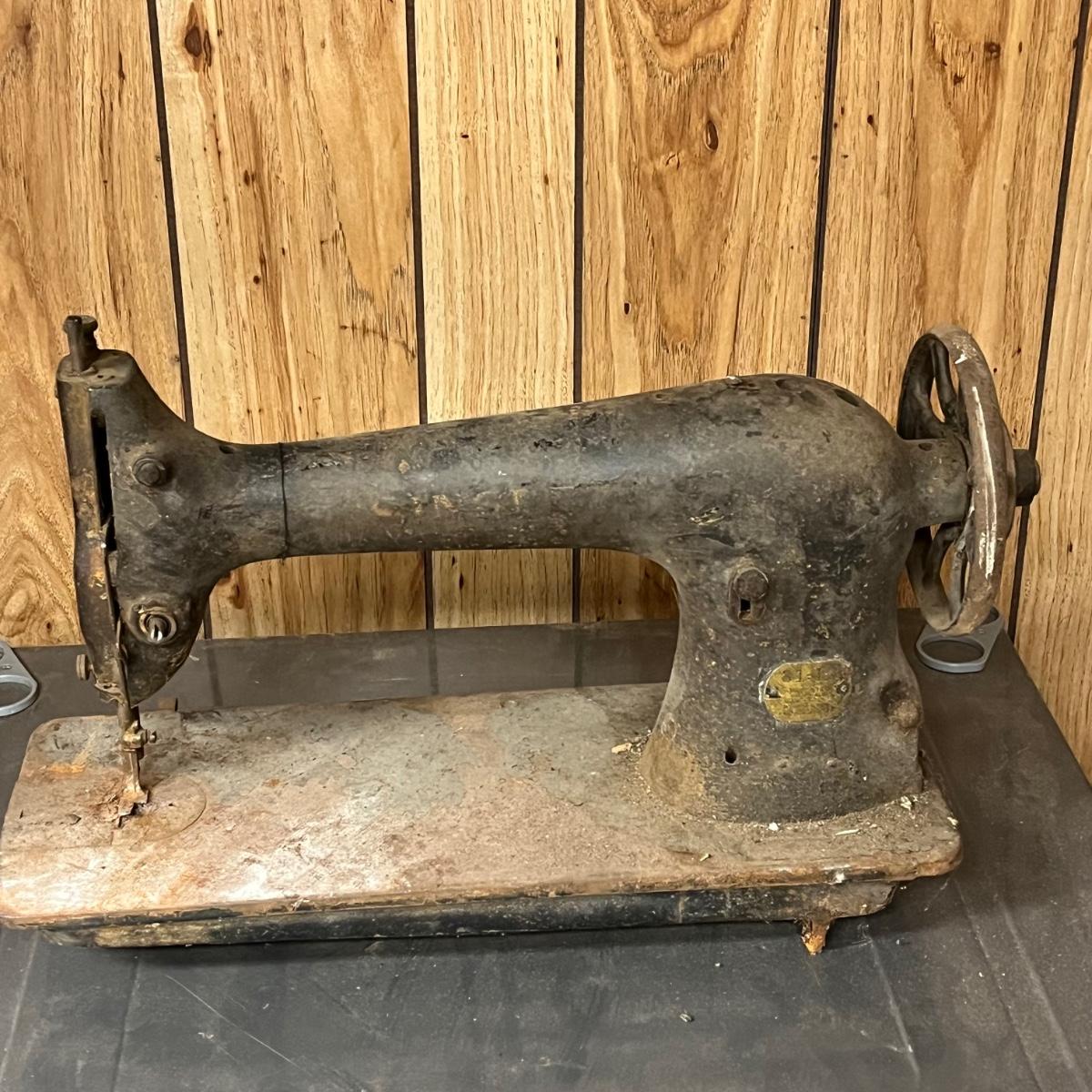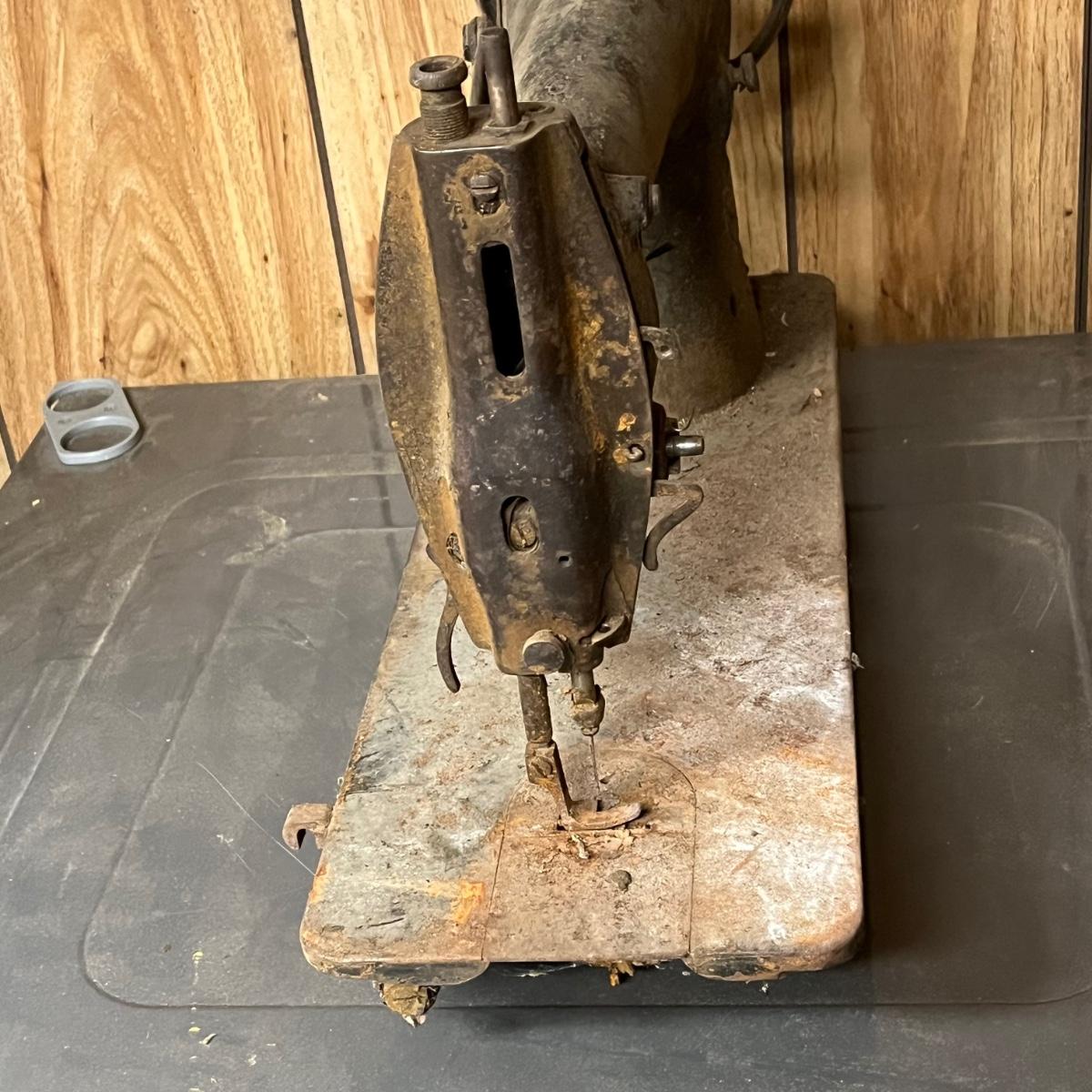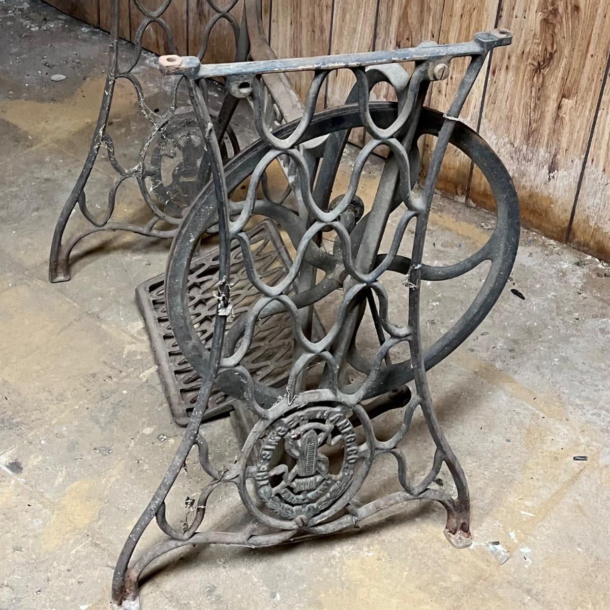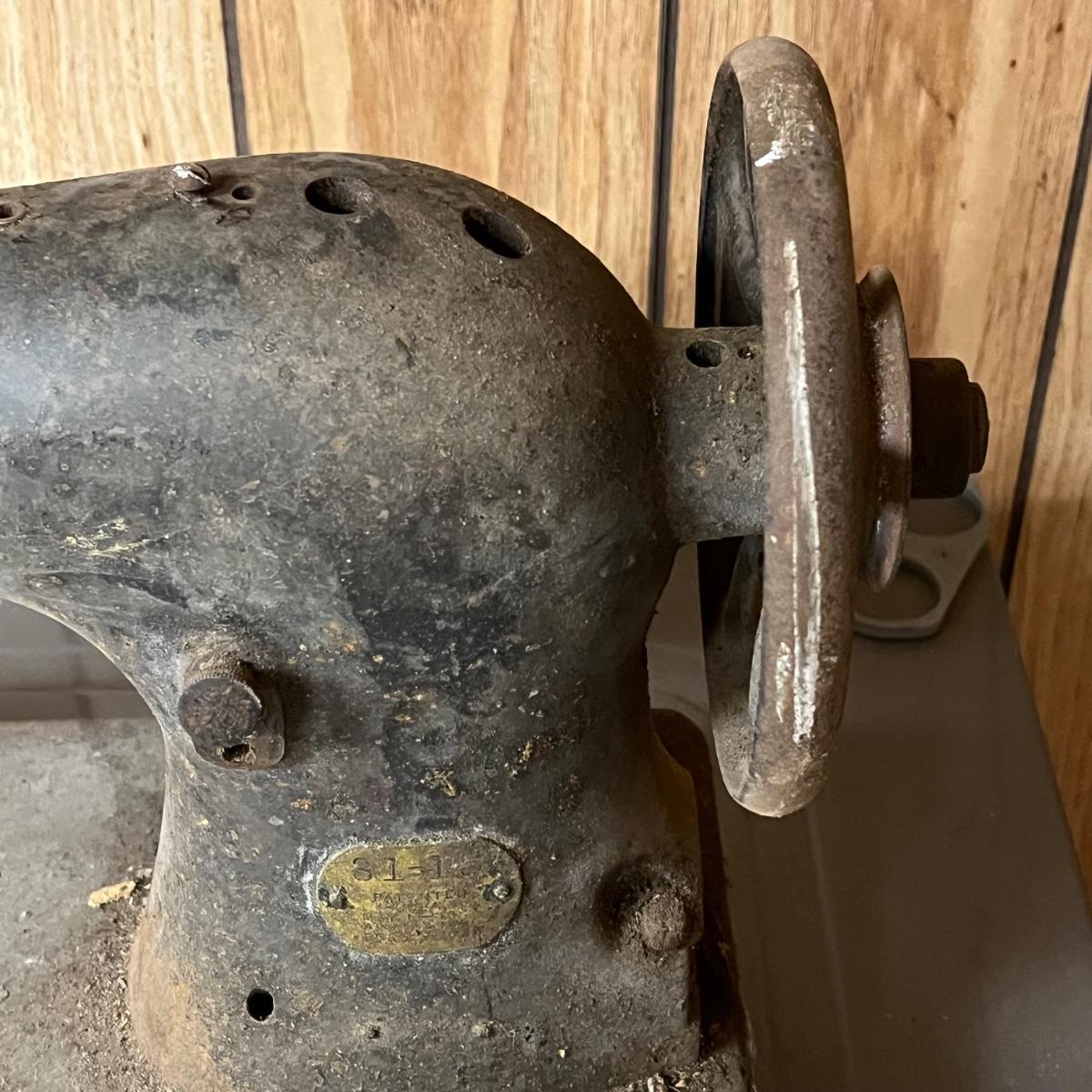 LOT 91B: Antique Industrial Singer Sewing Machine 31-15 + Sewing Table Base